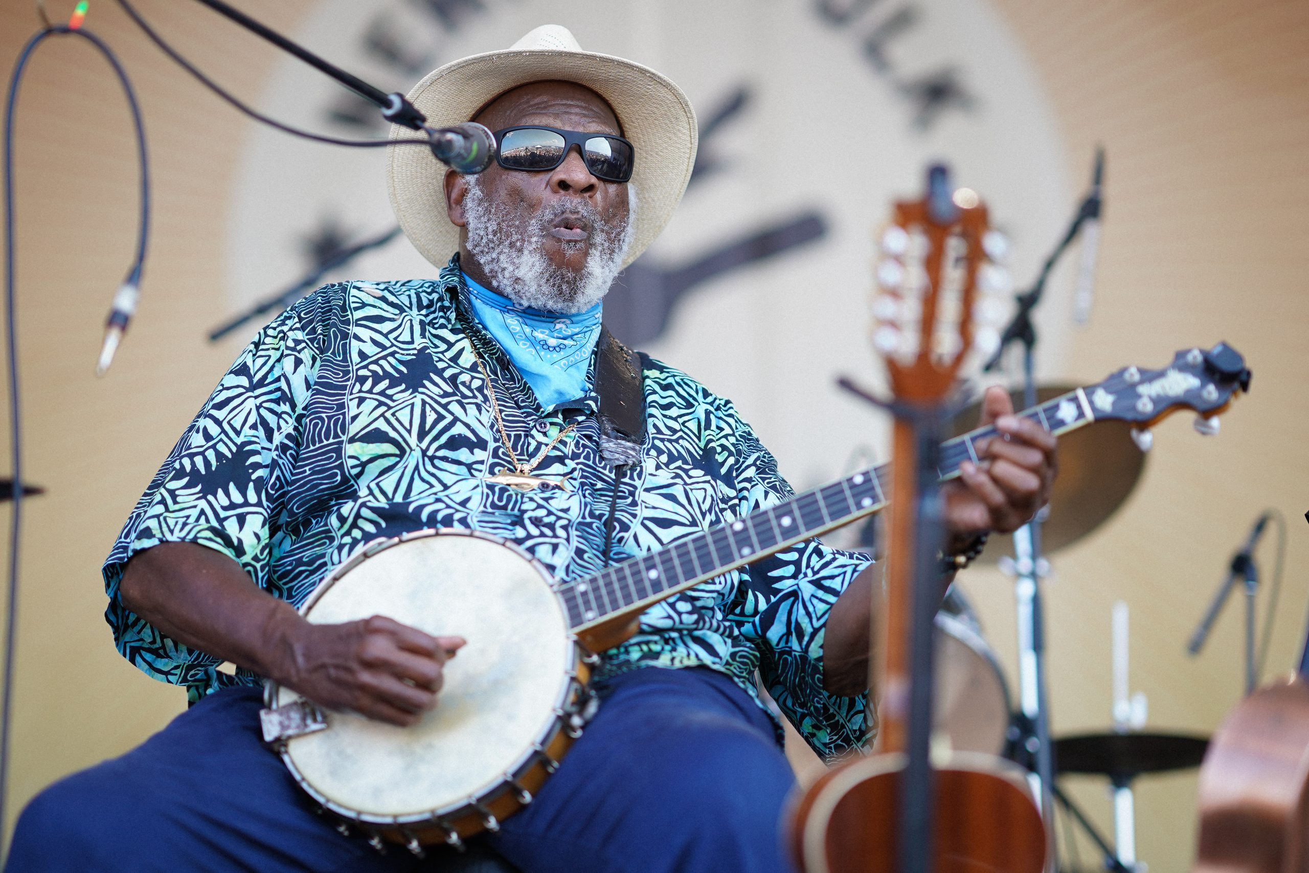 By the time Taj Mahal and his band made themselves comfortable and took in the view of the Claiborne Pell/Newport Bridge late in the afternoon Friday, the crowd extended all the way to the lookout point, where people lined the rocks enjoying beverages with their feet dangling over the water — as picturesque a setting as one might find at an American music festival.