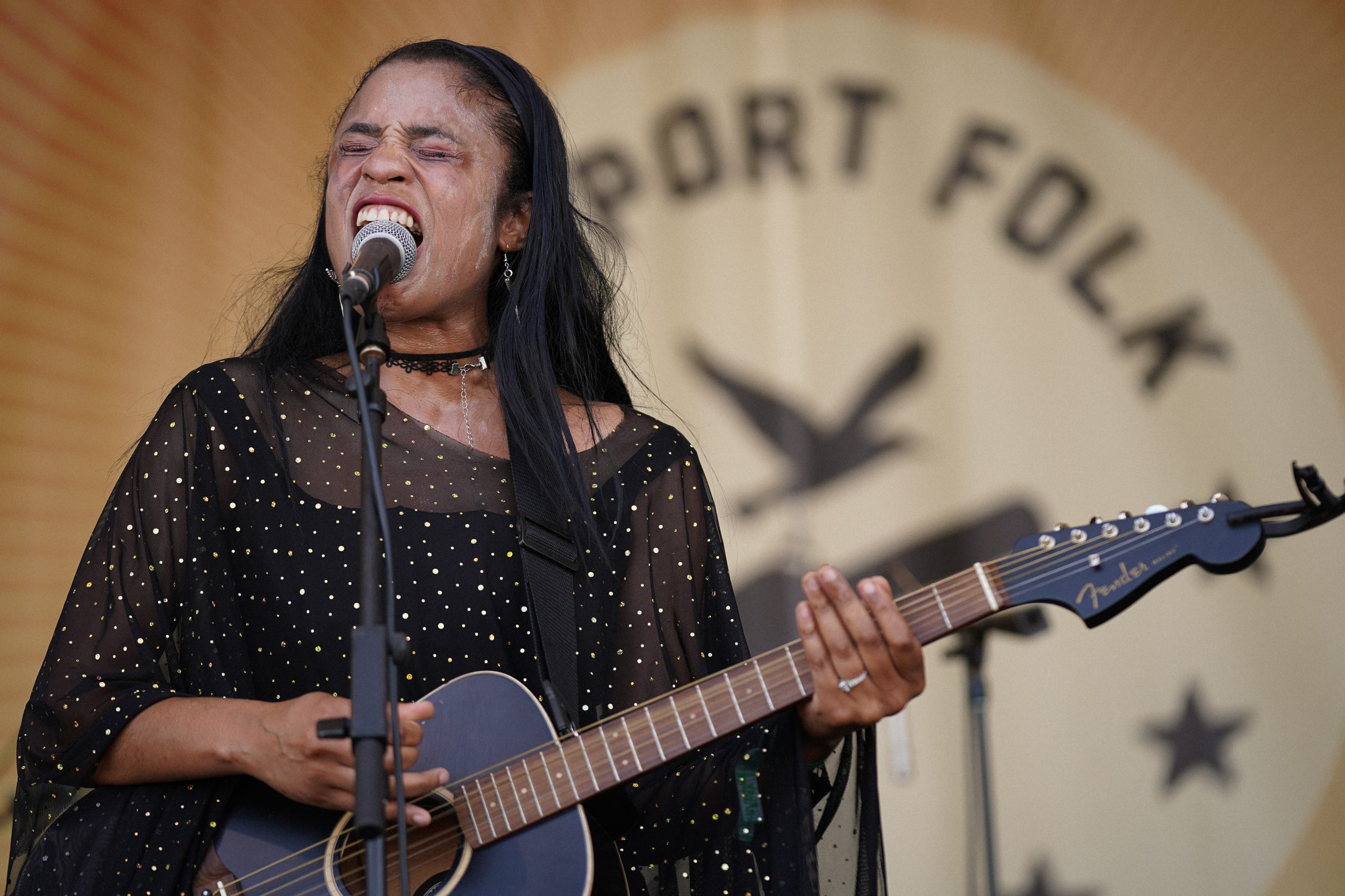 Sailboats and yachts were already glimmering in the hot sun, afloat in the waters of Newport Harbor and further to the west in Narragansett Bay as fans lined up to make their way into the grounds Friday morning. A tall posterboard, in the same painted script seen on all the event signage over the years, reminded guests: “We’re still stronger when we sing together,” a pandemic-era twist on the slogan that has for decades spiritualized the event as a mecca for fans of the expanding folk genre.