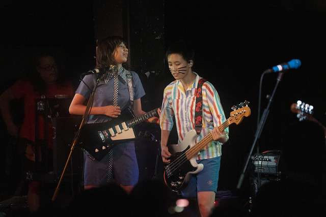 For their second song, The Linda Lindas stepped back to “Missing You” from that self-titled EP, and Eloise sang lead. Befitting her whiskers makeup, Eloise roared and growled through the spitfire song. They stuck with the EP for “Monica” next, and Bela sang the lead, explaining the song is about one of her cats. It’s a fun song, easy to pogo along to, and Bela is probably the best singer of the group.