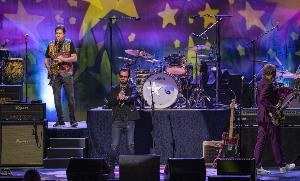 “This next song has special meaning, because it’s the only song written by John, Paul, and Ringo, though I told them, ‘I gotta tell you it looked better Ringo, Paul, John’,” Ringo said to laughs from the audience, as the band started up the Beatles tune, “What Goes On.”