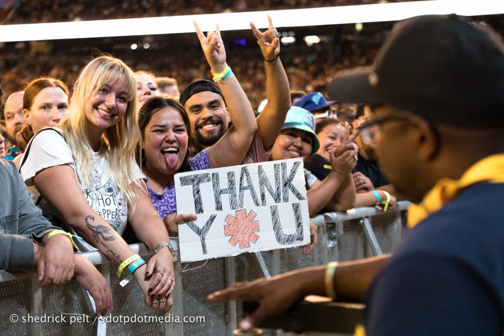 Bassist and original band member Flea opens the show with his limitless energy, leaping from one end of the stage to the other. Drummer Chad Smith and Guitarist John Frusciante join him for Intro Jam. Long-time frontman Anthony Kiedis arrives, not far behind, to a roaring crowd. Can’t Stop, one of their most recognizable records led us into a magical night of nostalgia and the hopes of an endless summer.