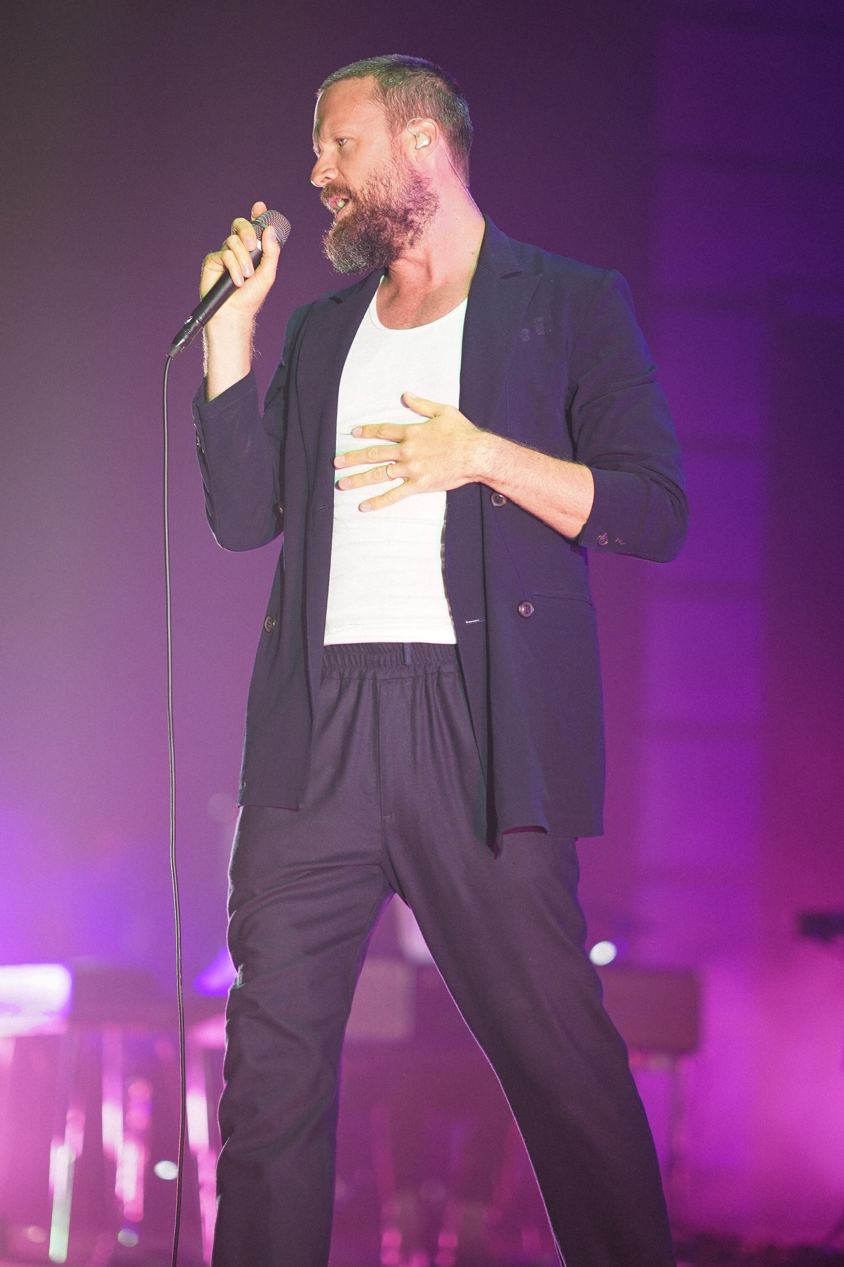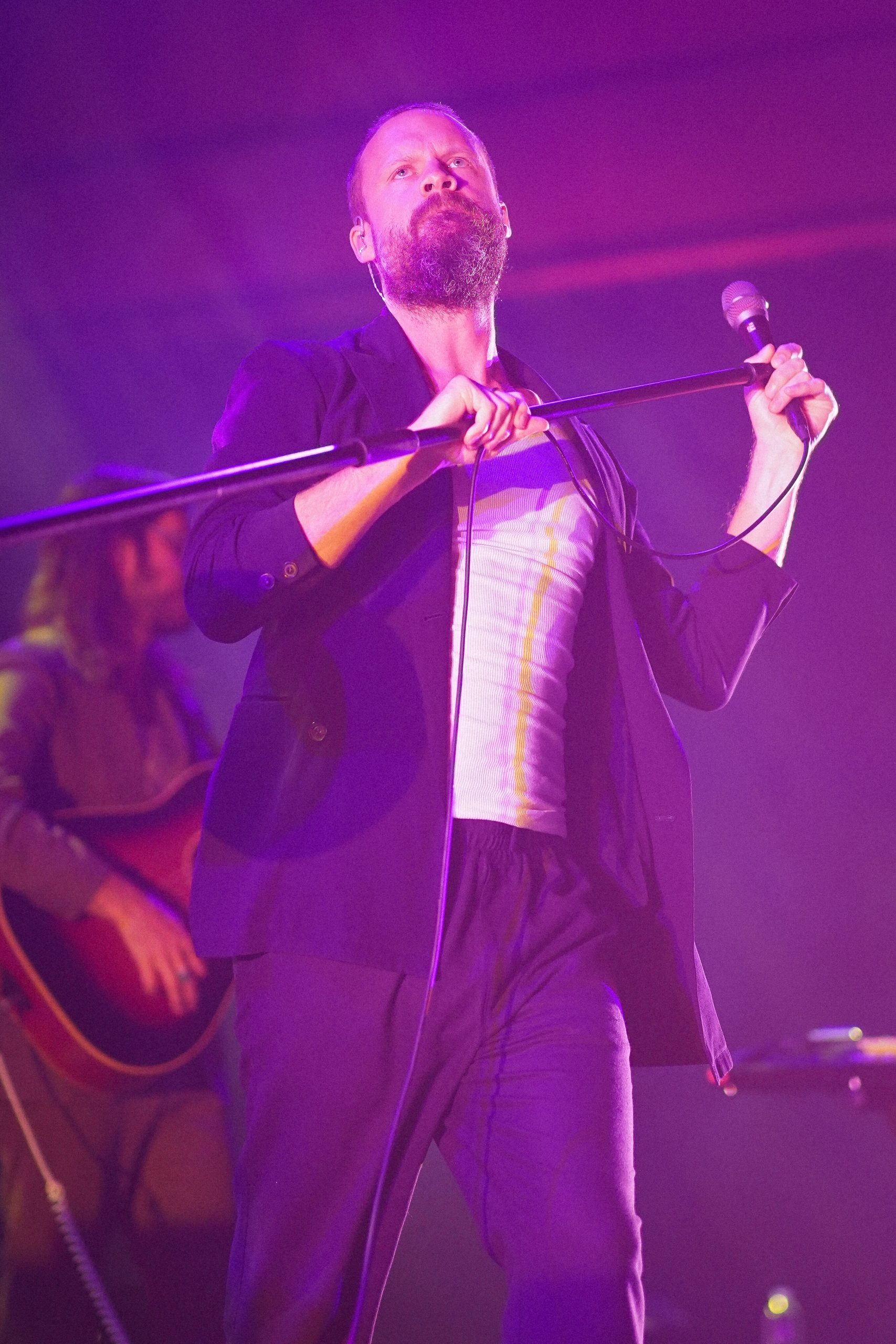 Long and lean, with a brush cut and a handsome beard, Tillman took to the microphone with his otherworldly confidence, not far from where he grew up in a fairly strict Christian home, where as a young boy he had aspirations to one day be a priest. He was in a dark suit coat, dark pants and loafers — comfy, but his presence was still large for the opener, “I Love You, Honeybear,” from the 2015 album of the same title.
