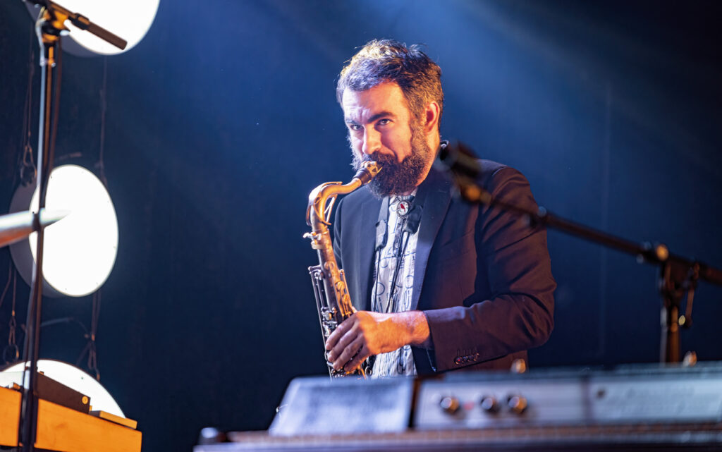 Kicking the set off in style, the band took the stage to the opening keyboard wash of “Paprika” as Michelle, mallet in one hand and mic in the other, danced and punctuated the song — banging the gong set up at the center of the stage. At times it felt like she was floating, being lifted up by some unseen force, visibly happy and feeding off the excitement in the room. And that energy continued onto the next song, the single, “Be Sweet,” as what seemed like everyone in the crowd sang along, dancing as much as they could dance in the jam-packed space.