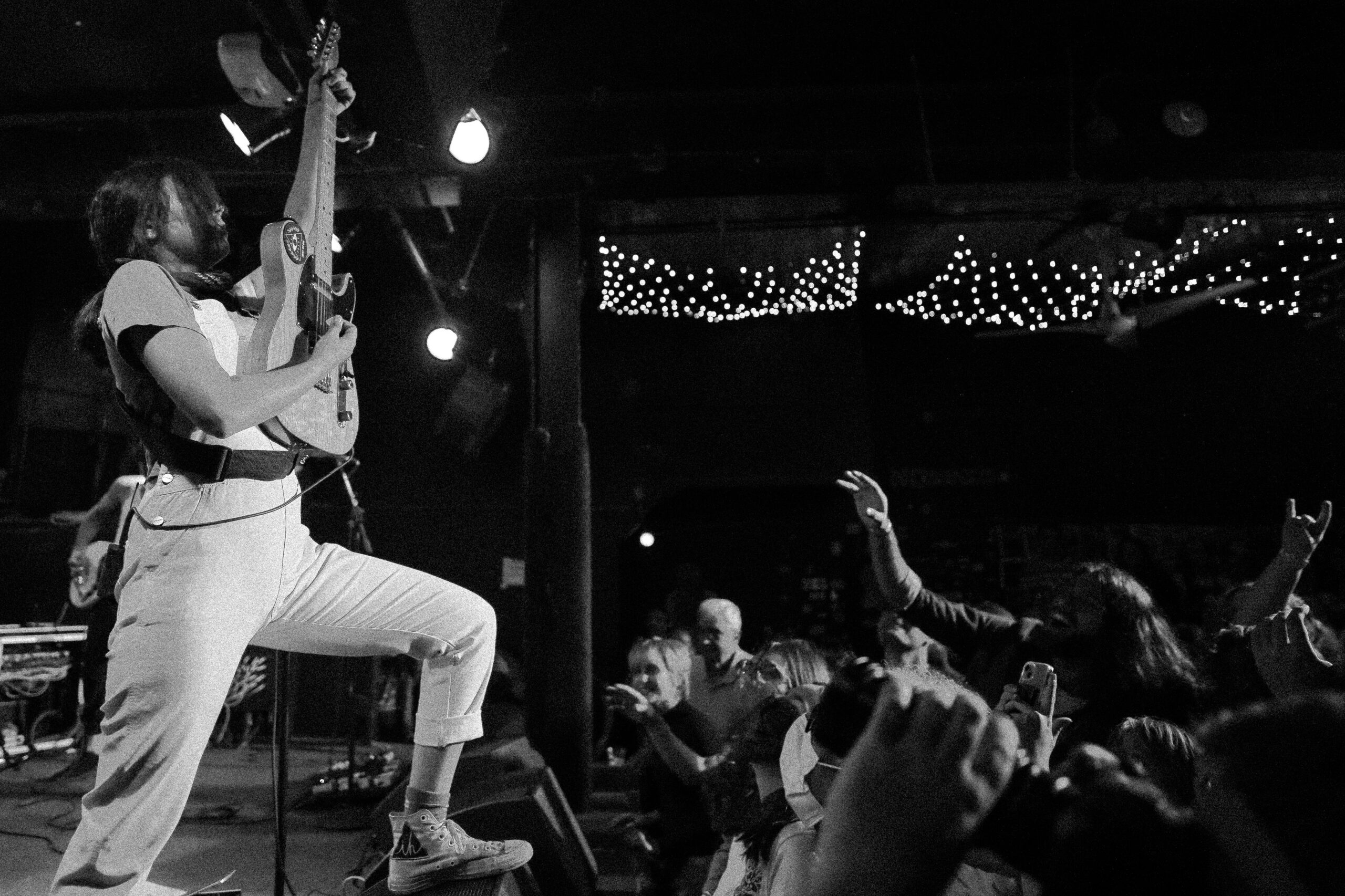 Snazzy in a pair of white overalls and expeditious in manner, the determined Tudzin wielded her Fender, screamed at the top of her lungs, and sang from the bottom of her heart in striving to create a meaningful connection with a dynamic Ottobar audience, many of whom had never seen her before in person.