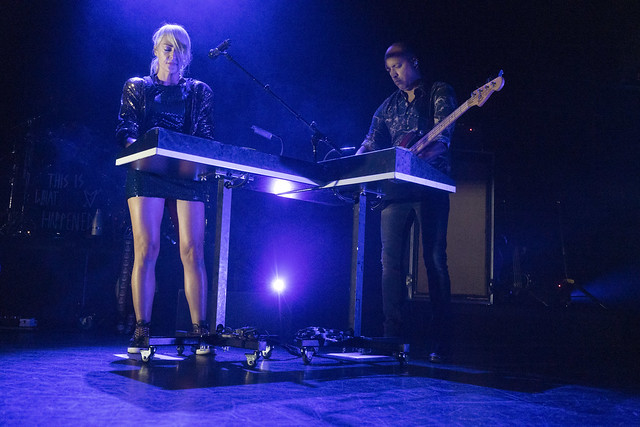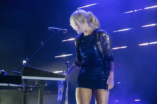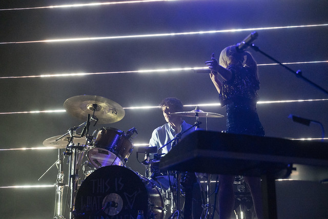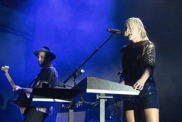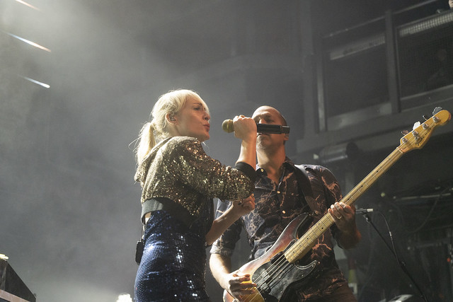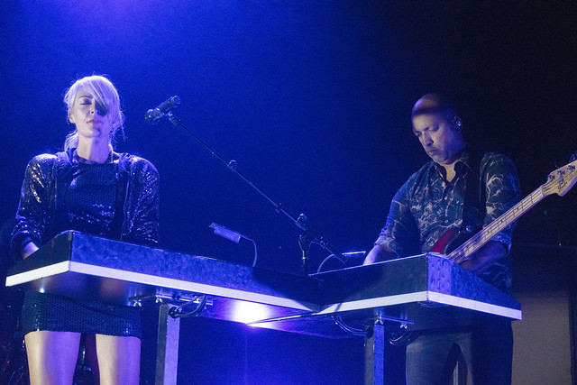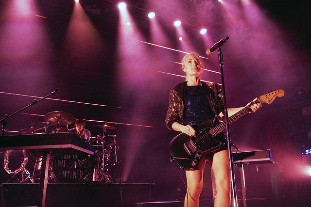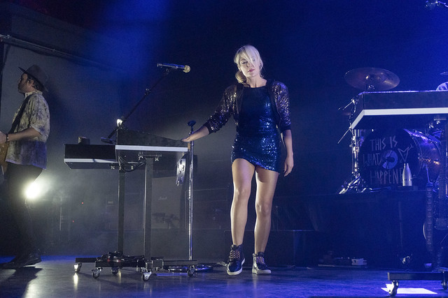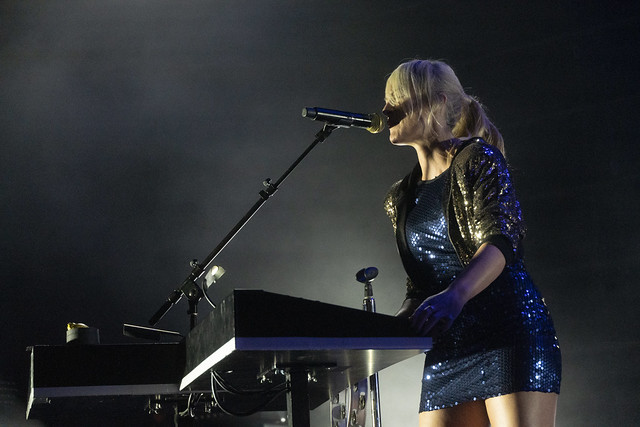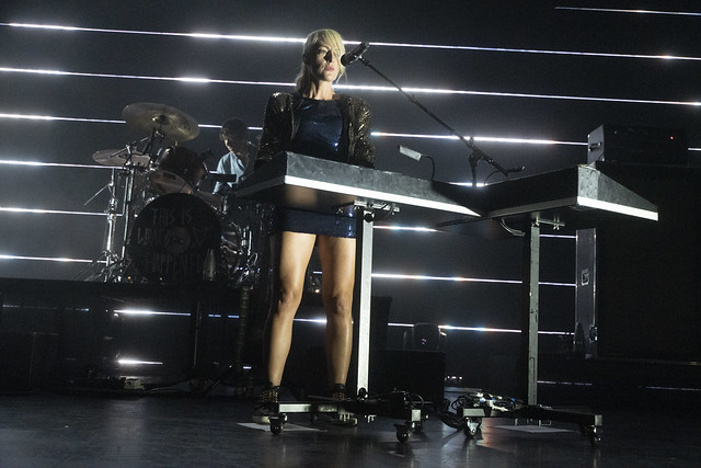 Metric started “All Come Crashing” with the three standing members of the band all at keyboard stations, and it was a slow burner that broke out into a slow groove when Metric made a trademark beat drop and shifted the song into high gear. Emily delivered the song with a punchy dance and her bandmates swayed in time.