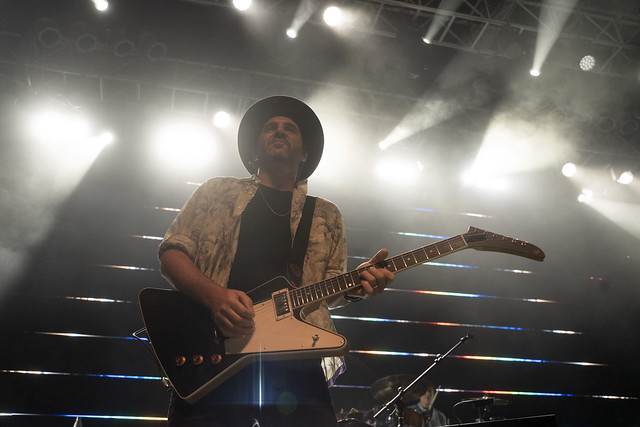This sort of instrument exchange occurred often throughout the show. Not only did Emily often switch up instruments, but guitarist Jimmy Shaw, Emily’s chief collaborator, also frequently took up a synth and bassist Joshua Winstead, who let his funky side suavely show this night, moved to keyboards when a song demanded it. Only the formidable Joules Scott-Key stayed in one fixed place at the drums.