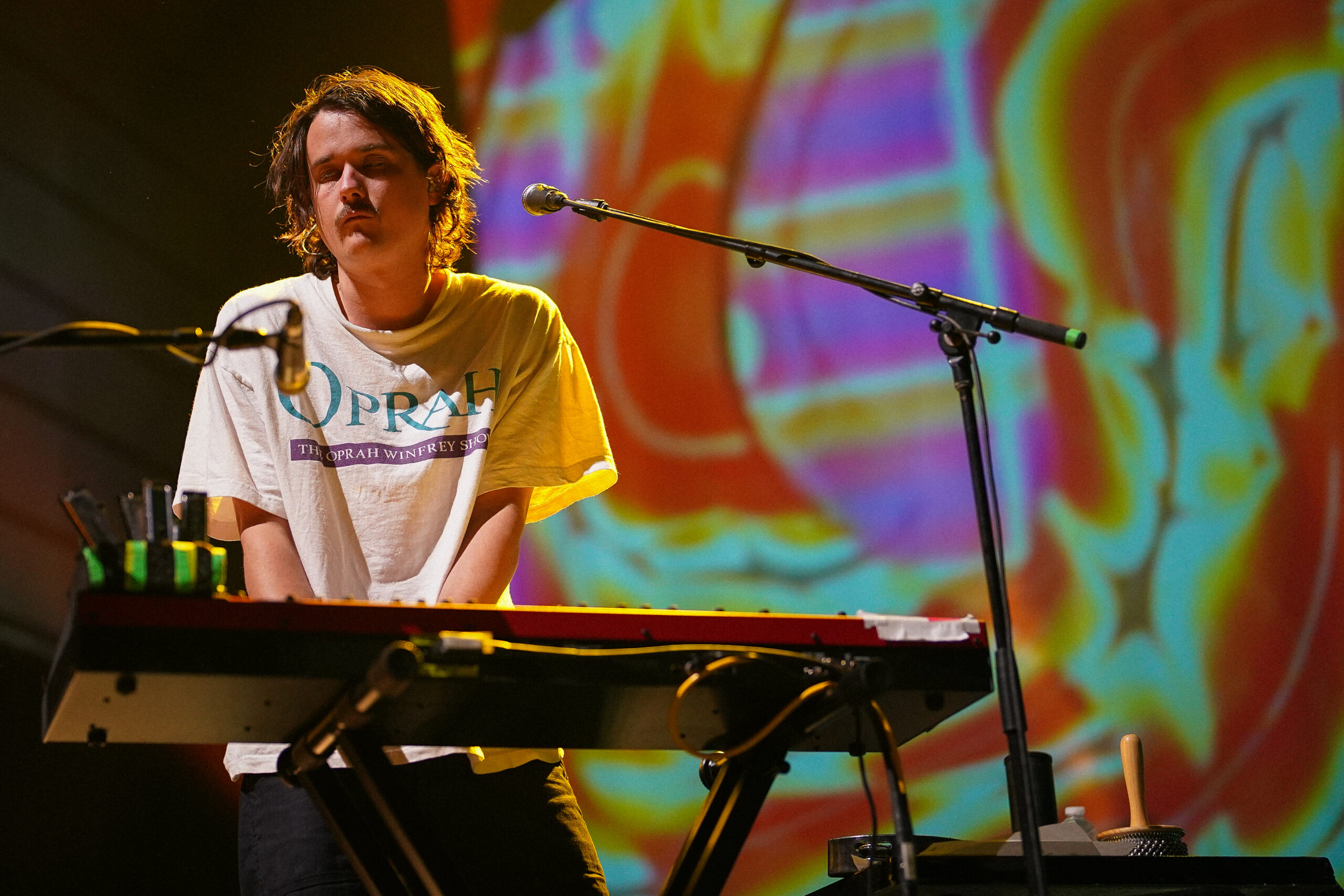 A night that by its design was different than every other show the band has put on and will put on, it was a hand-picked set by Mackenzie, who was electrifying with swinging kicks and erratic howls. Keyboardist and multi-instrumentalist Ambrose Kenny-Smith, wide-eyed and animated as perhaps the most recognizable voice in the pack, was devious in his role for tracks like “Blame It On The Weather,” another October release, and, later, moving to the front of the stage to command the whole room during “Straws In the Wind.”