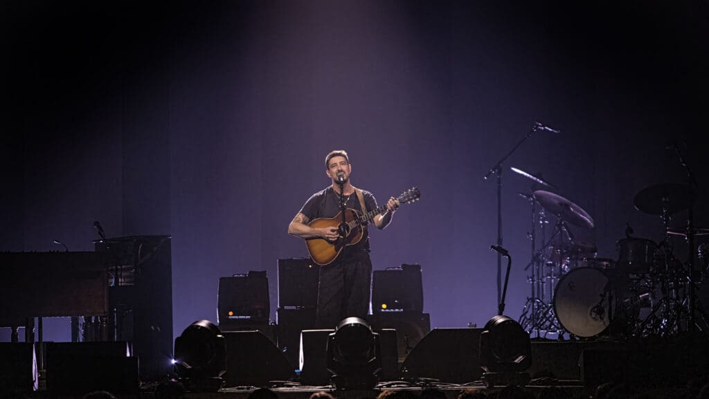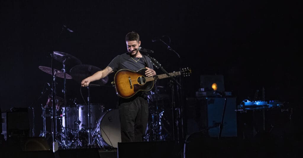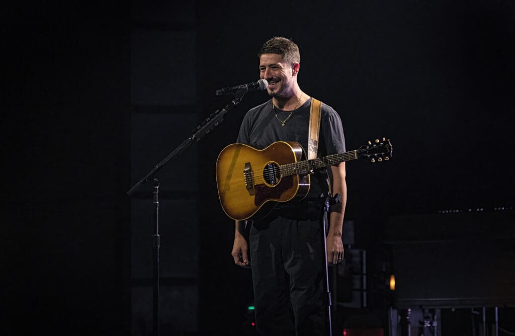 When Marcus came back to the stage for the encore, he said he was going to try something different. Without using the microphone or having his guitar plugged into the PA, he walked to the edge of the stage to sing “I Will Wait,” the Mumford & Sons hit, before calling on the crowd to sing along, as the sound filled up the enormous hall.