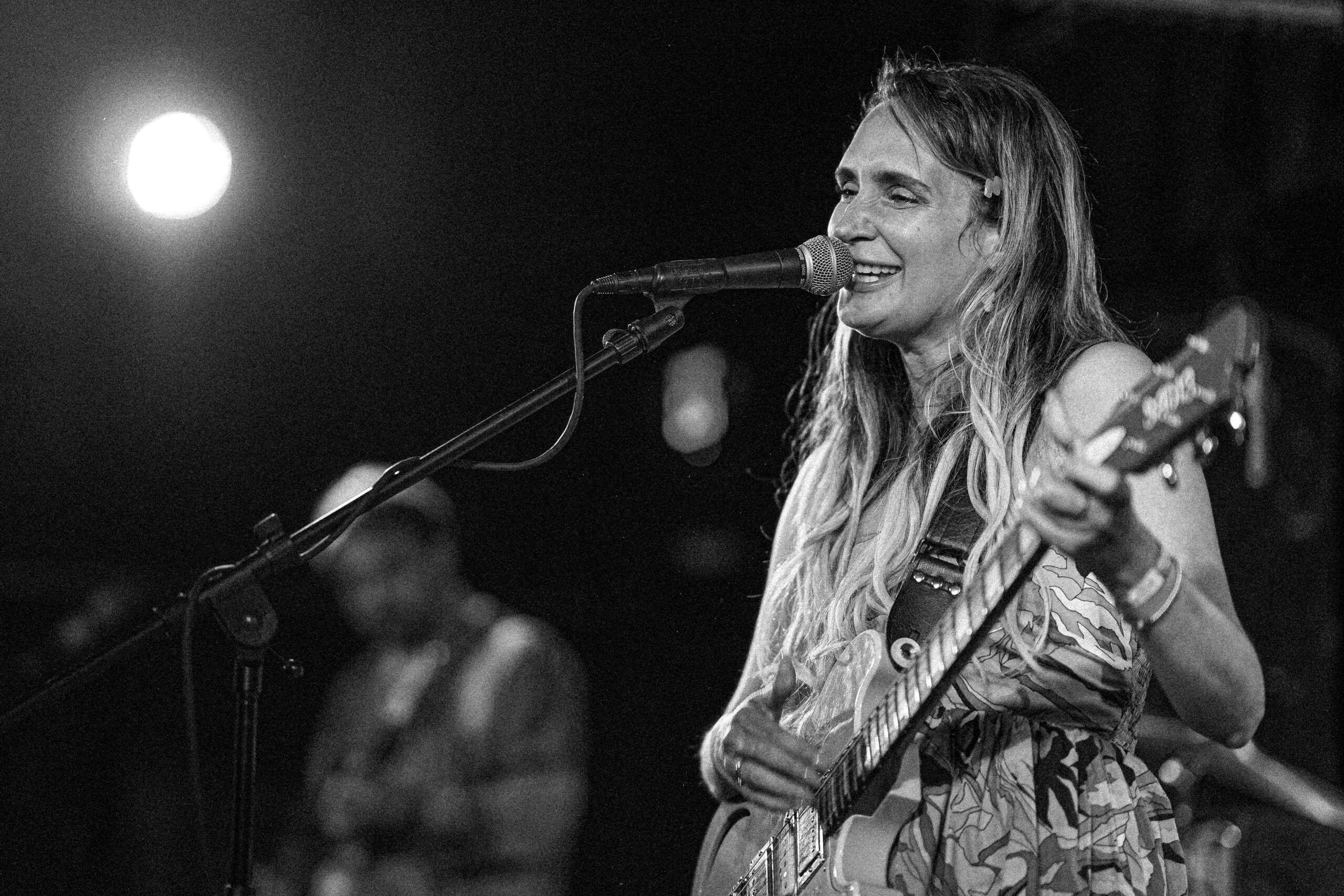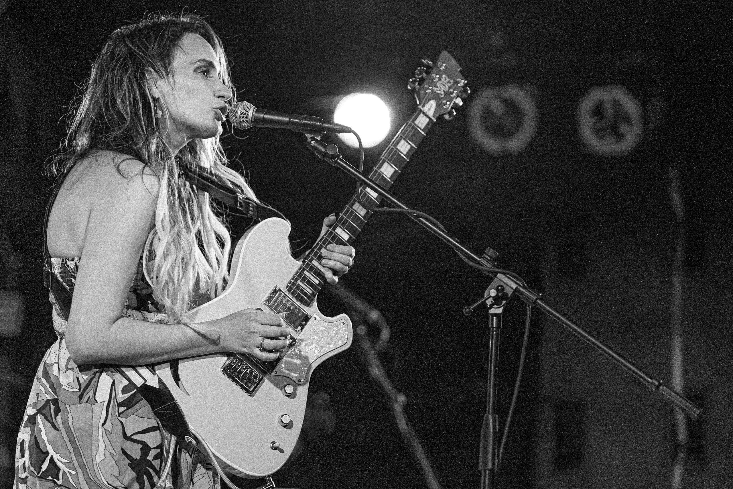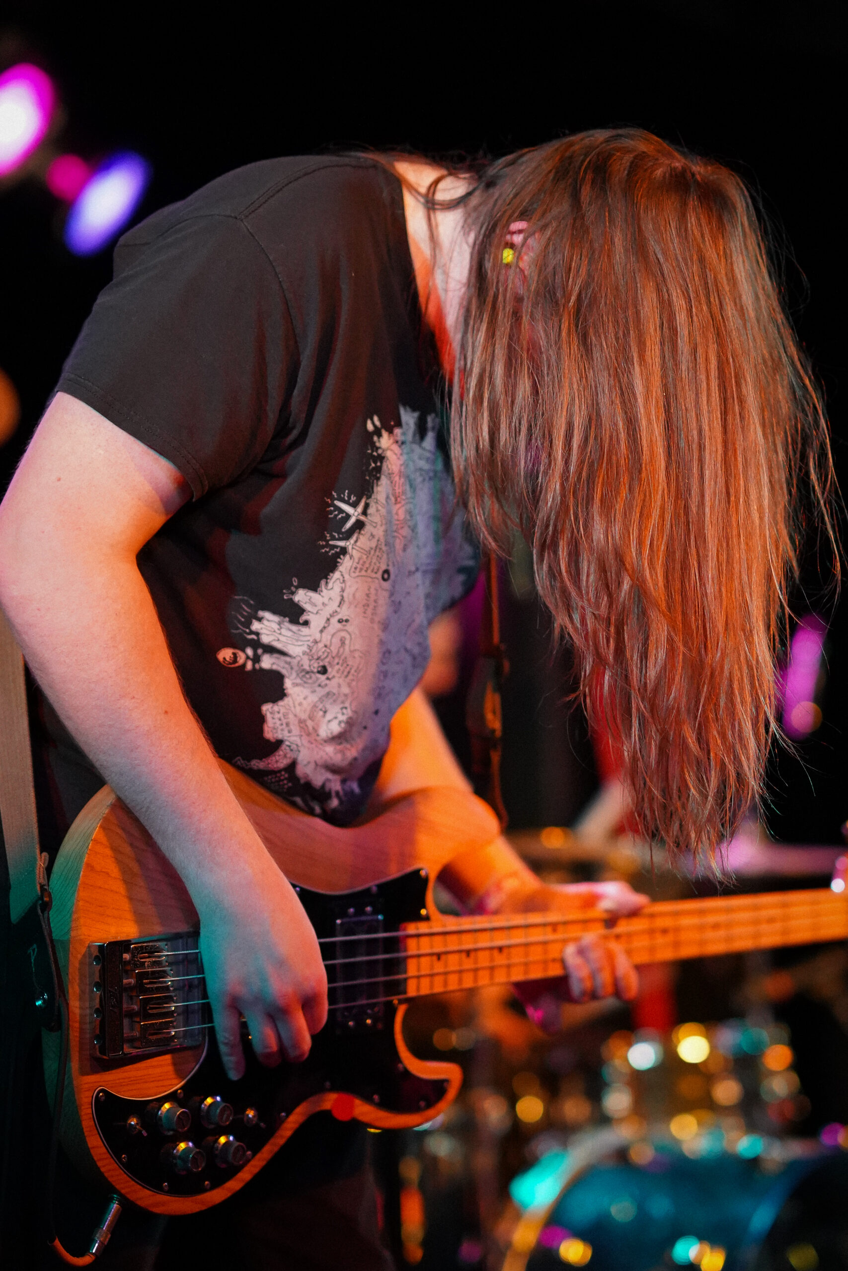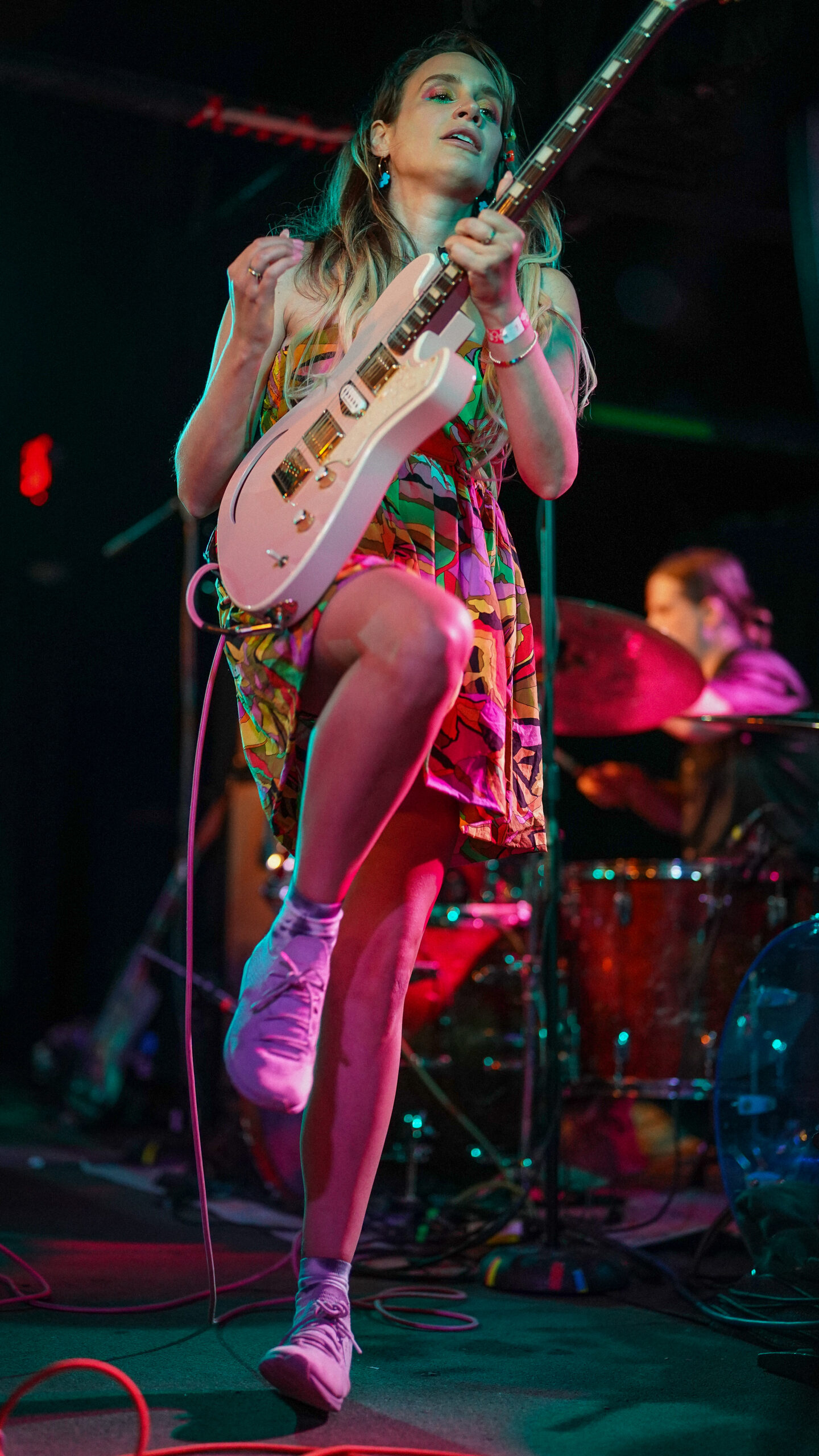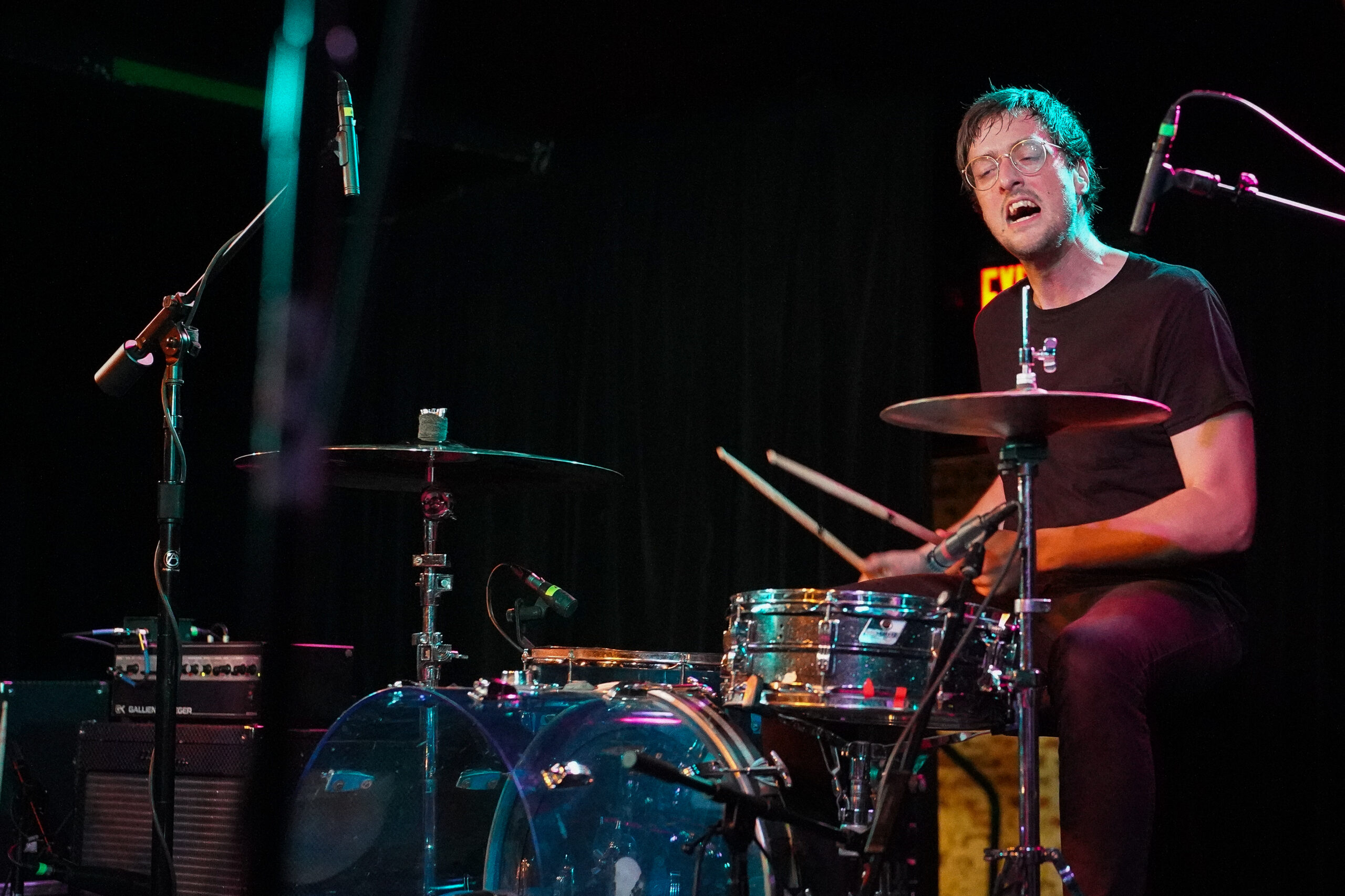 Overlooked in all the terrific noise might be his guitar skills — Baldi handled a large, pearly Gibson Non-Reverse Firebird, and he seemed to take deep satisfaction in intricately fitting fuzz and vibrations into the insanity of each arrangement.