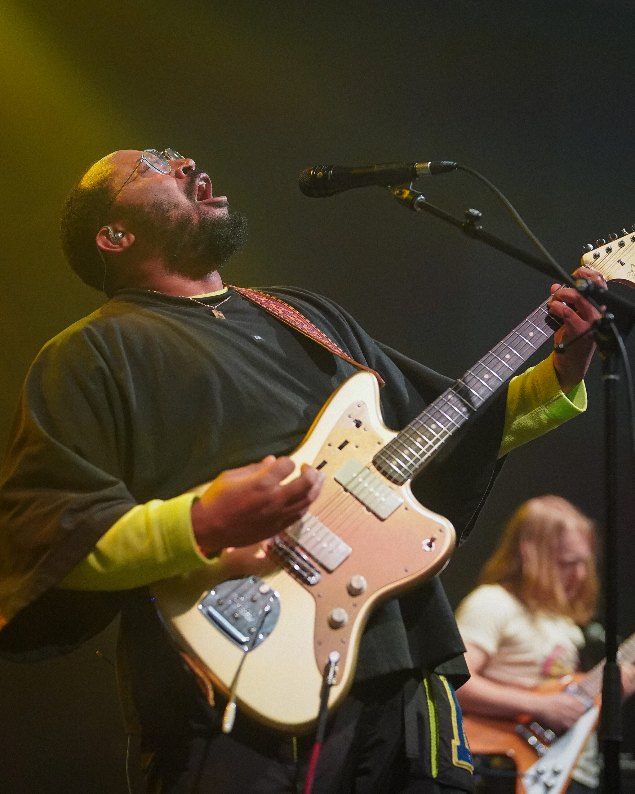 With infectious eagerness, Strange would lead a captivating set pulled mostly from his two studio albums, including the second, Farm to Table, which dropped over the summer on 4AD and like his first was met with critical acclaim. In one moment leaping into the air, in other on his knees adjusting his pedals and screaming with all his might, Bartees was animated, alive, and absorbed.