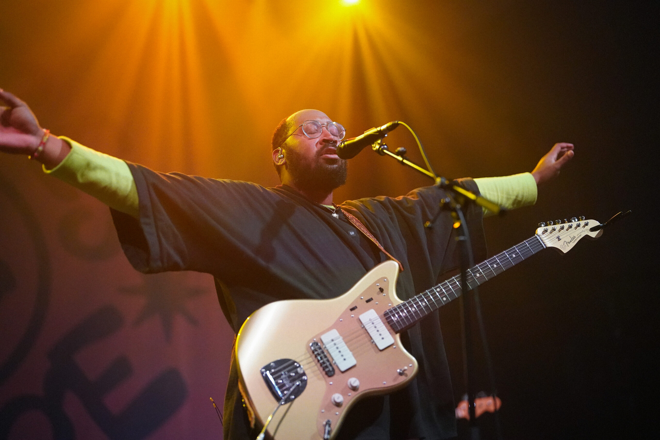 Bartees Strange performs during his first ever headlining appearance at 9:30 Club on Nov. 19, 2022. (Photo by Casey Vock)