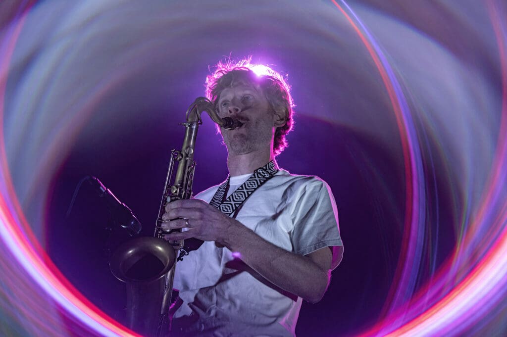 Multi-instrumentalist and composer Robert Stillman opened the evening with a brilliant series of compositions that saw him looping his saxophone along with synthesizers and other instruments as weaved soundscapes that felt both grounded in the traditional and at the same time unmoored, floating through space.