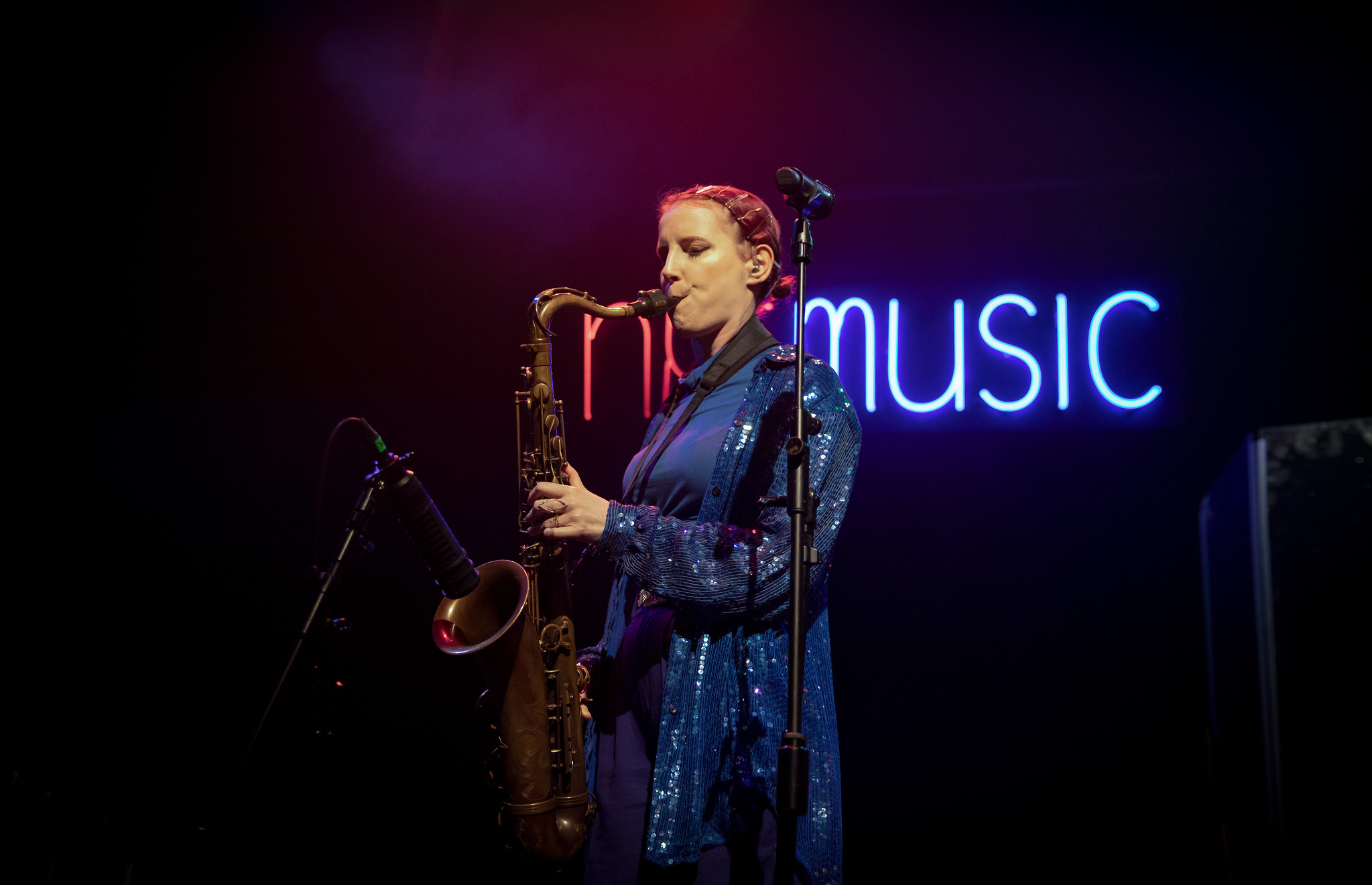 The LA-based neo-soul/jazz multi-instrumentalists Amber Navran, Andris Mattson, and Max Byrk closed the show. Navran would sing in her trademark feathery soprano on “What You Wanted” before picking up the saxophone to blow a few notes on the upbeat track. Mattson and Byrk joined her on sax and flugelhorn, turning the trio into the song’s brass section.