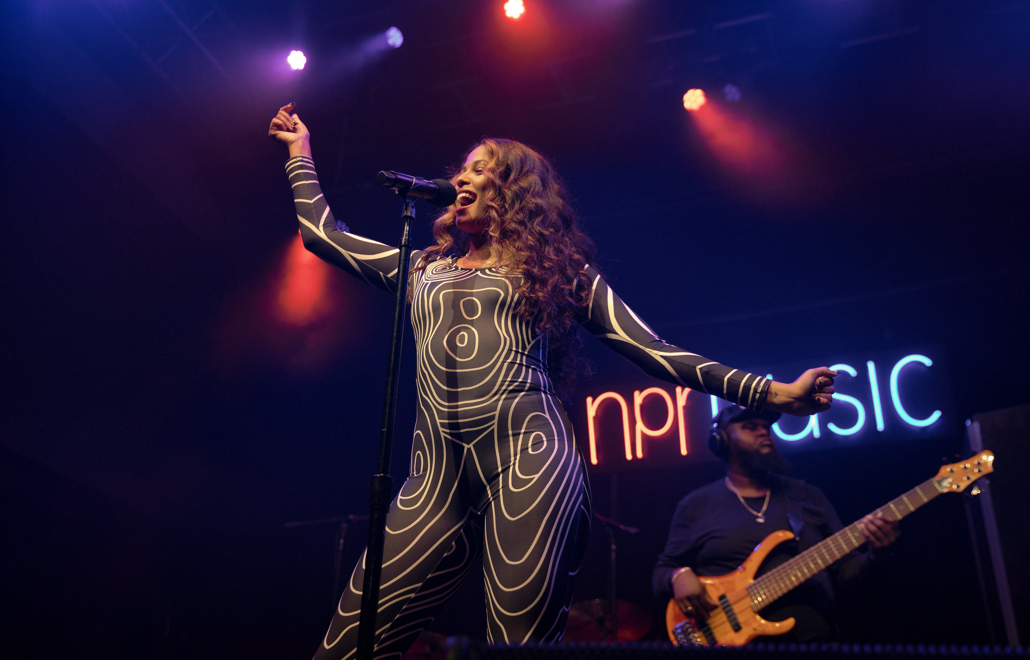 “This next artist put out an album at the beginning of the year, and it has had me in a chokehold,” said the man on the ones and twos who kept the party lit between sets, Tiny Desk Senior Producer Bobby Carter, also known as DJ Cuzzin B. The introduction referred to pop-R&B songstress Amber Mark.