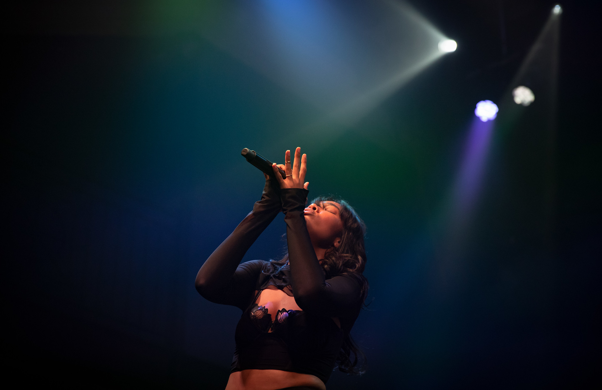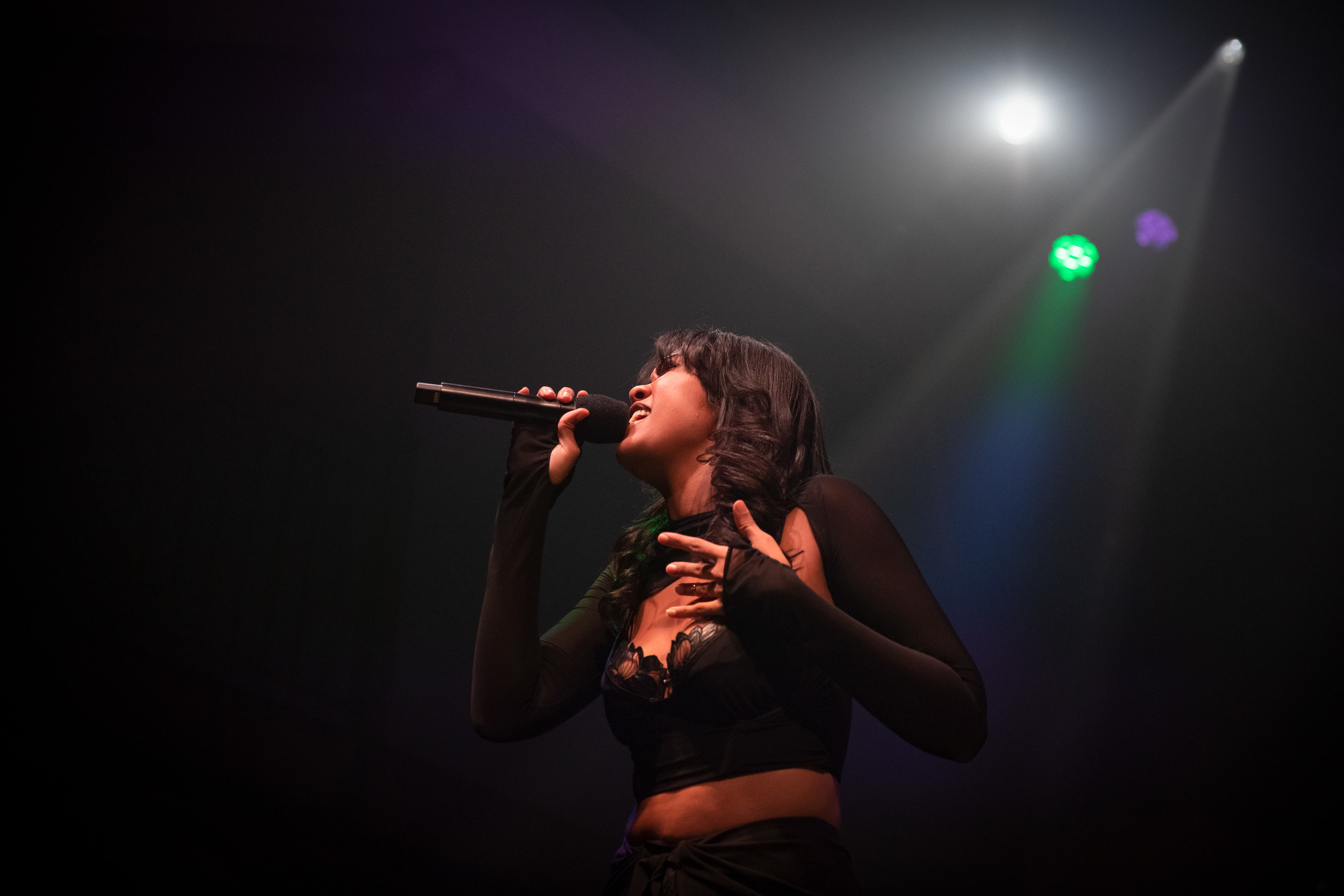 The Dominican-Italian singer-songwriter confidently took to the stage for her first DC performance. She wore a catsuit that Keith Haring could’ve painted. In the ‘80s, Haring used bodies as canvases for artistic expression. On this night, Yendry would use the 9:30 Club’s platform for her autobiographical ballad “Nena.”