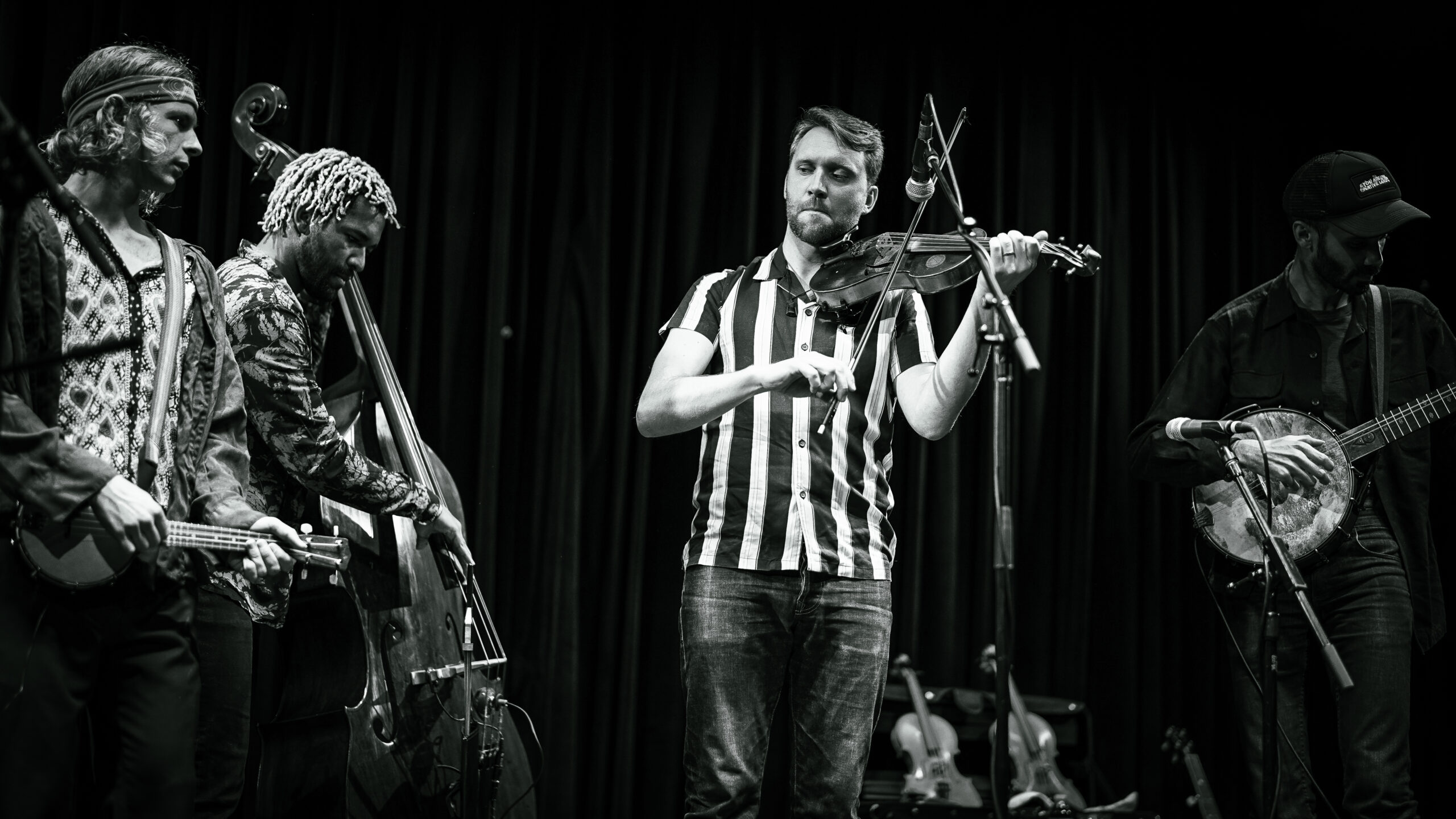 Jake Blount leads his band in a performance at Creative Alliance in Baltimore on Dec. 9, 2022. (Photo by Casey Vock)