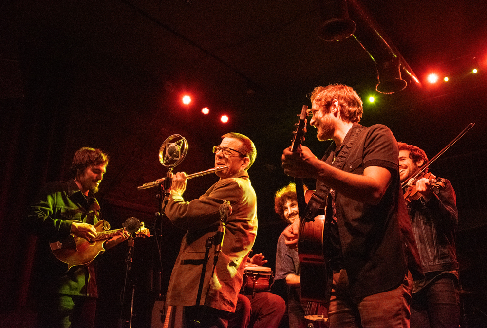 Samson Grisman is the son of David Grisman, the mandolinist famous for his expressive and expert playing, an ability to interpret almost any musical genre, and a collaboration with Jerry Garcia that resulted in sublime and beloved music. Definitely a challenging act to follow, but Sam Grisman (vocals, bass), Ric Robertson (vocals, mandola, mandolin, electric piano and electric guitar), Aaron Lipp (vocals, guitars and electric piano), Chris J. English (vocals, drums, percussion), and Alex Hargreaves (fiddler from the Billy Strings band), know their chops, performing with dexterity, passion, and of course, love.