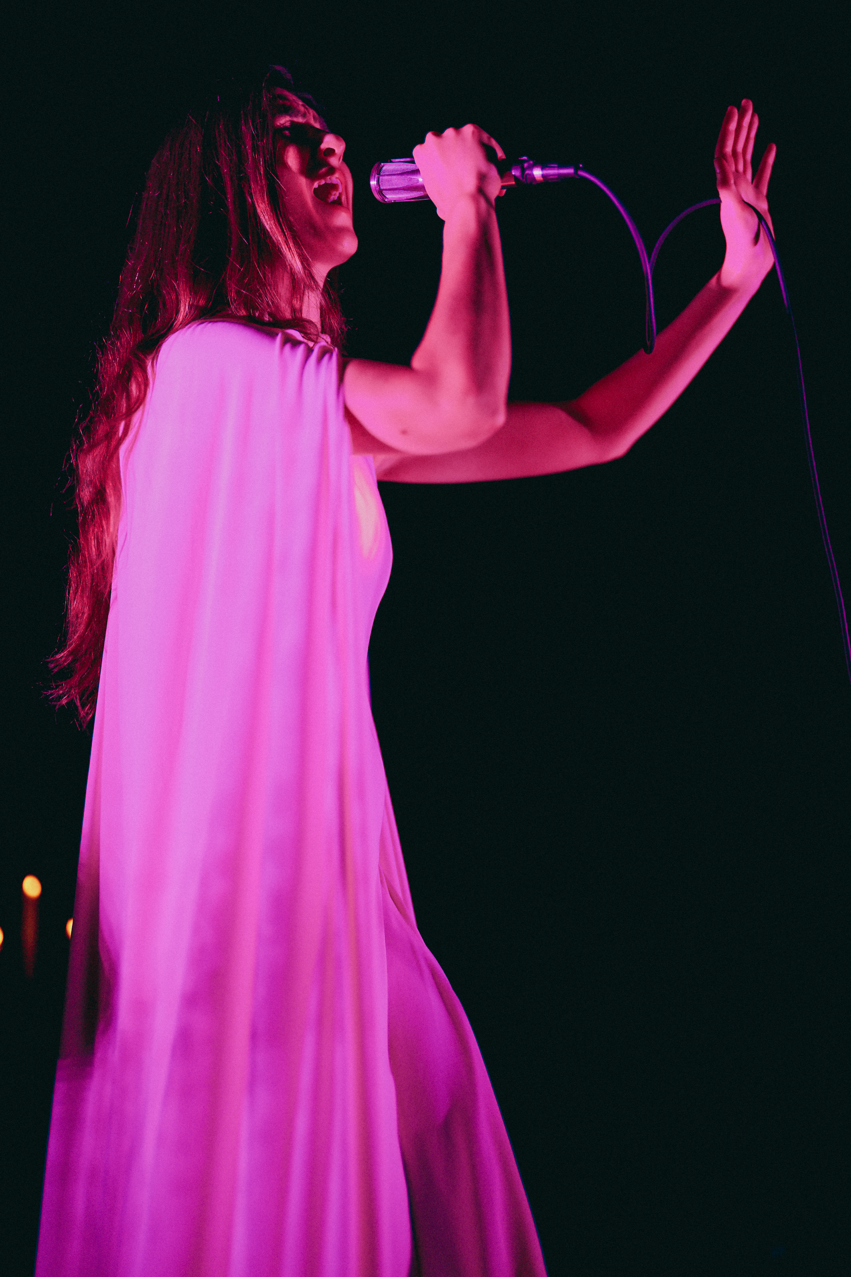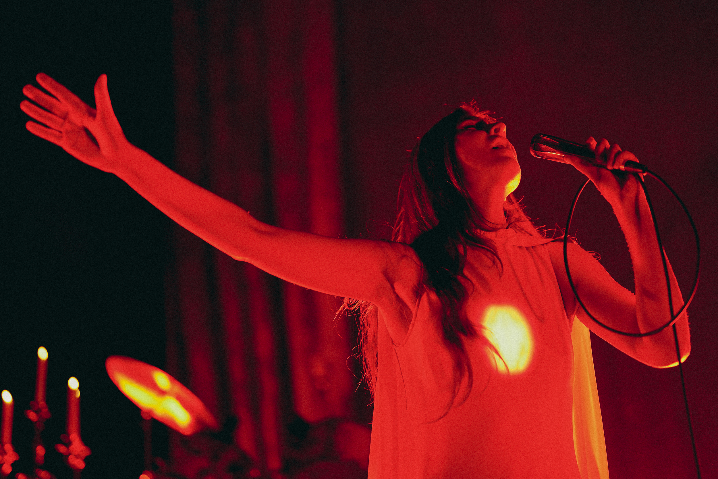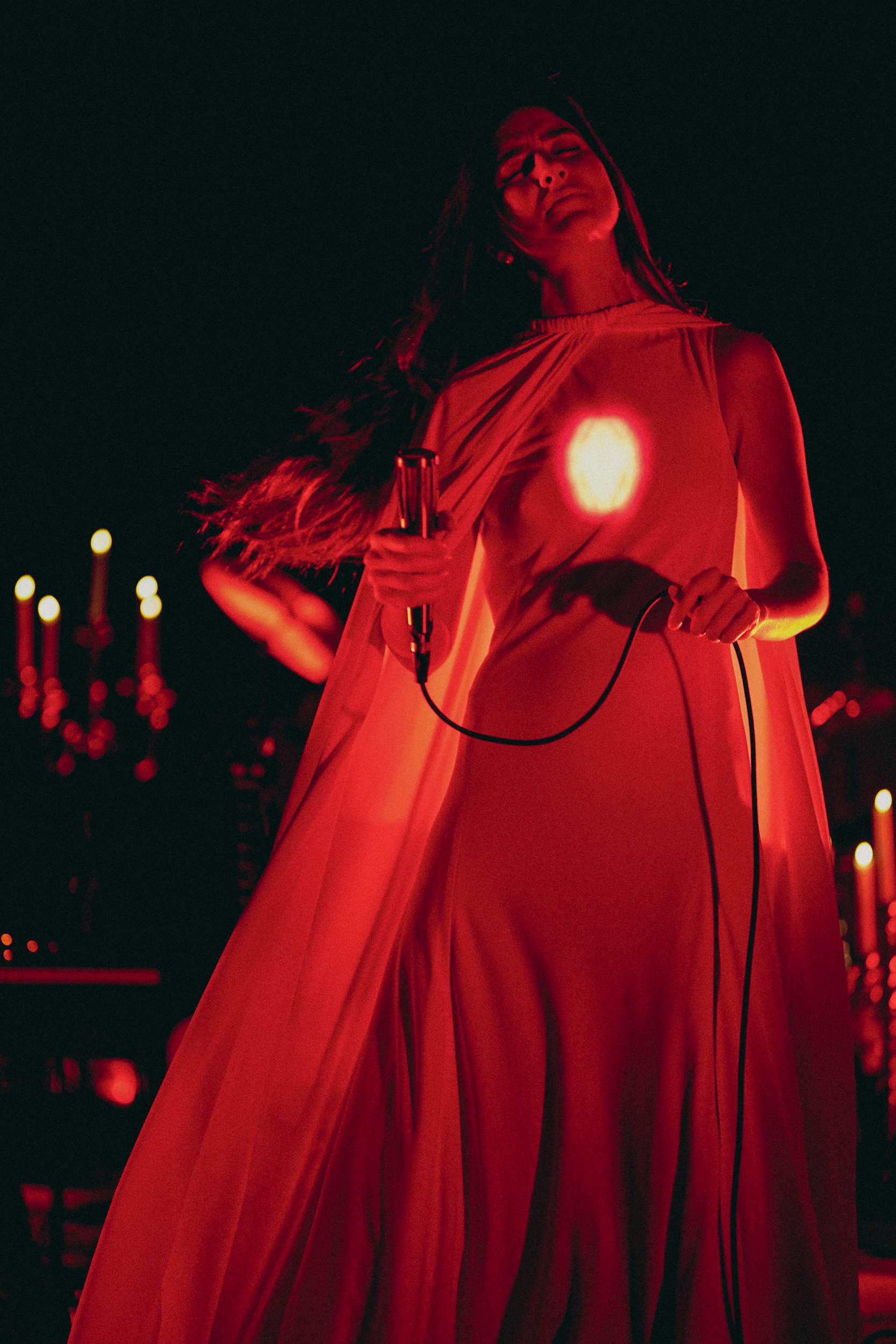 With (fireproof) candelabras providing a holy luminescence and a red glow about the stage, Mering emerged to raucous cheers and guttural screams from the fans who’d packed into the historic V Street venue to see and hear her.