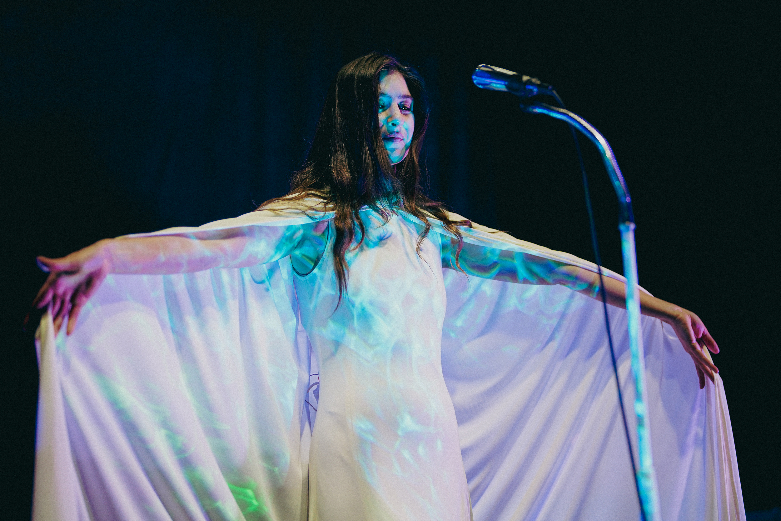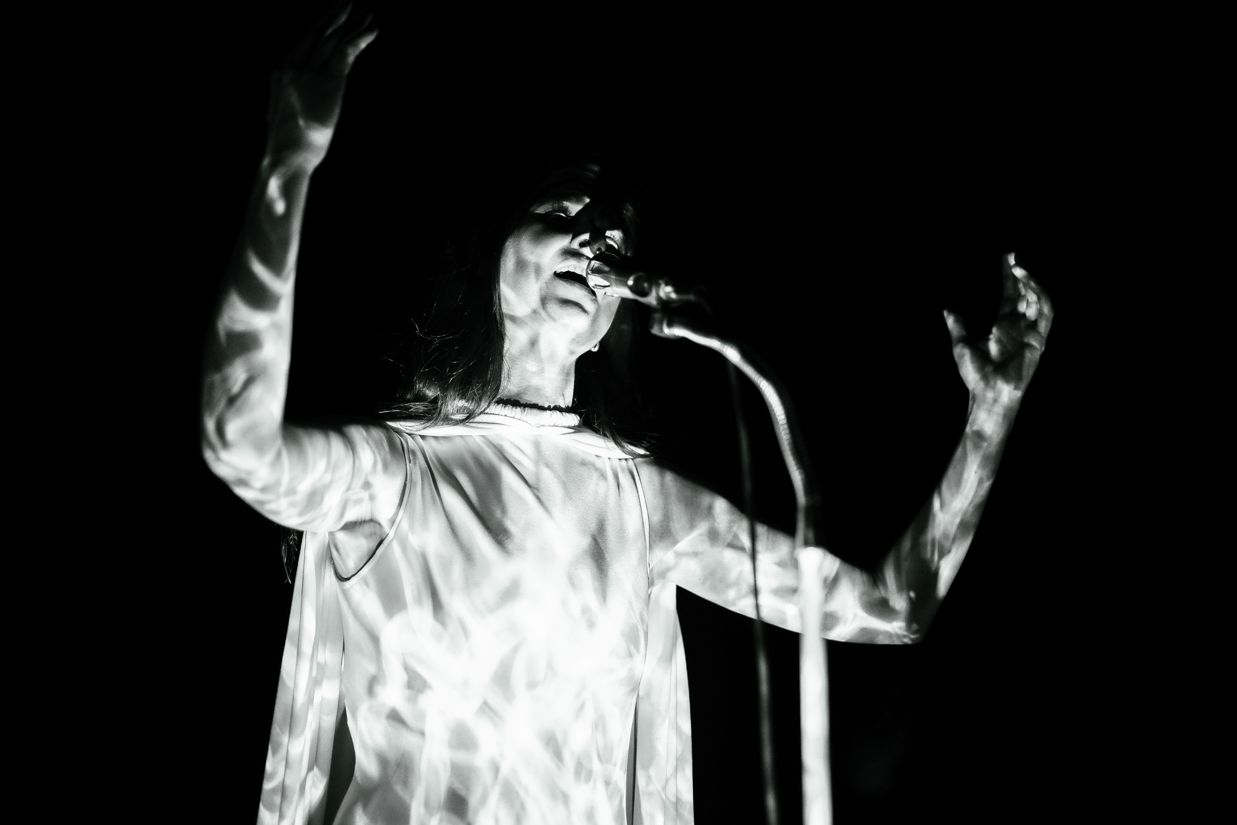 One of her most bold endeavors on the new album and with an astonishing cathedral sound, “God Turn Me Into A Flower” reverberated and shimmered and, here, Mering’s voice took daunting turns to impassion the transformation, or maybe more so the sense of discharge, depicted in the lyrics. It was paired with a projection of the custom visuals created for the song by documentary filmmaker Adam Curtis — the collection of footage was provocative as a backdrop of this striking number.