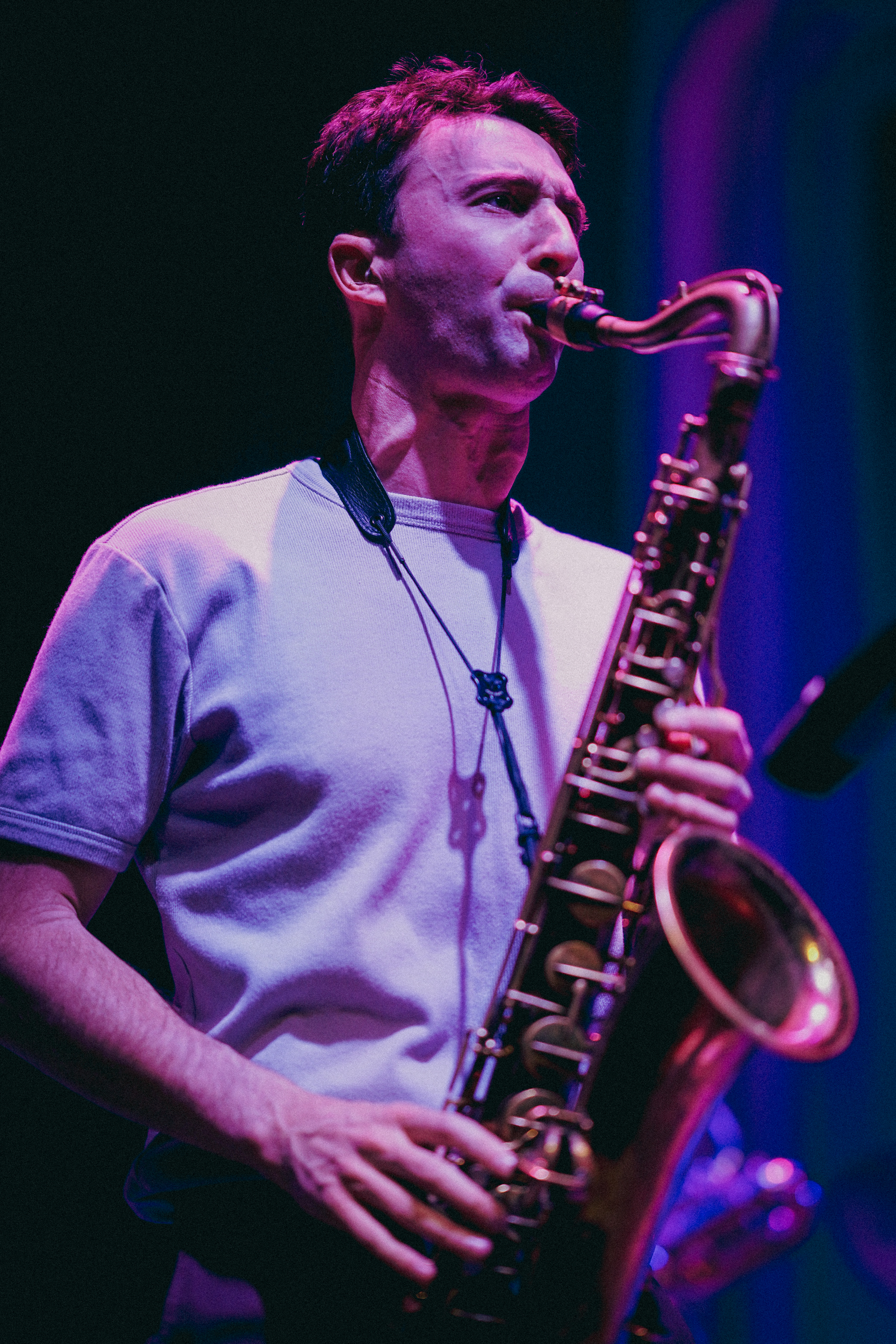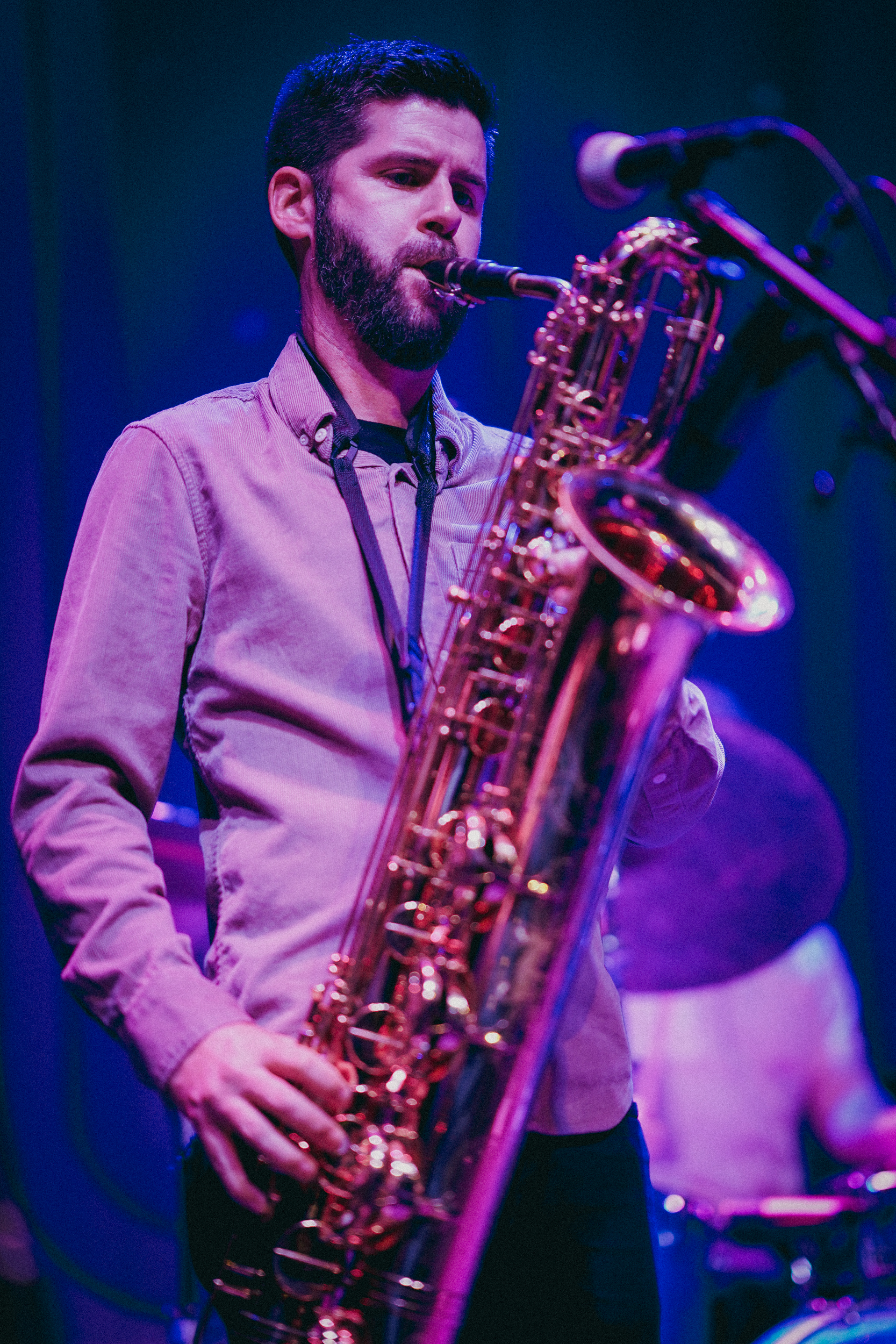 The hyper-potent section comprised of Brennan Carter on trumpet, Levi Gillis on tenor saxophone, and Evan Smith on baritone saxophone was already a group on its own, but together with their new pals the collective unit conjured a vitality and fortitude that was uncommon for any sort of backyard hangout.