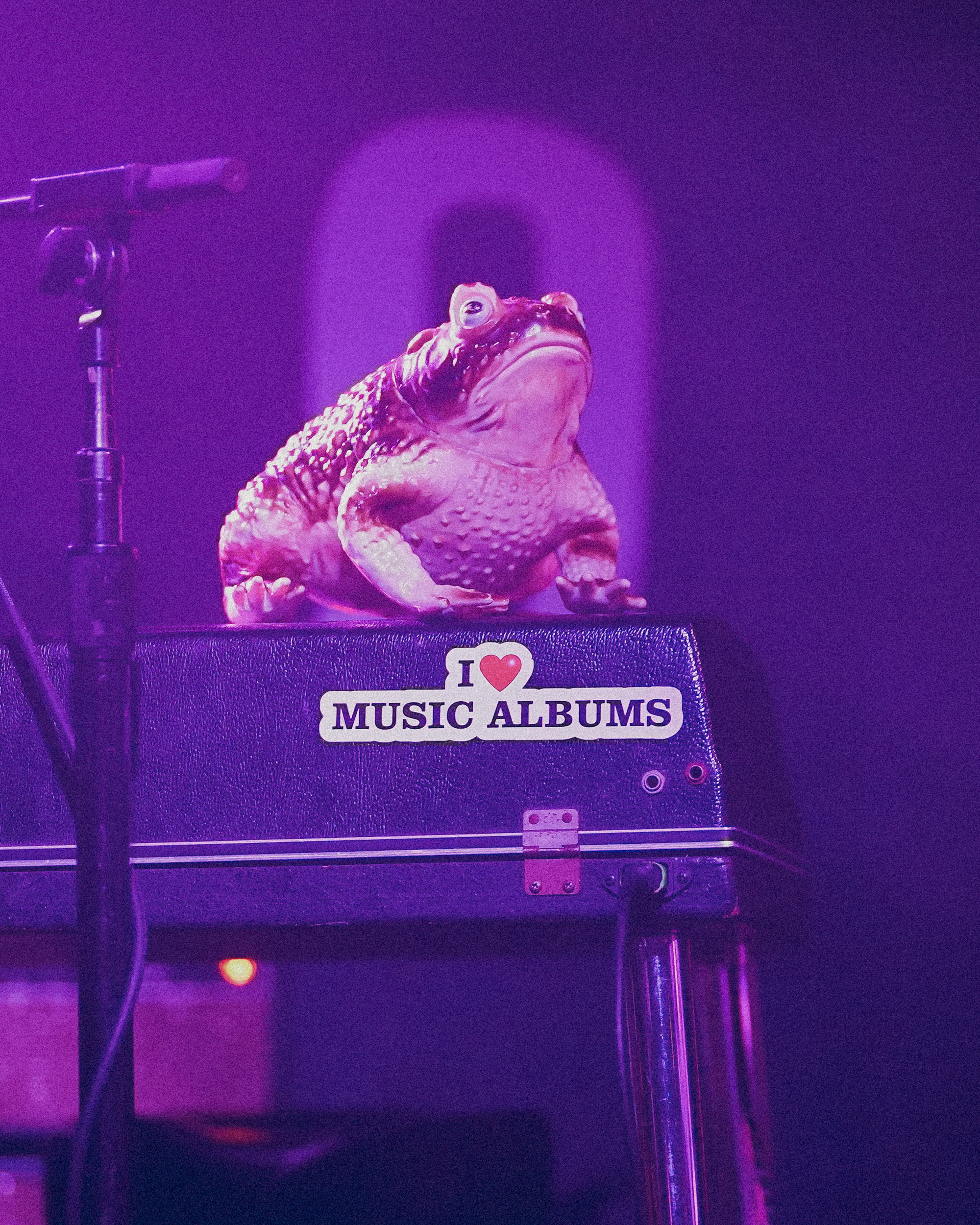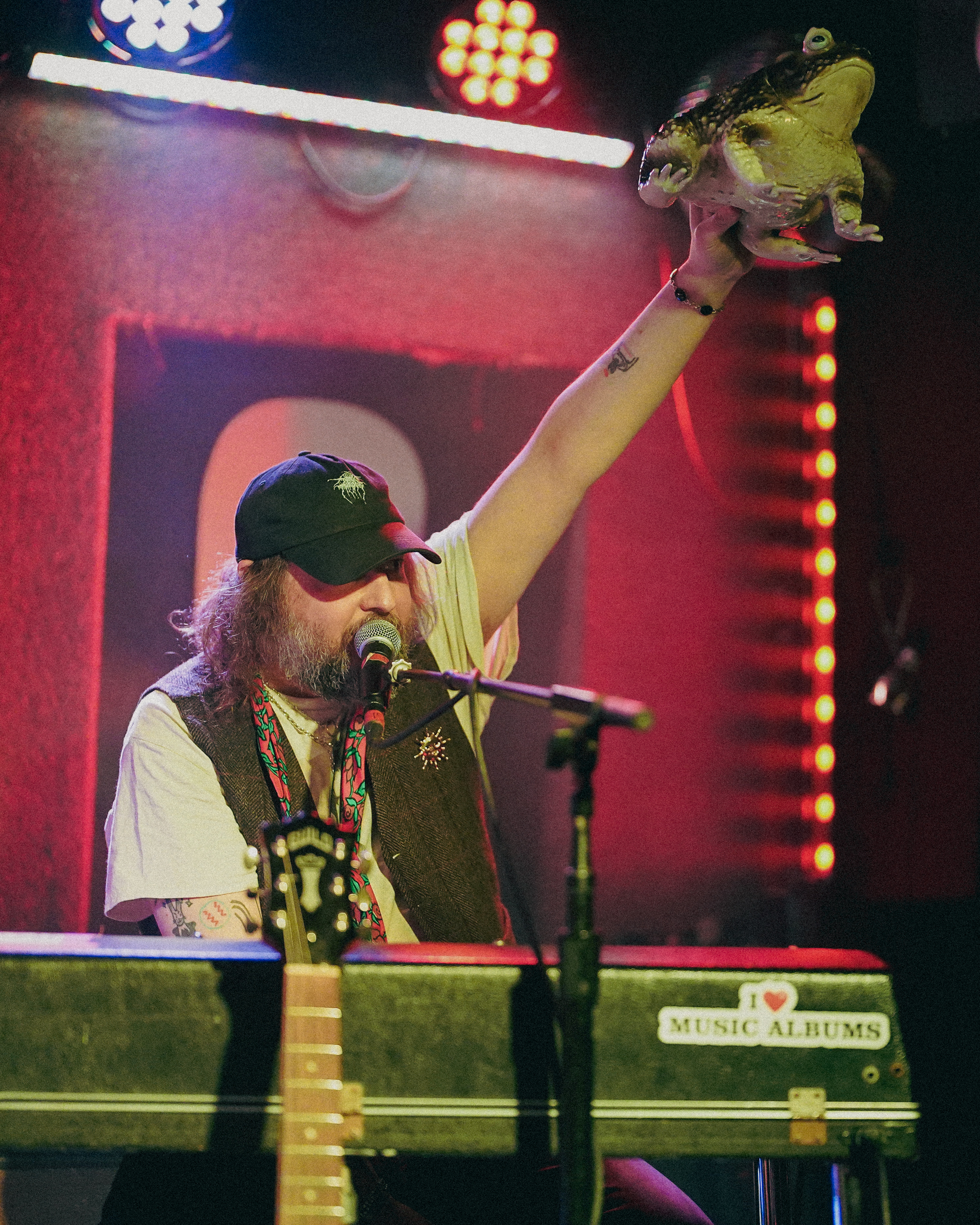 The opening song on Smalltown, “Love Letters to Plants,” saw Kyle scoot back behind the keys, where he had his first real interaction with the fake amphibian, whose name he struggled to recall all night.