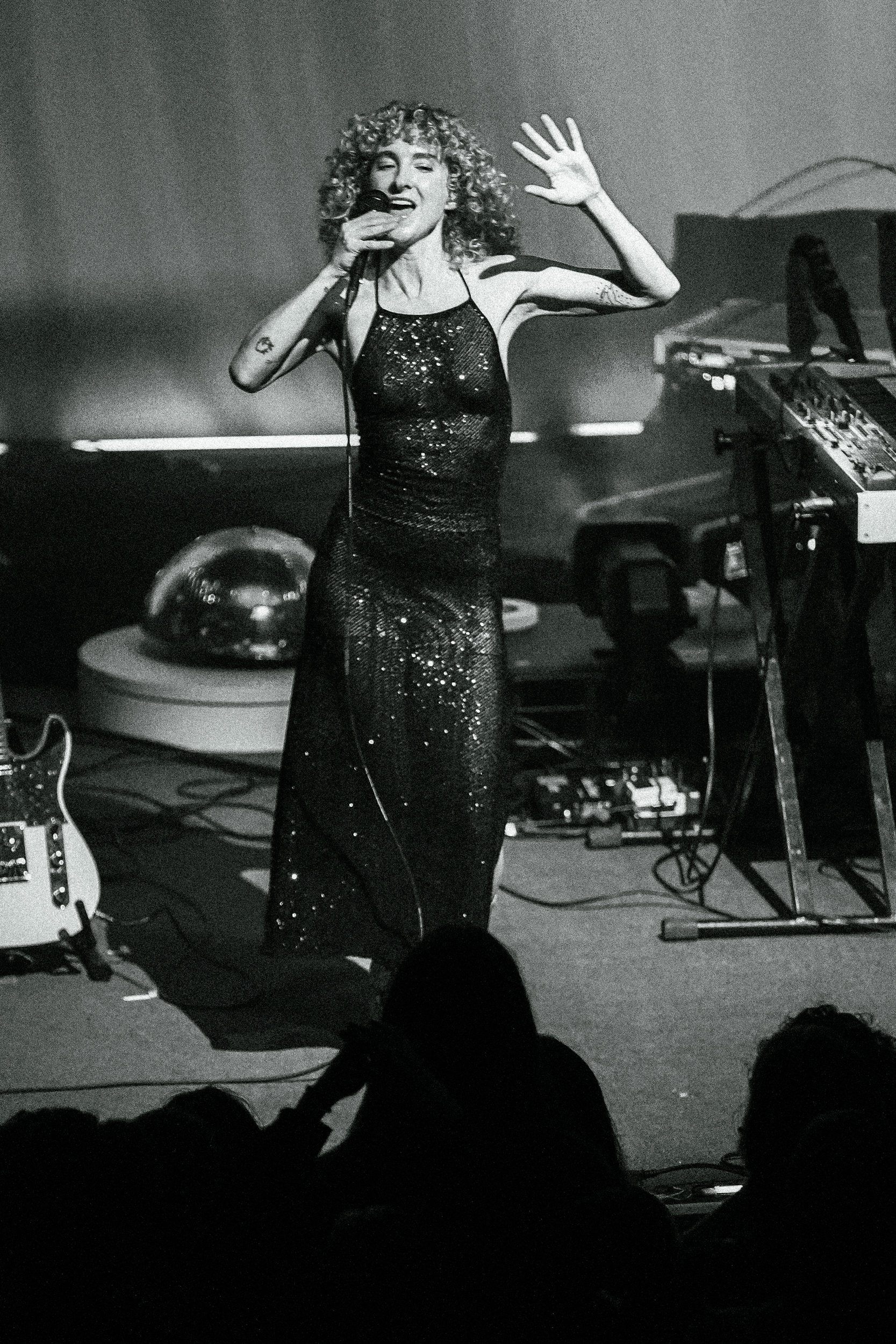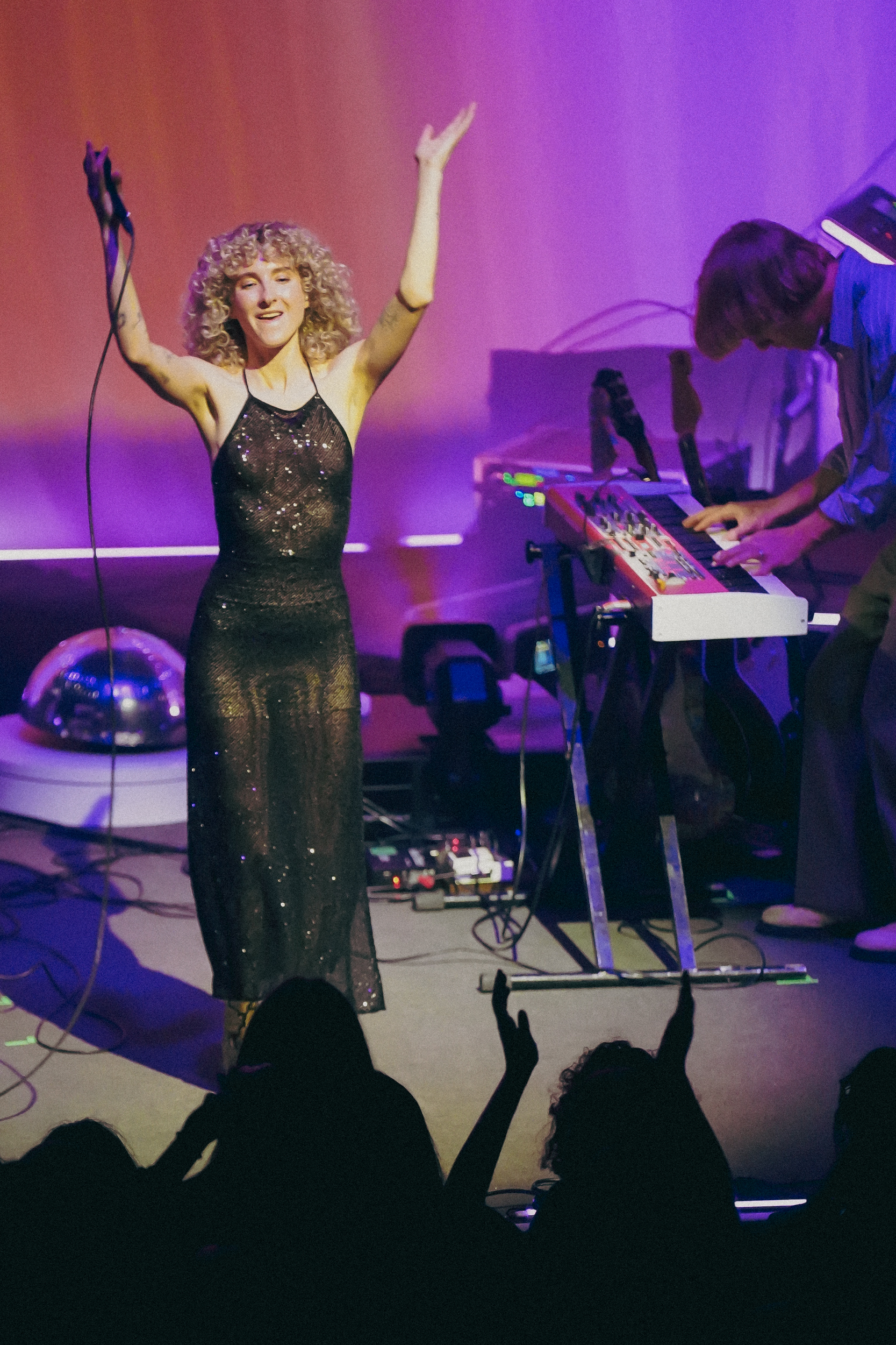 “We want to be the first indie band sponsored by Claritin,” she entertained attendees with her every word, wearing a tight-fitting, sparkling black dress and a what looked like bounty hunter’s snakeskin boots.