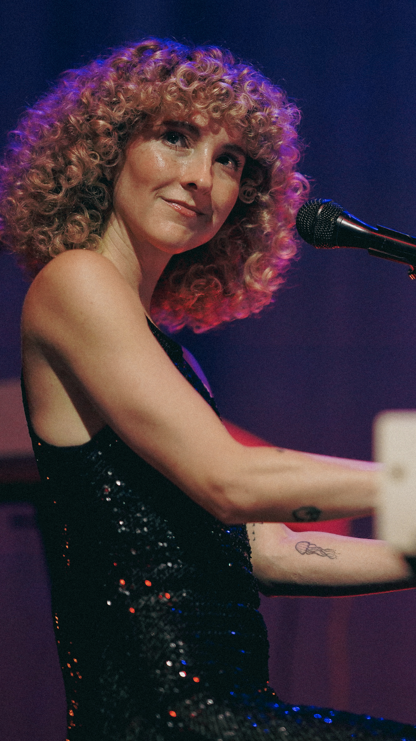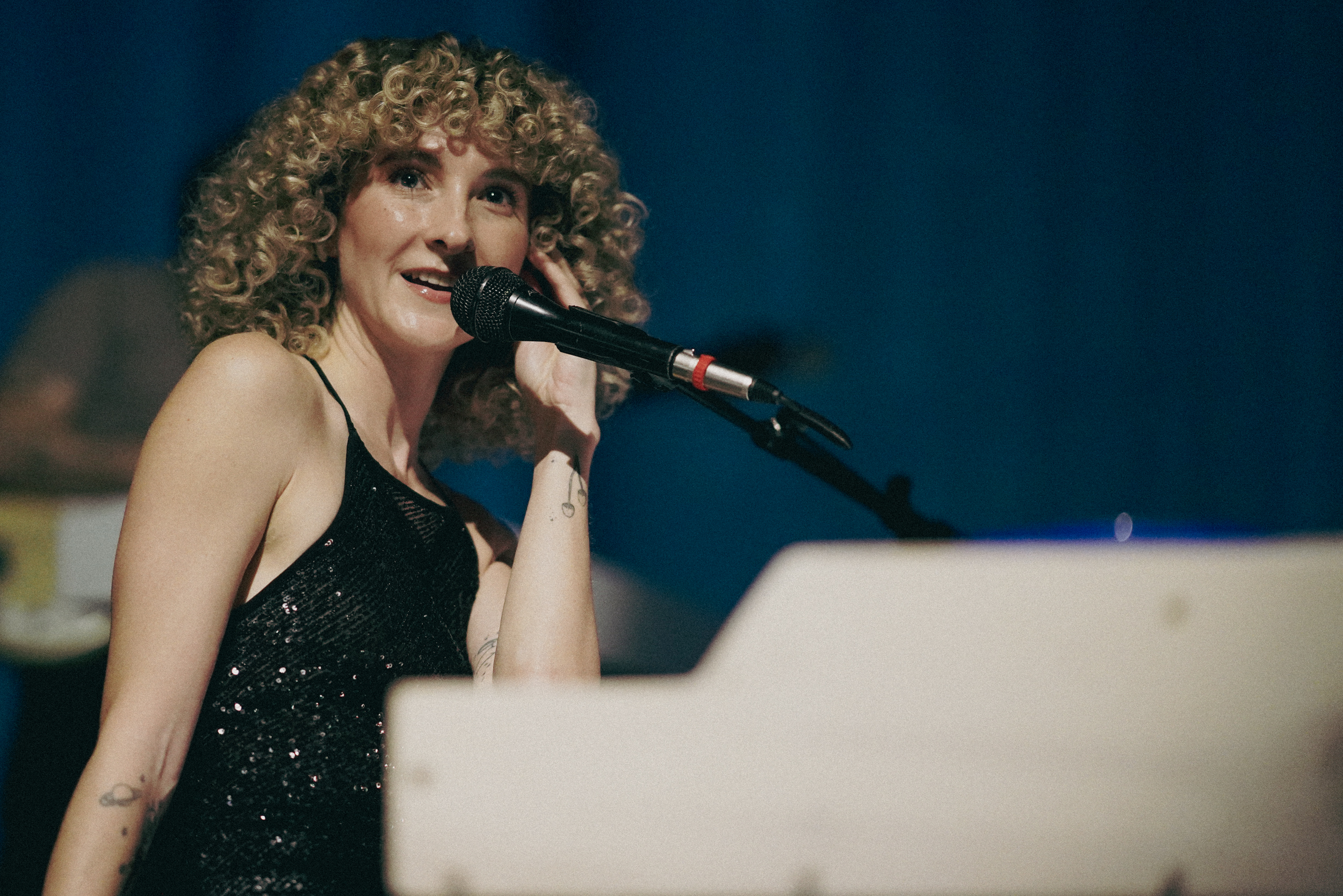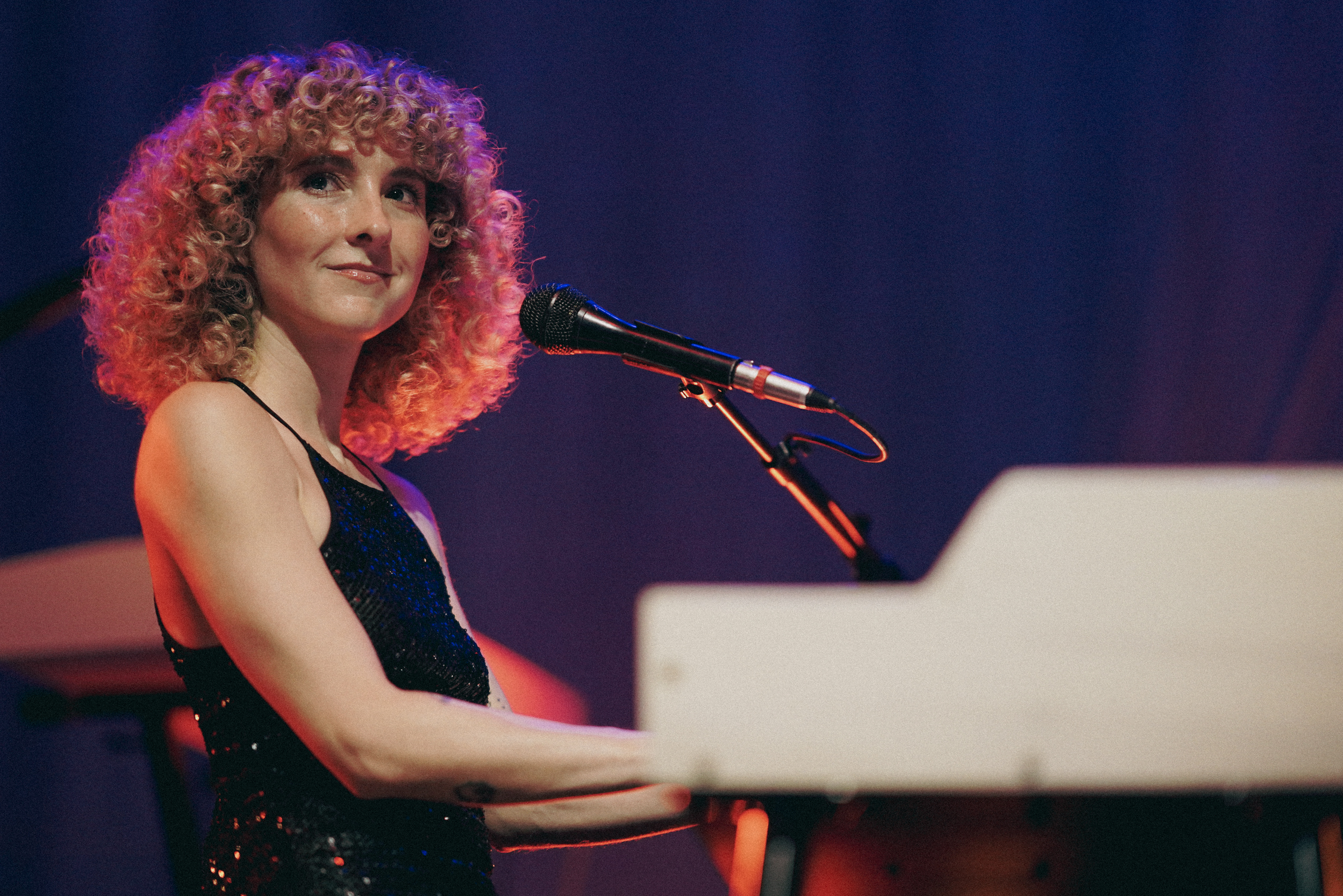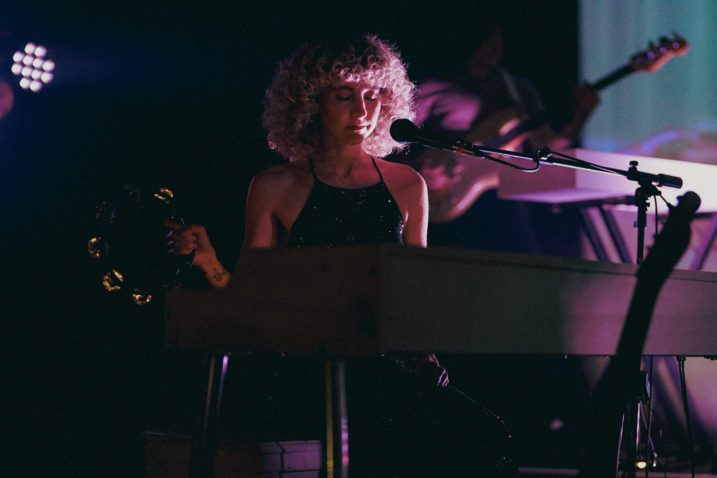 A narrow keyboard sat on a stand on Alaina’s side, and she stood up to use it for the third song of the night.