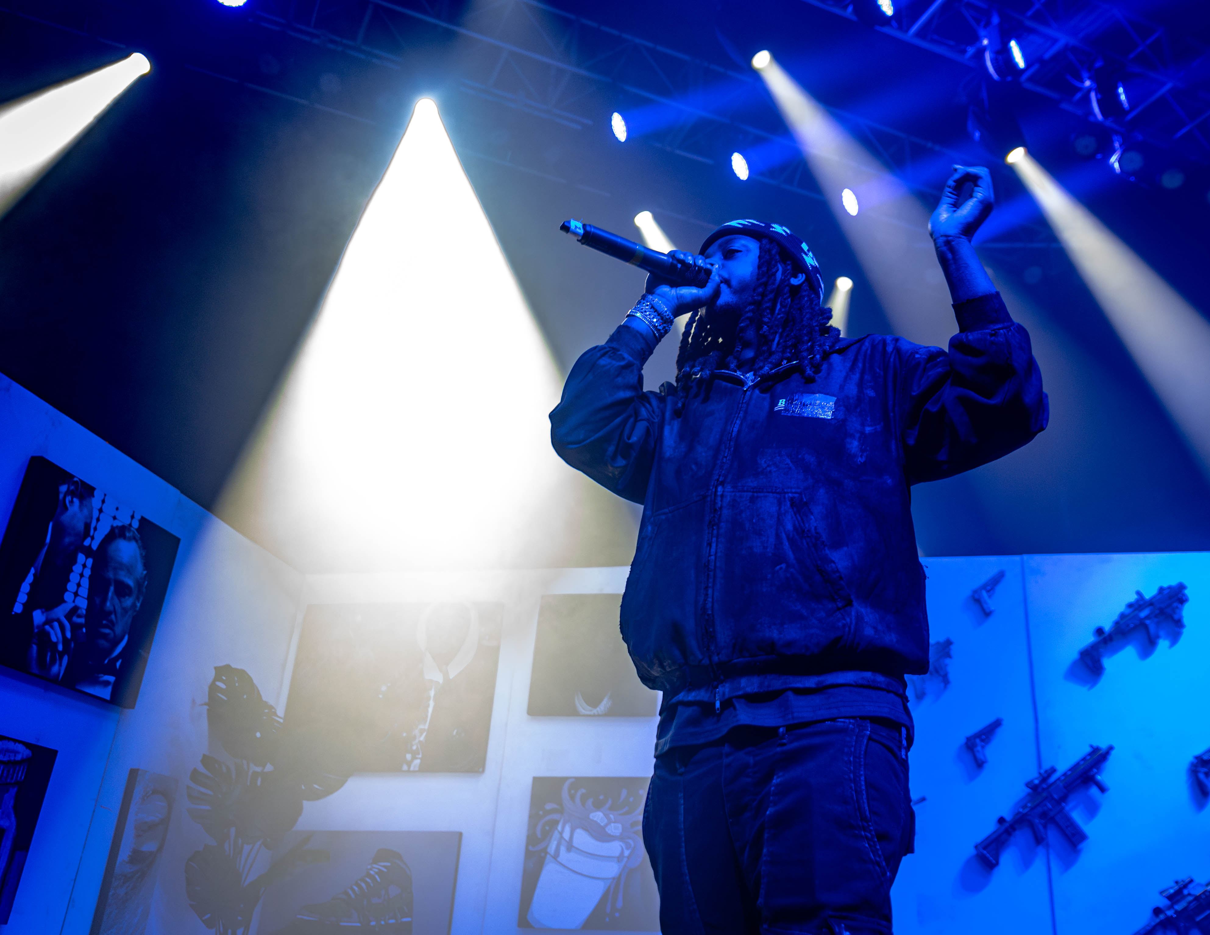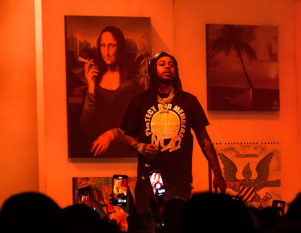 The Wavy Navy smoked out the Fillmore Silver Spring for Babyface Ray’s DMV stop on his Courtesy of the MOB Tour. The Wavy Gang general has been touring accompanied by his friend and frequent collaborator, Veeze in support of Ray’s latest album MOB. With a stage dressed like Ray’s personal art gallery — including a wall full of golden guns, fan art, paintings of the Godfather, the Mona Lisa smoking a joint and styrofoam double cups along with some of his album covers and a picture of him and Veeze — Babyface Ray emerged from behind the gallery walls starting the night off with ”6 Mile Show” as the room erupted.