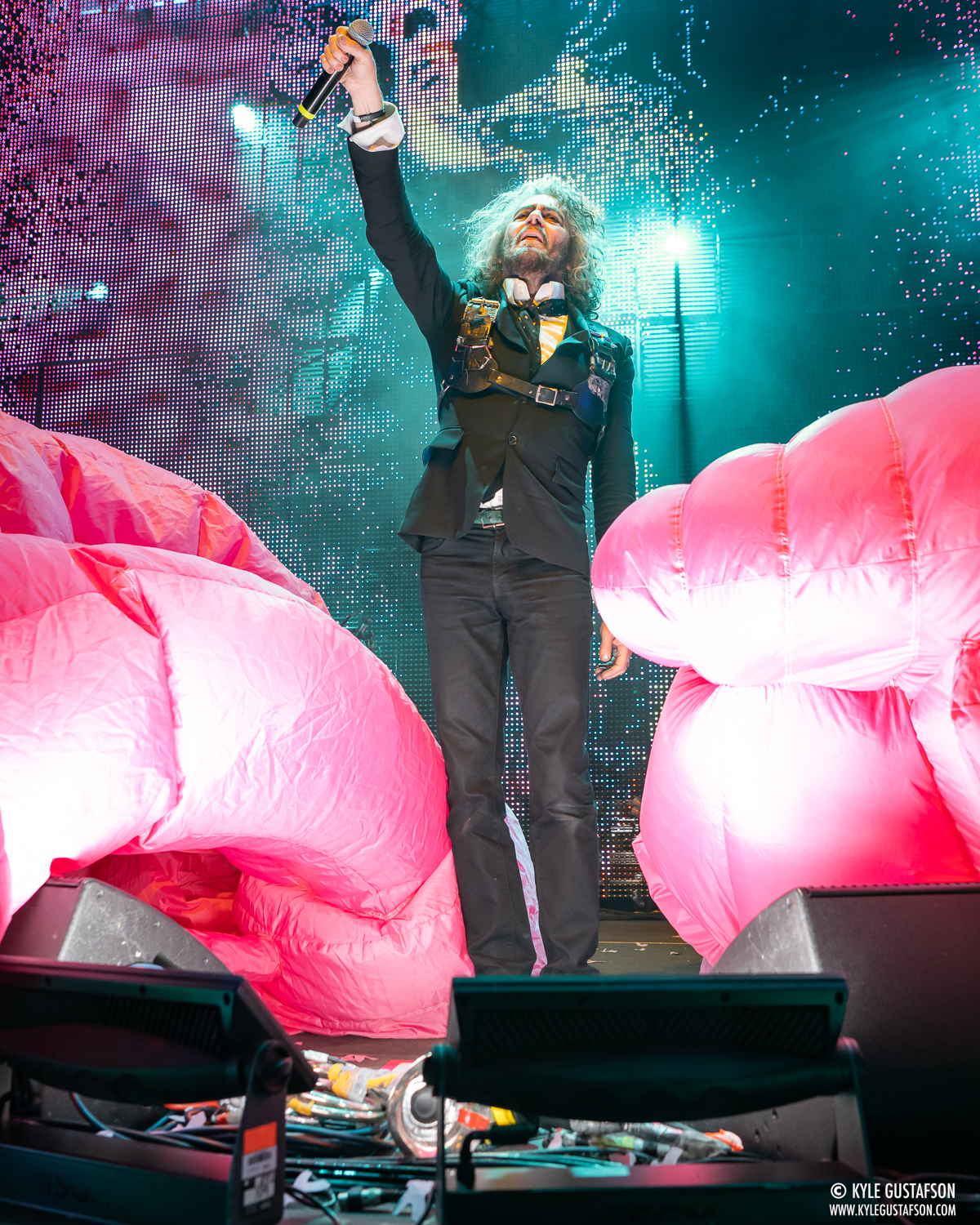 I’m in awe of Wayne Coyne. He’s 62 by the way. He’s such a master at controlling the crowd, particularly in keeping the crowd’s energy up and attention focused in between songs while various things are blown up or deflated on stage. He’s constantly telling the audience how much he loves them and how thankful he is that they came to the show and none of it seems contrived. Like I said last time, long may he continue.