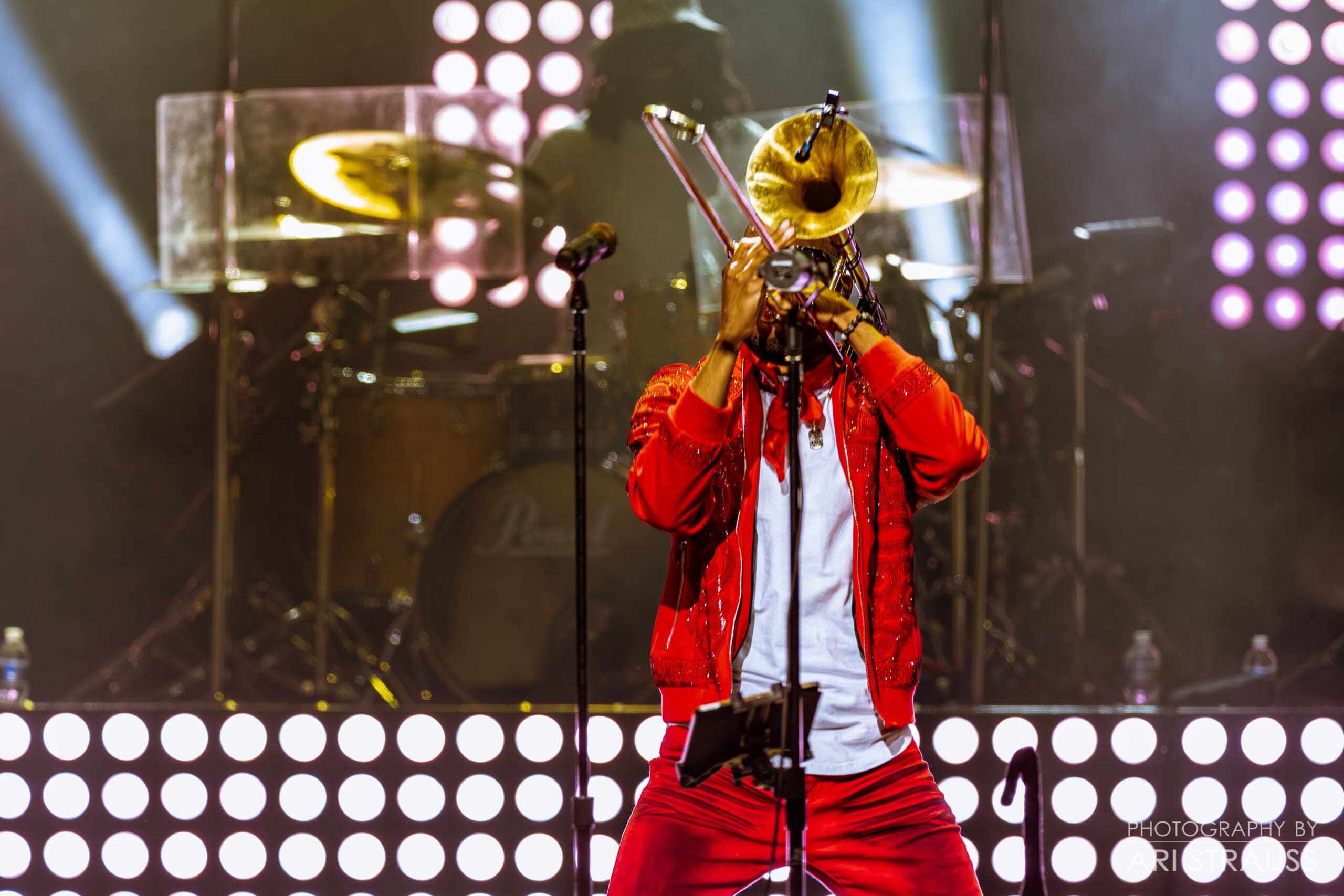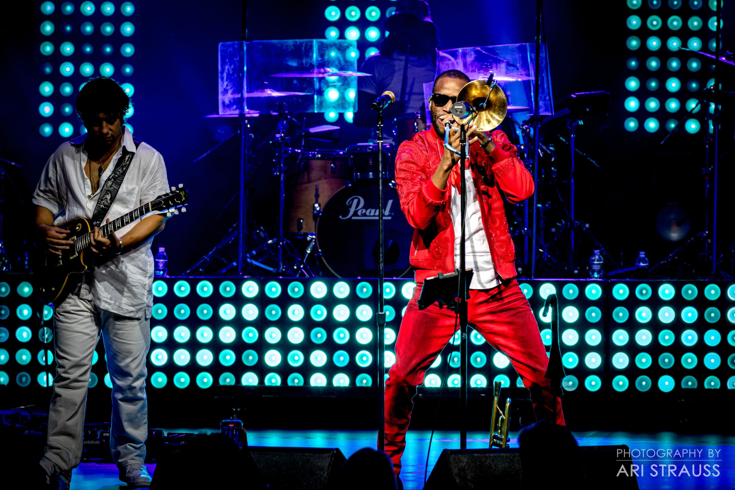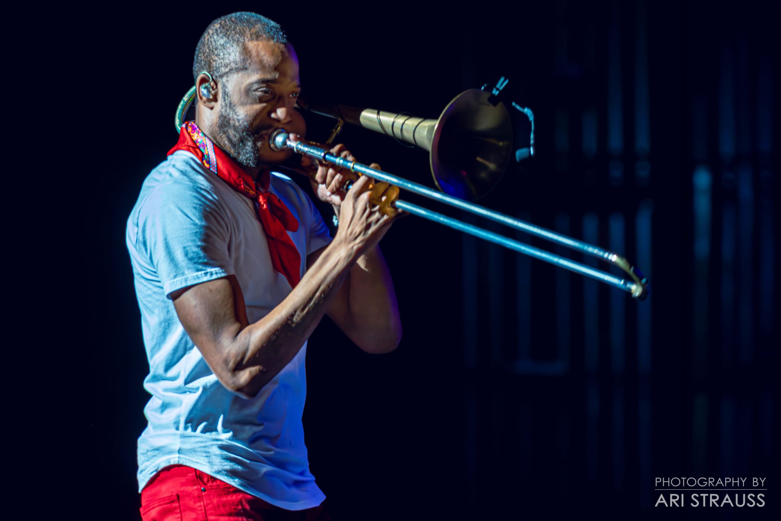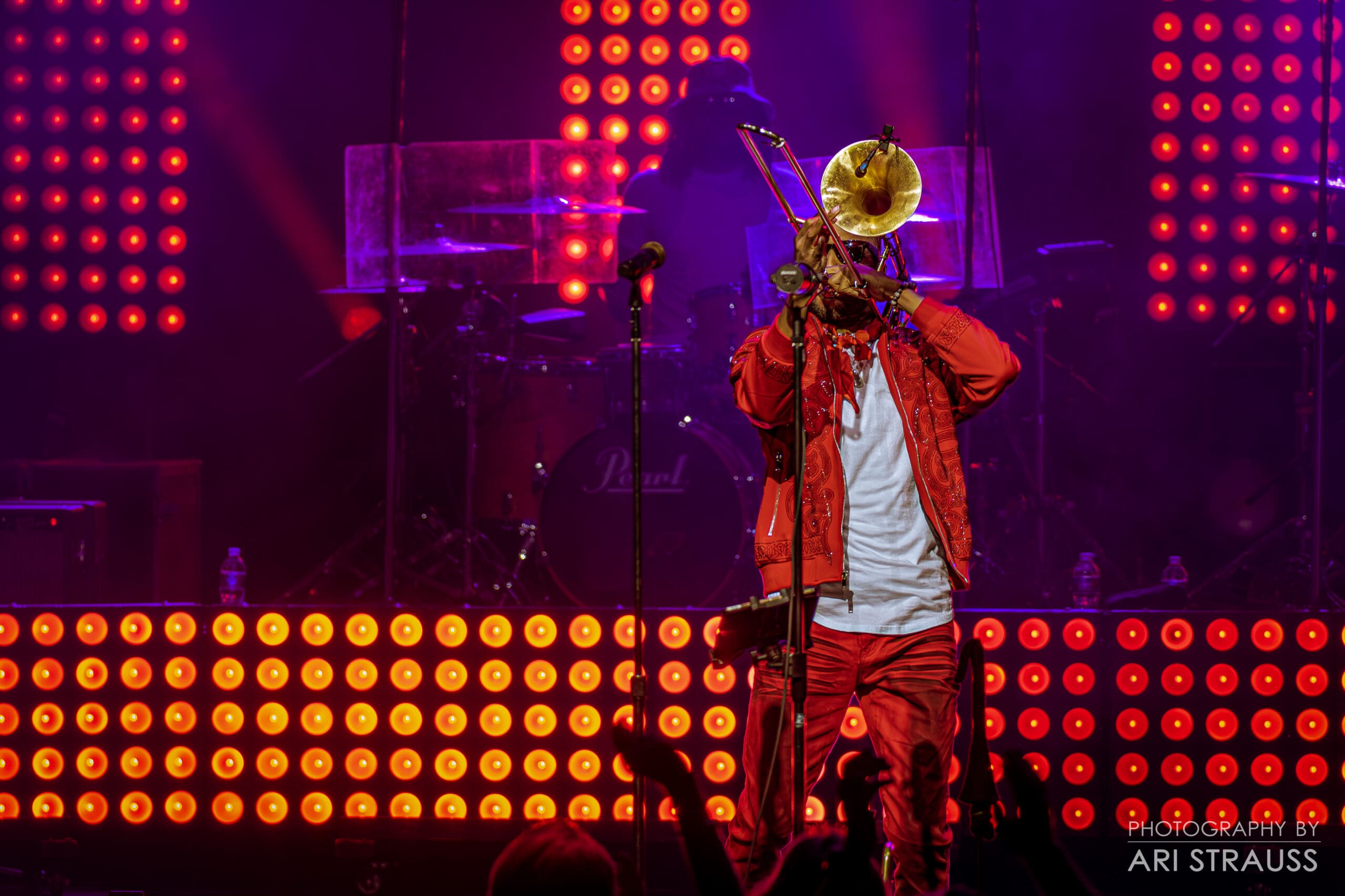 As co-headliners, Trombone Shorty and Ziggy Marley each played 75-minute sets. They alternate who goes first and who goes last for each show. On this particular evening, Ziggy took the middle set after Mavis Staples, while Trombone Shorty had the marquee set.