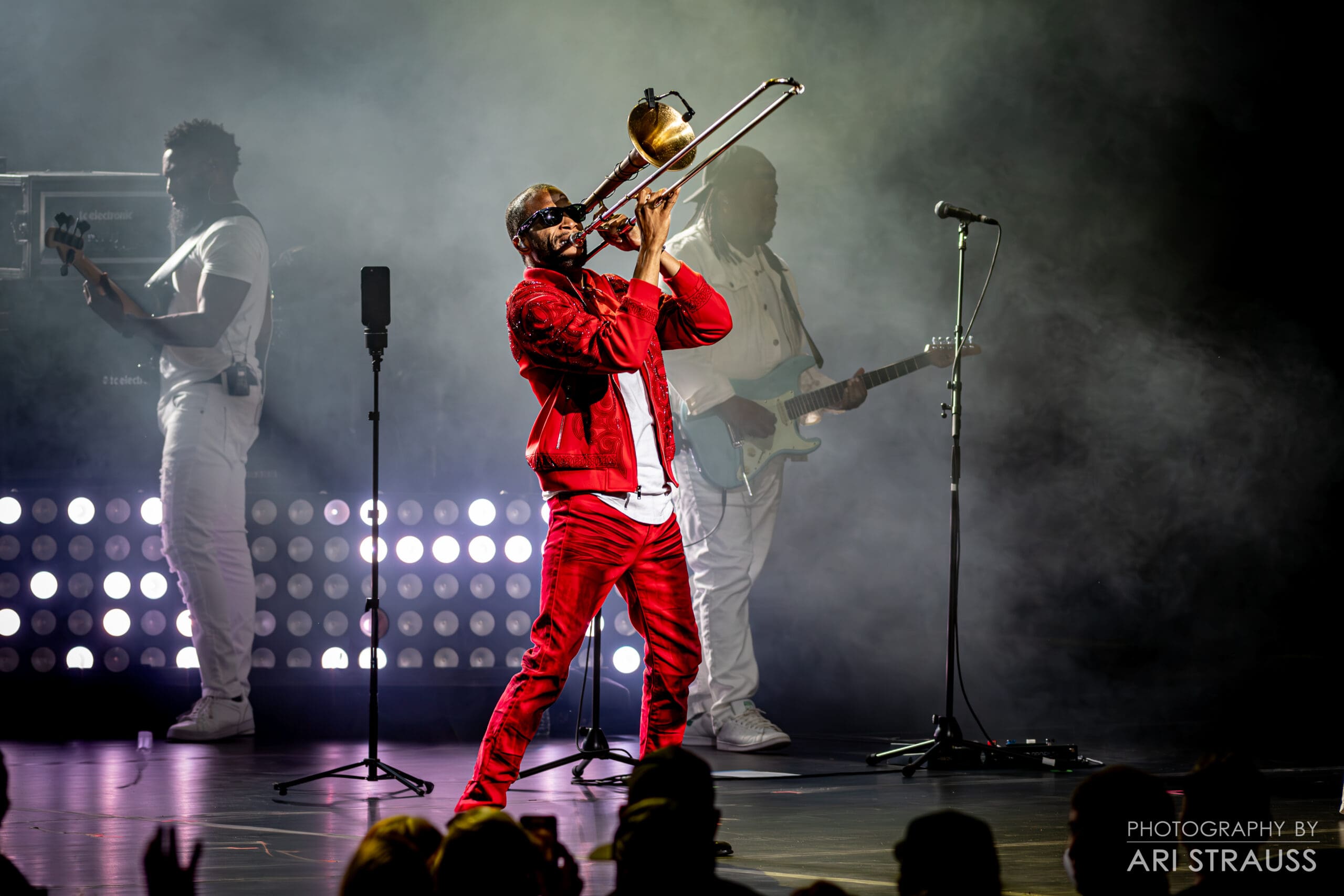 And here are some photos of Trombone Shorty & Orleans Avenue performing at Wolf Trap on June 17, 2023. All pictures copyright and courtesy of Ari Strauss.