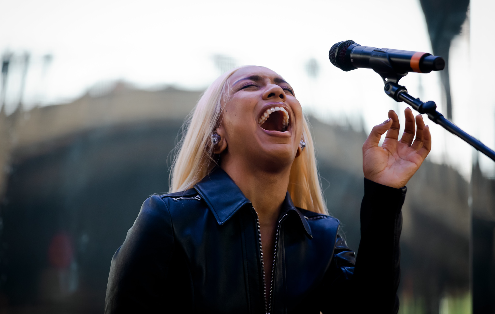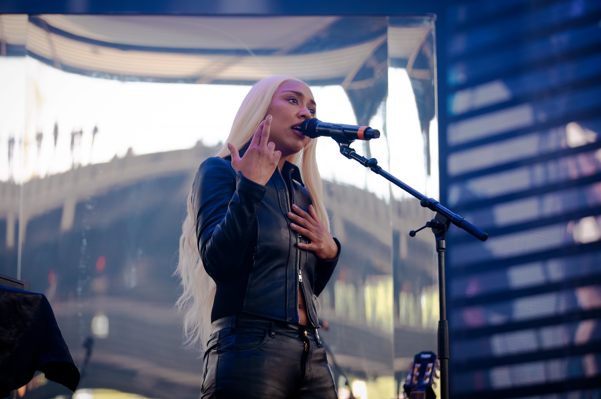 The music extravaganza commenced with singer-songwriter, and guitarist Fousheé. The dynamic performer from the Garden State would embody a yin and yang duality — vulnerable and powerful, simultaneously syrupy sweet and sandpaper gritty. The audience eagerly devoured each moment, whether it was her rendition of the soul ballad “Can’t Take My Eyes Off You,” originally sung by Frankie Valli in the ’60s, or her release from late last year, the fiery punk anthem “Stupid Bitch.”