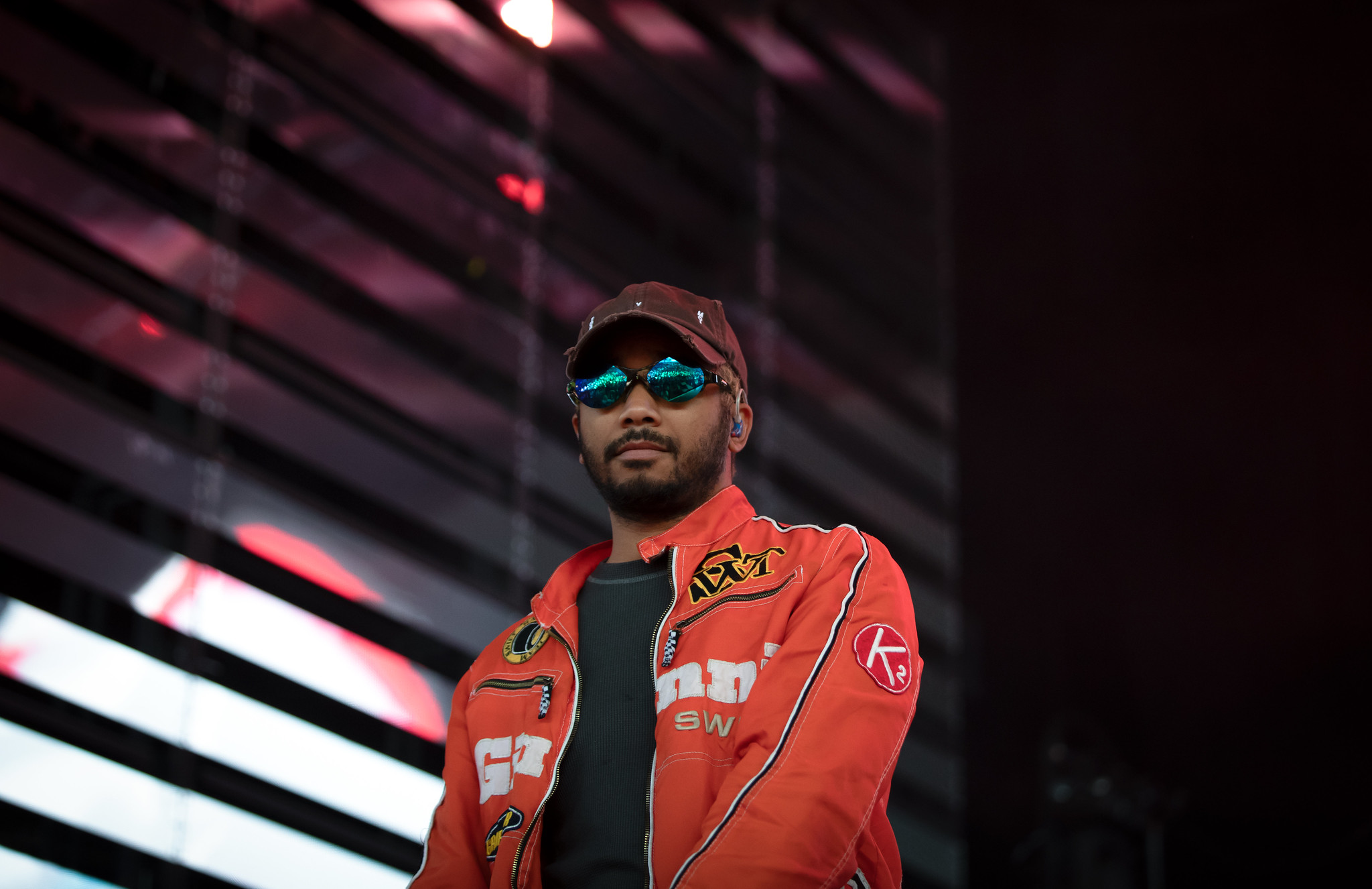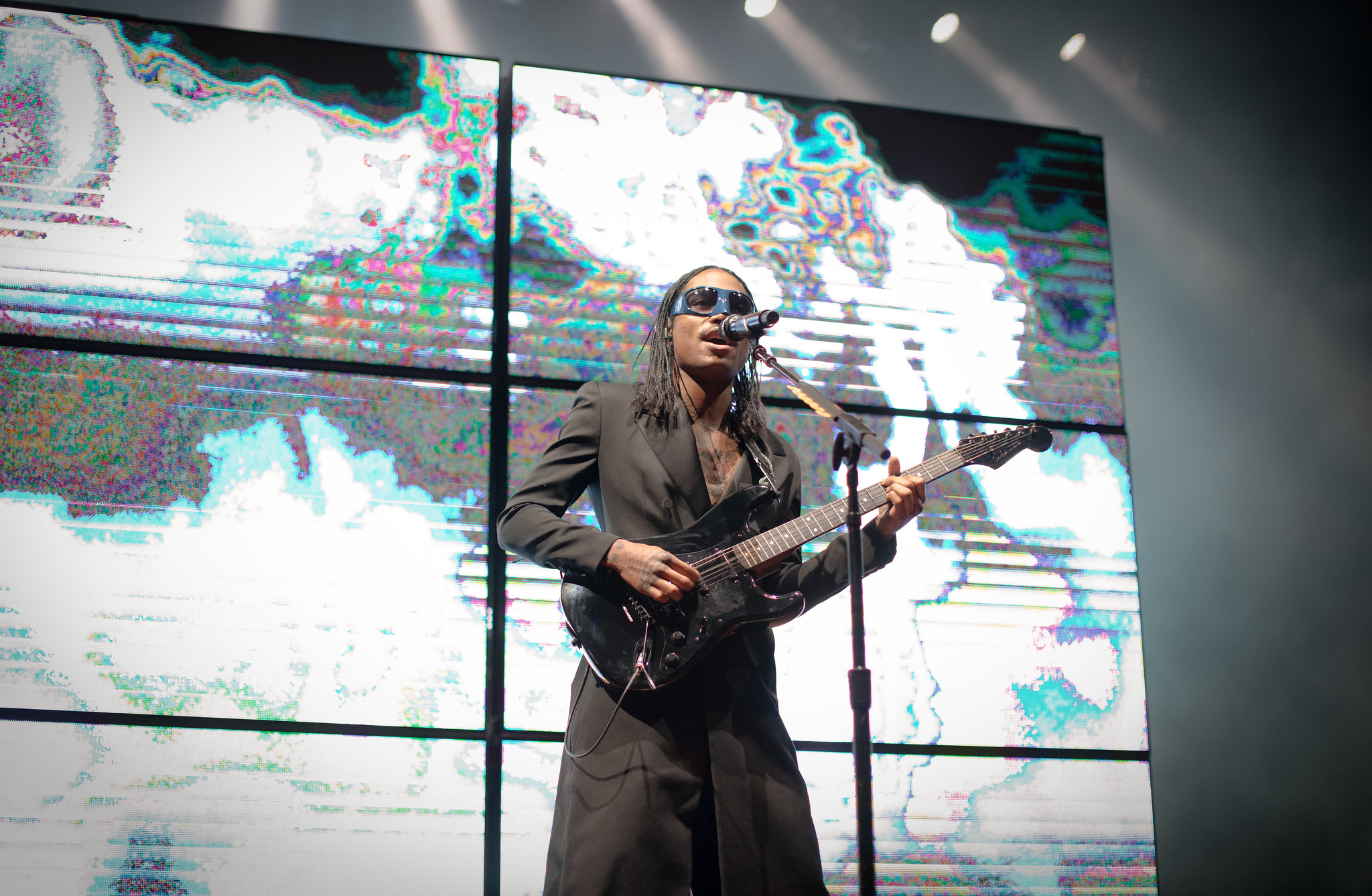 The setting sun aligned beautifully with the intricate stage reconfiguration for Steve Lacy. A colossal image of Lacy appeared on stacked LCD monitors. With his hands snugly tucked in the pockets of his overcoat, the gigantic video of Lacy locked eyes with the eagerly awaiting fans through his iconic wraparound goggles.