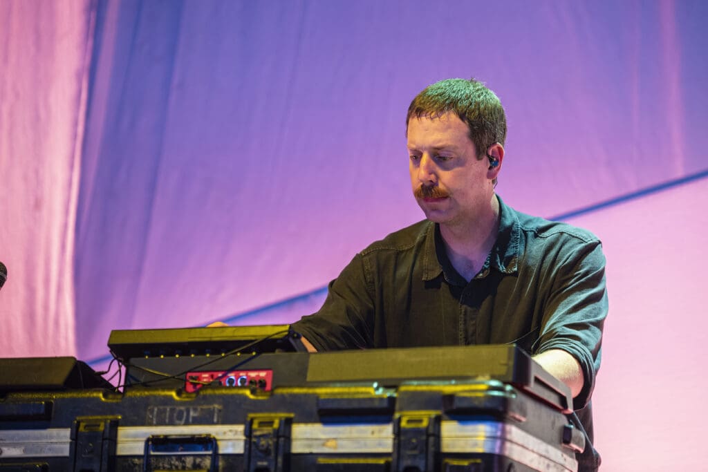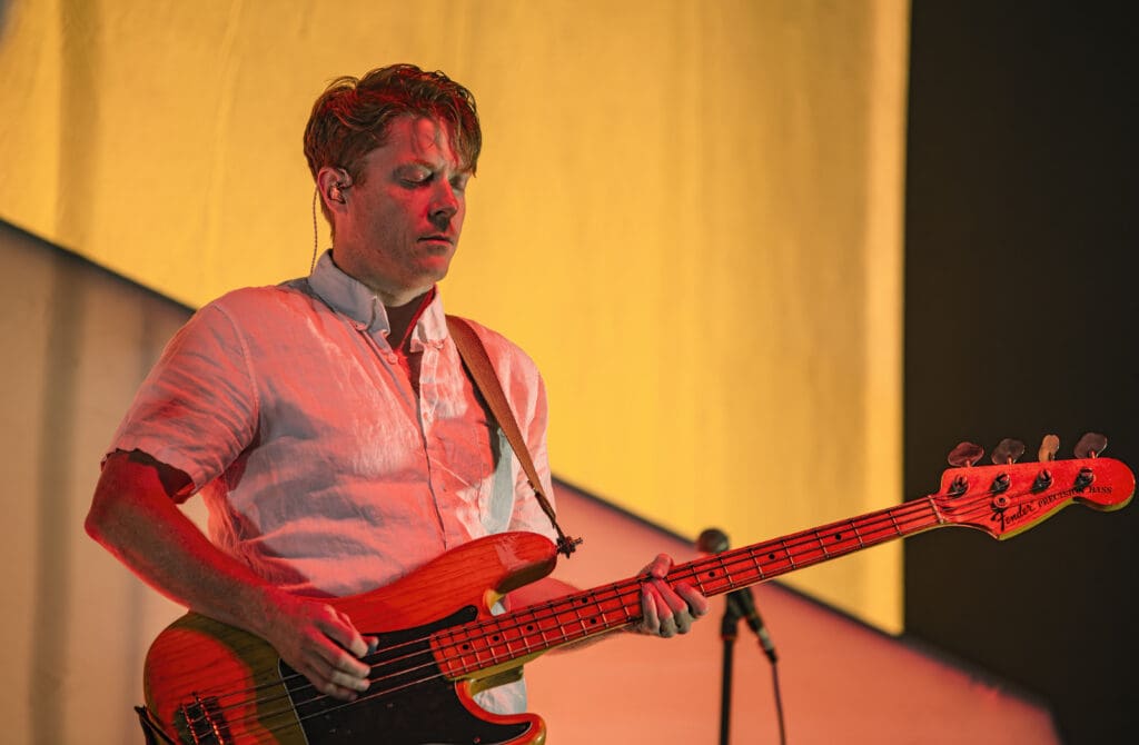 Then it was Baltimore’s own Future Islands who put on a grooving, sweaty set. Frontman, Sam Herring was electric as he seemed to be pulling from an unending tap of energy. Dancing, high kicking, and reaching out to the crowd while that synth-propelled pop by Gerrit Welmers (synths), William Cashion (bass), and Mikey Lowry (drums) pumped out those catchy rhythms.