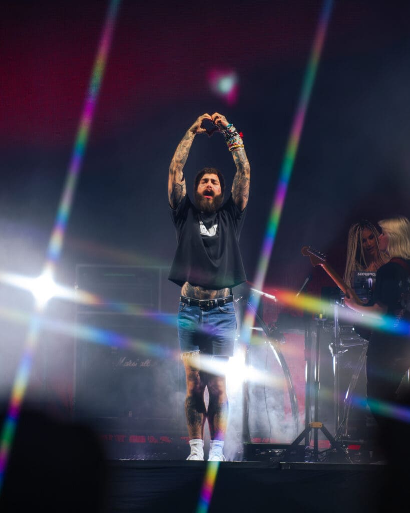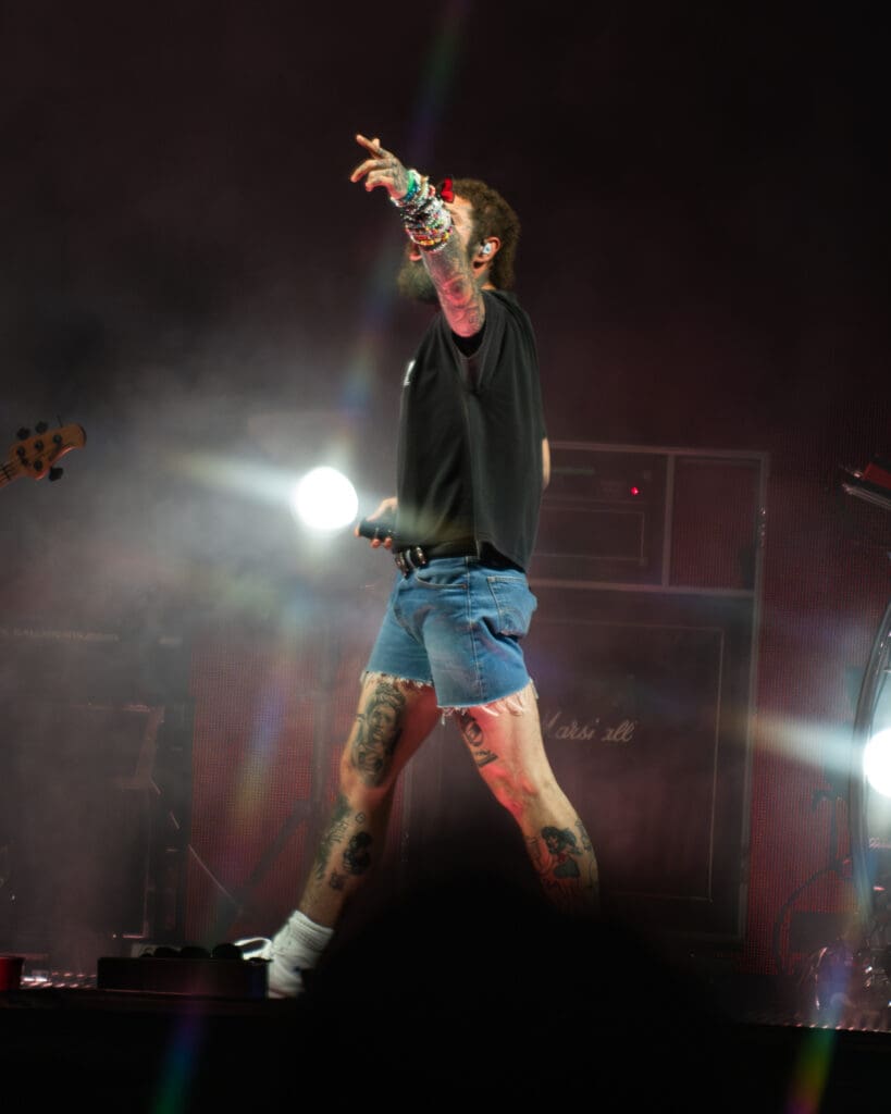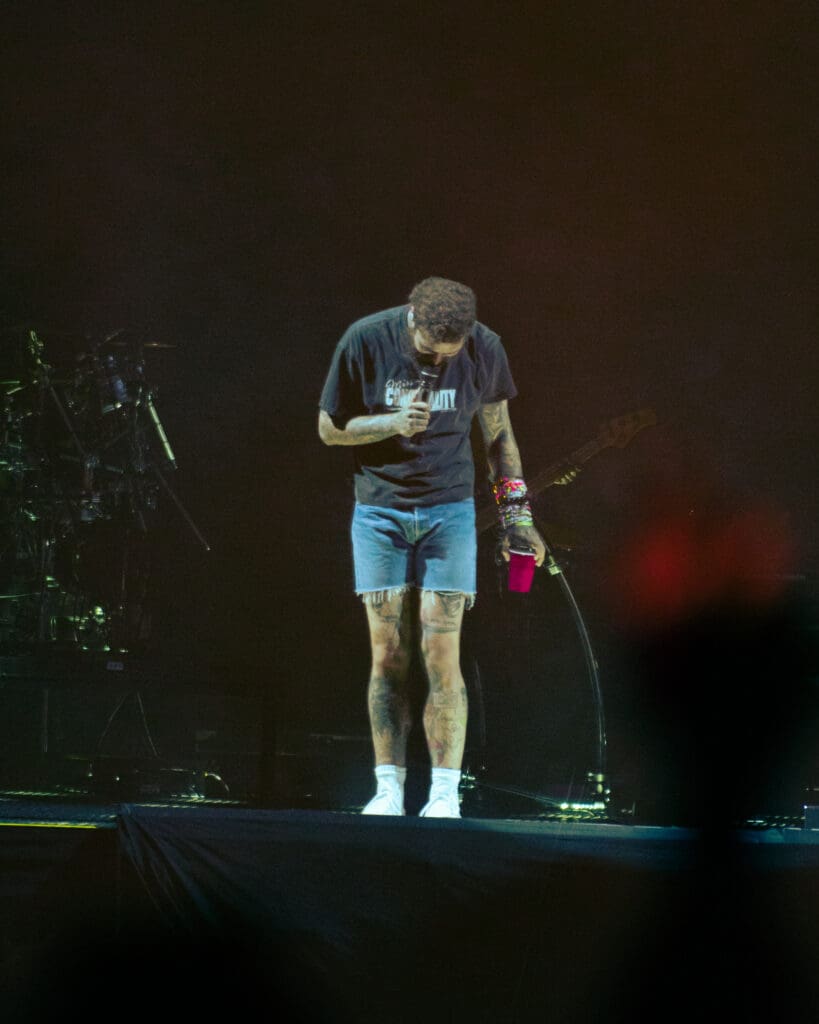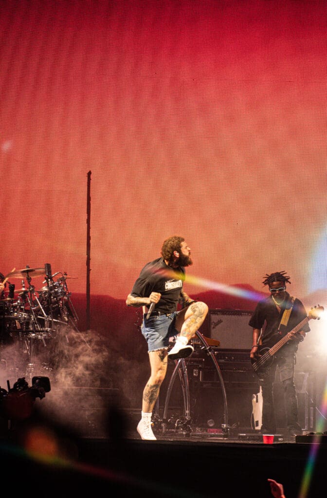 Post opened with bangers like “Better Now, Wow.,” “Psycho,” and more, which lit the crowd up from the beginning. Toward the middle of his set, he played slower songs such as “Feeling Whitney” and “Stay.” He even invited a fan on stage to accompany him on the guitar during “Stay.” He showed his incredibly deep love and appreciation for his fans throughout his set, but this was a perfect example of it. He followed his fan’s lead on guitar, singing the song to her tempo, and encouraging her the whole time as she played for a nearly sold-out 25,000-person capacity venue.