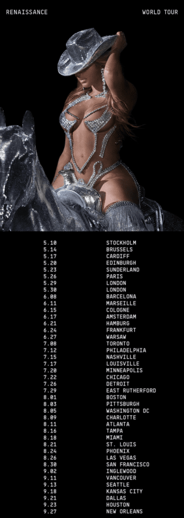Watch the teaser for the North American leg of Beyoncé’s Renaissance Tour on YouTube:
