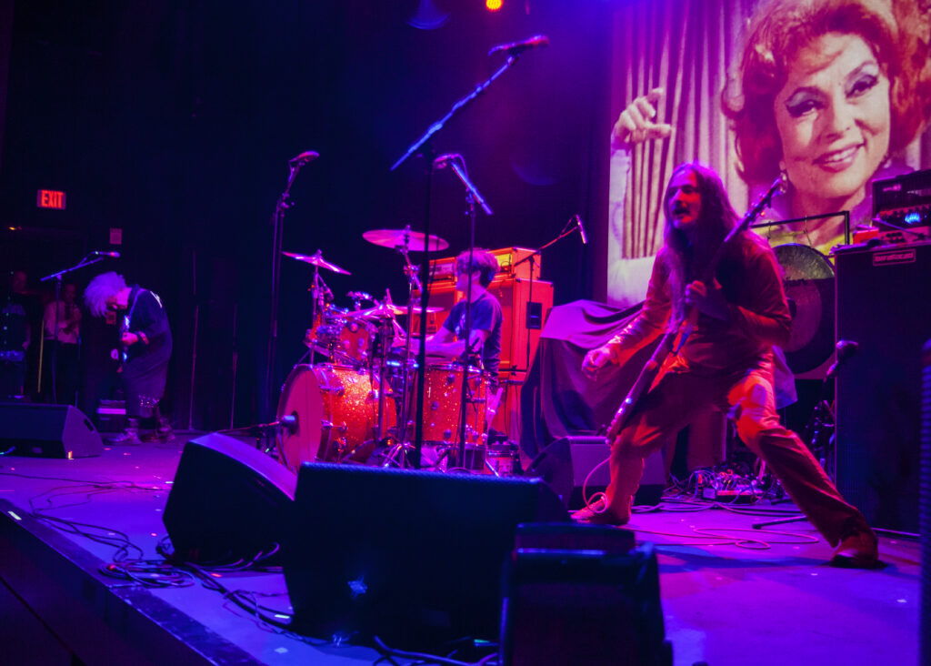 The band emerged as only the Melvins can: Coady Willis in a t-shirt and jeans, bass player Steven McDonald decked out head to toe in red, and founding member and guitarist/singer Buzz Osborne in what appeared to be some kind of wizard’s robe. Even more striking than Buzz’s clothes is his trademark hair. What was not expected was the band coming out to Ah-Ha’s Take On Me in front of an enormous projection of Endora from ’60s TV sitcom, Bewitched. (Editor: Actress Agnes Moorehead!)