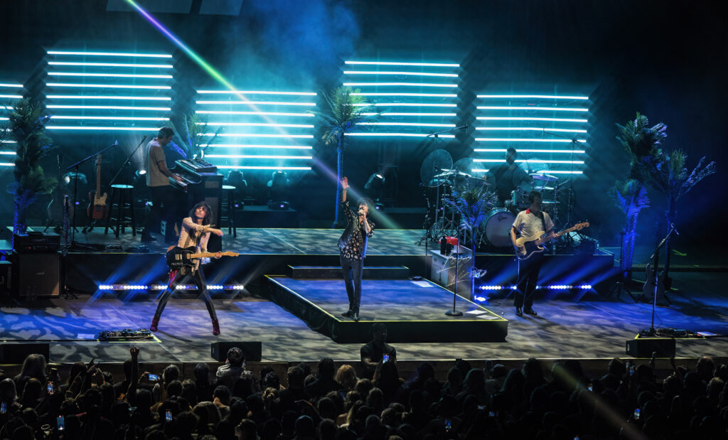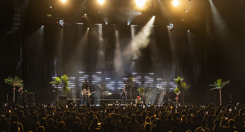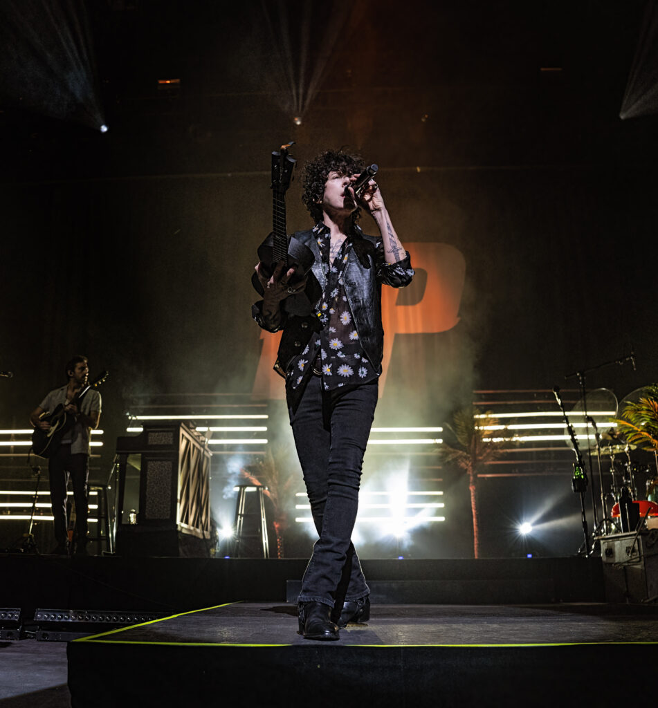 Festooned with palm trees and neon lights, LP took to the stage as Frank Sinatra’s “My Way” played over the sound system. It was a fitting walk-on tune as LP is known for paving their own way and being original — whether it be writing or performing. And as the band started on “Golden” this crowd was ready as LP came out swinging.
