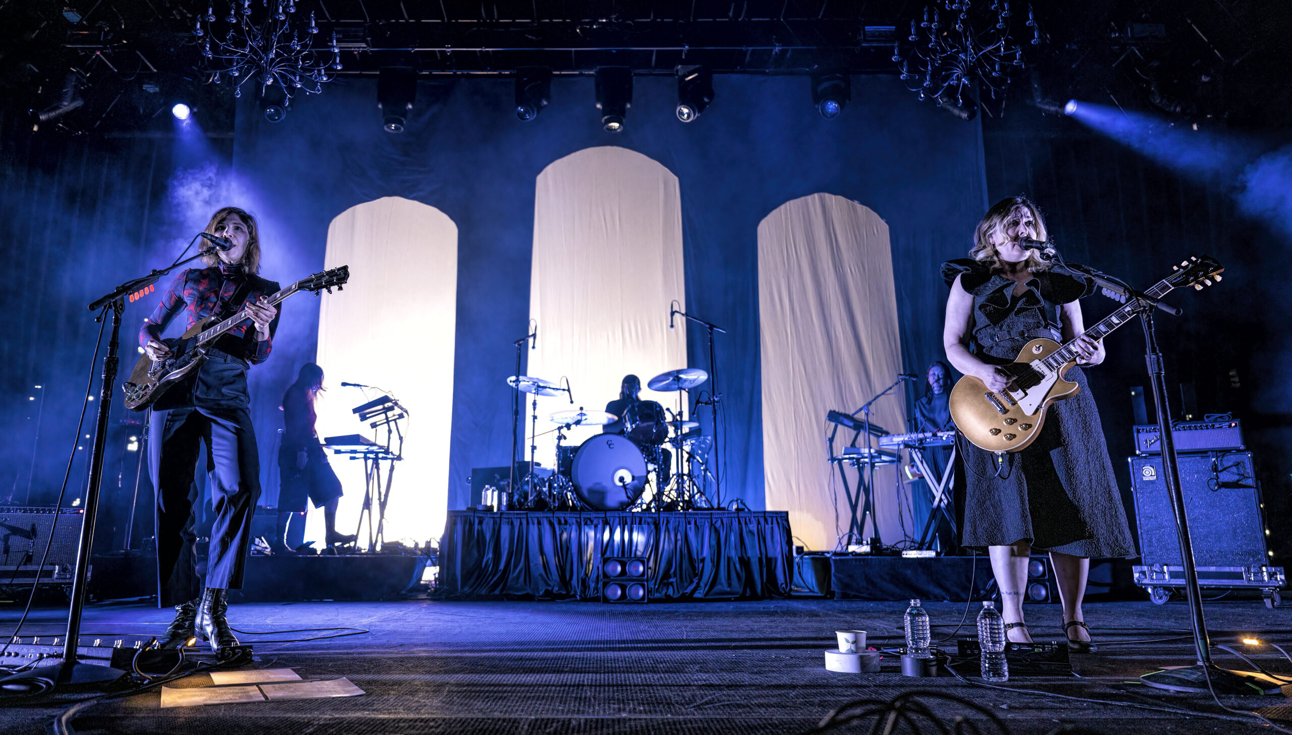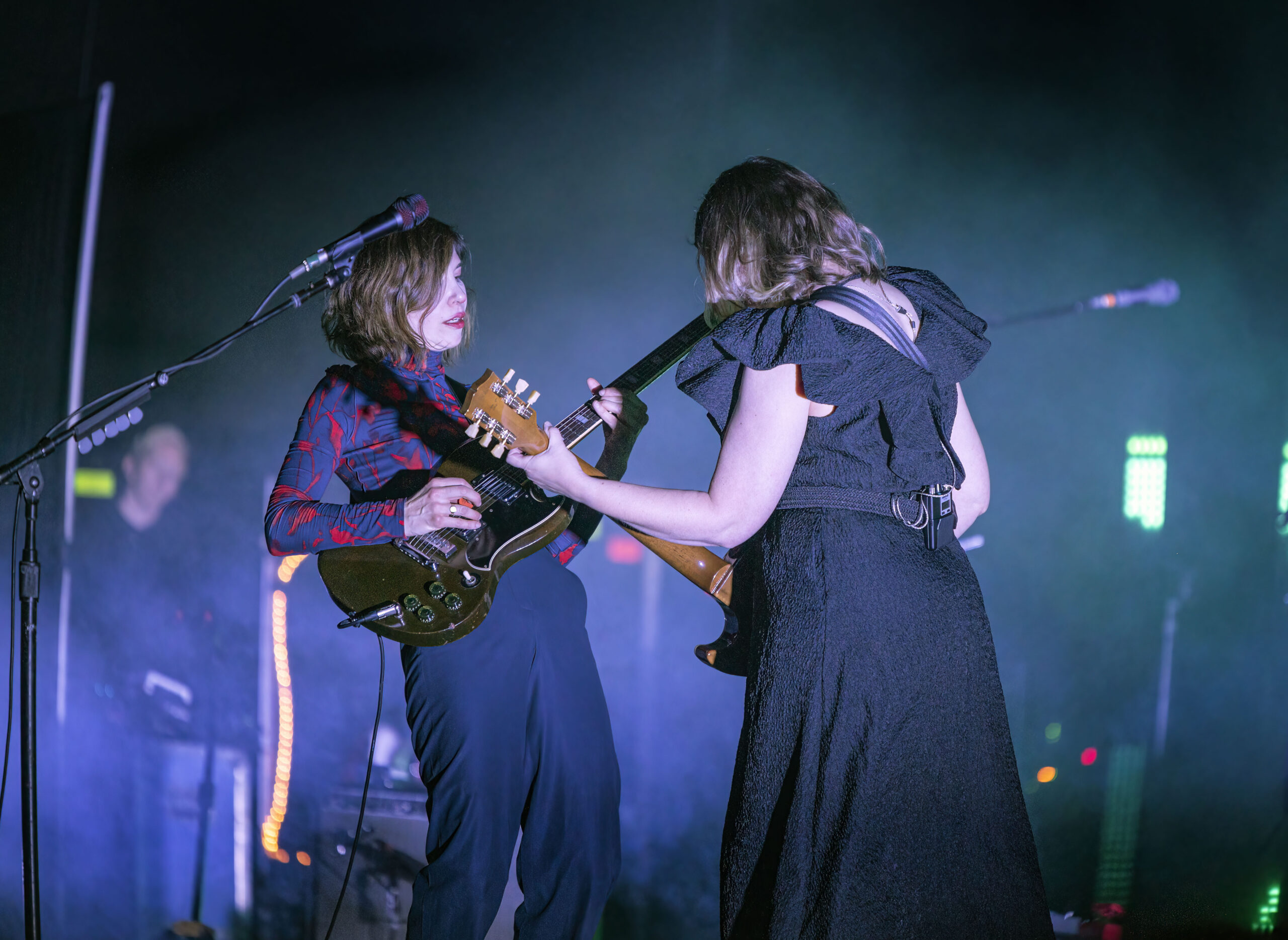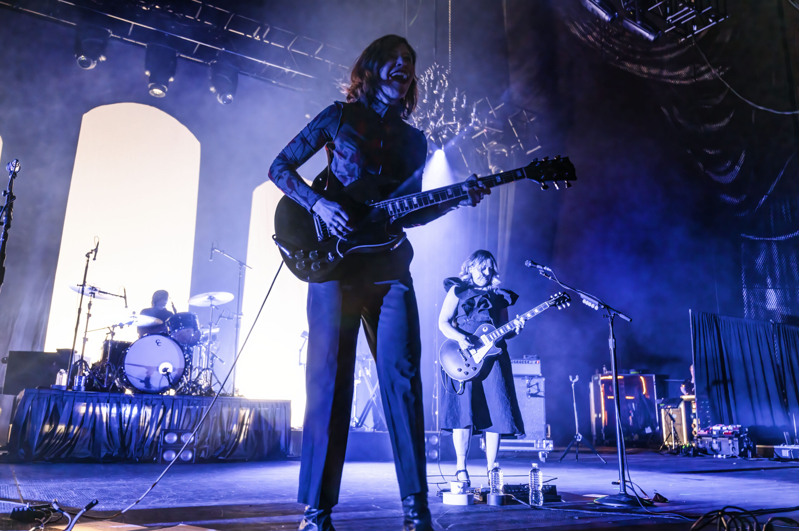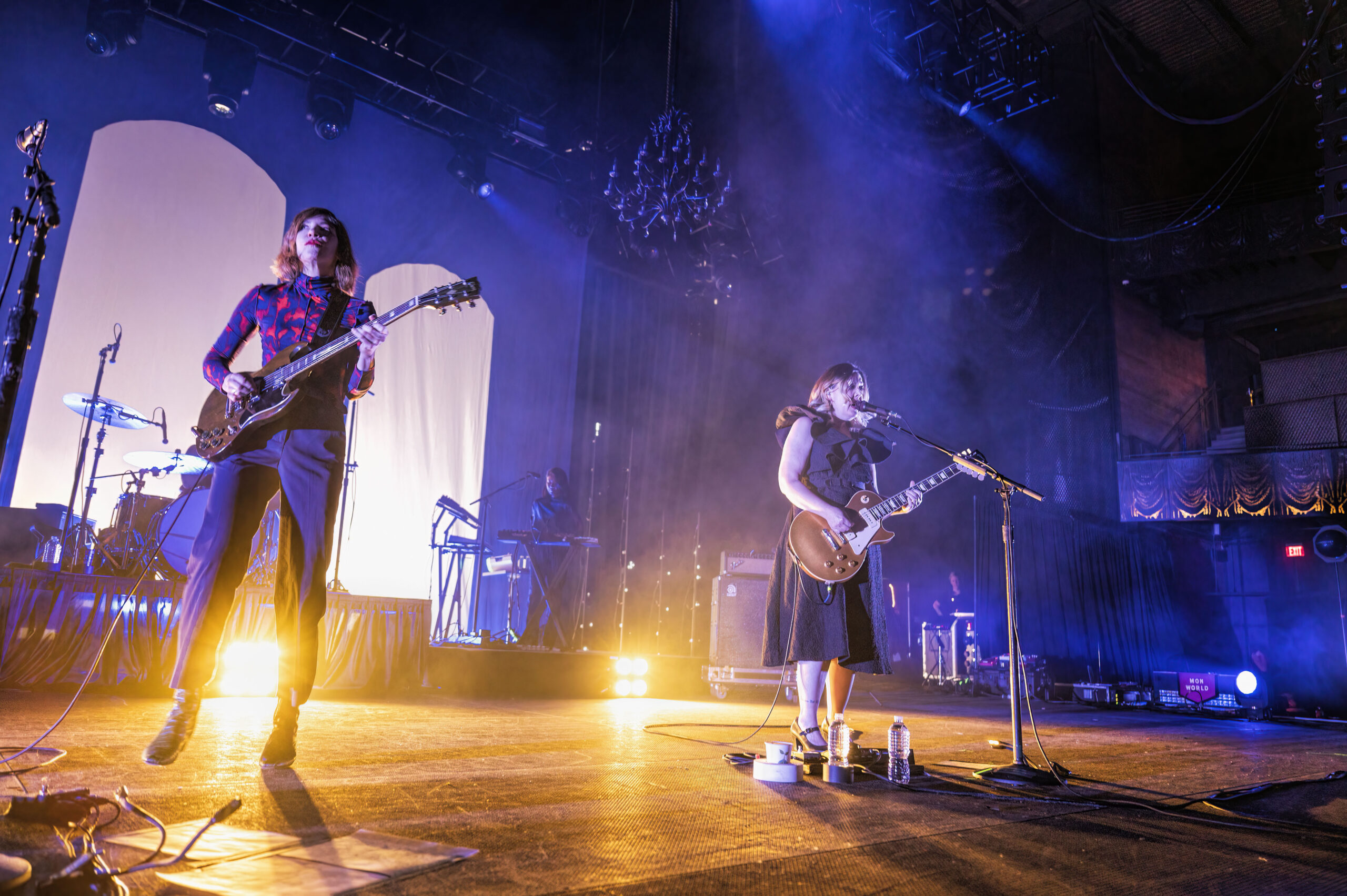 As the lights dimmed, and Sleater-Kinney took the stage silhouetted by a church-like backdrop. Amidst the strobe lights, Brownstein and Tucker took center stage as their twin guitars kicked off new songs, “Hell” and “Needlessly Wild” from Little Rope.