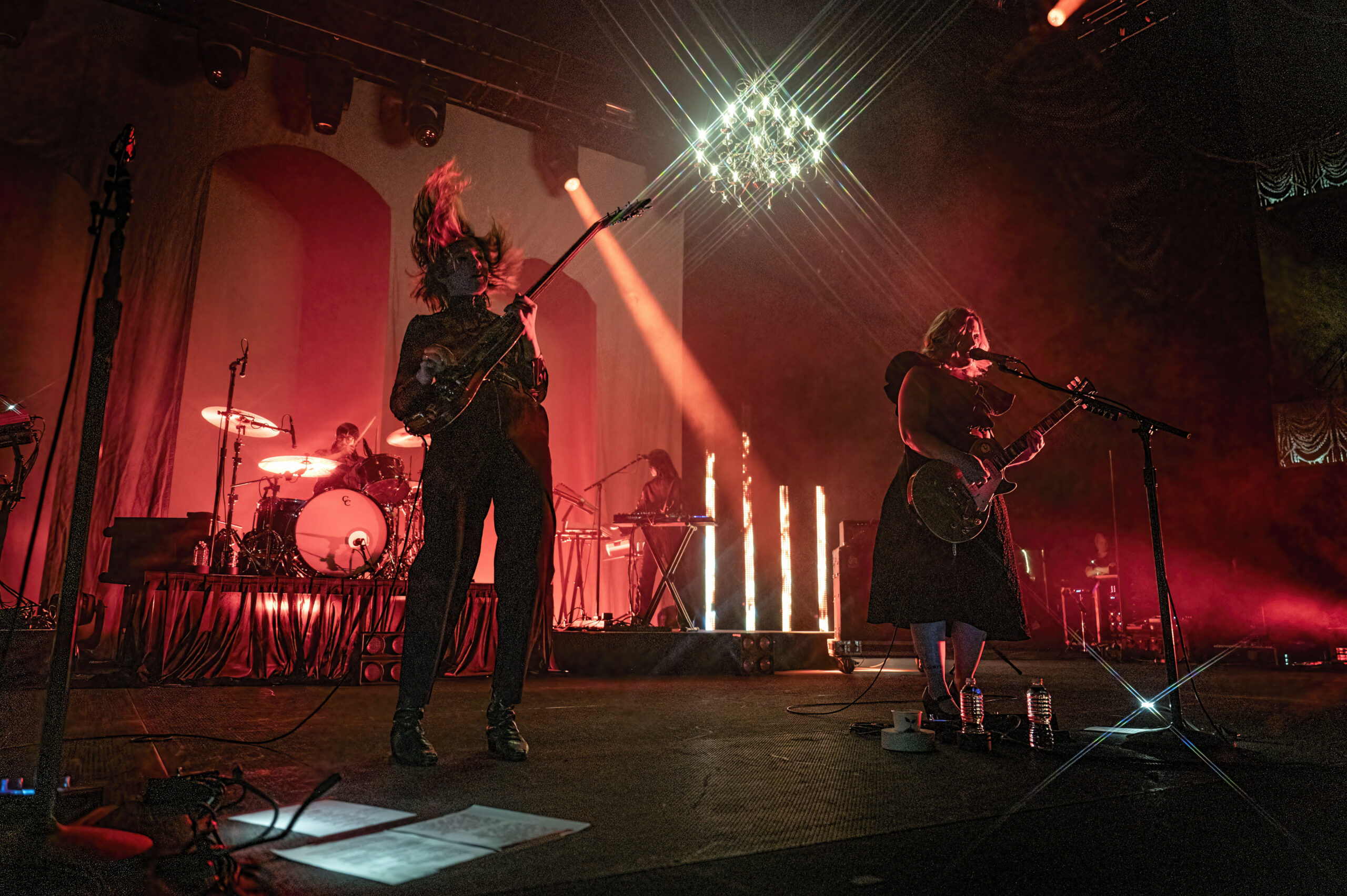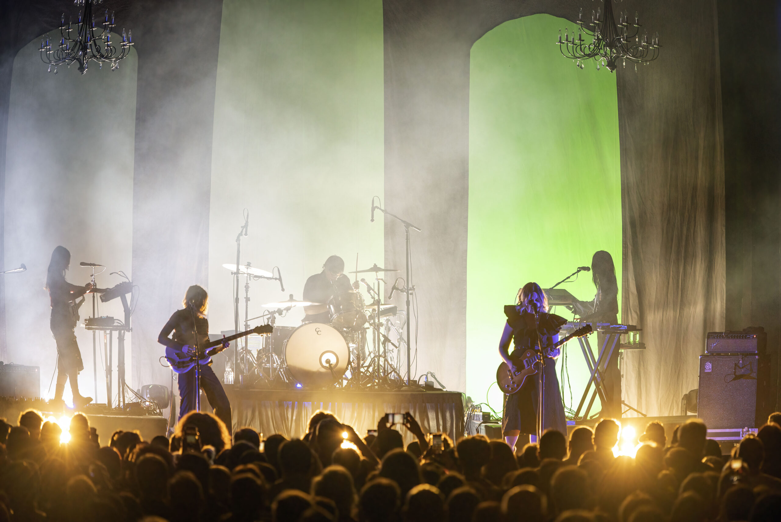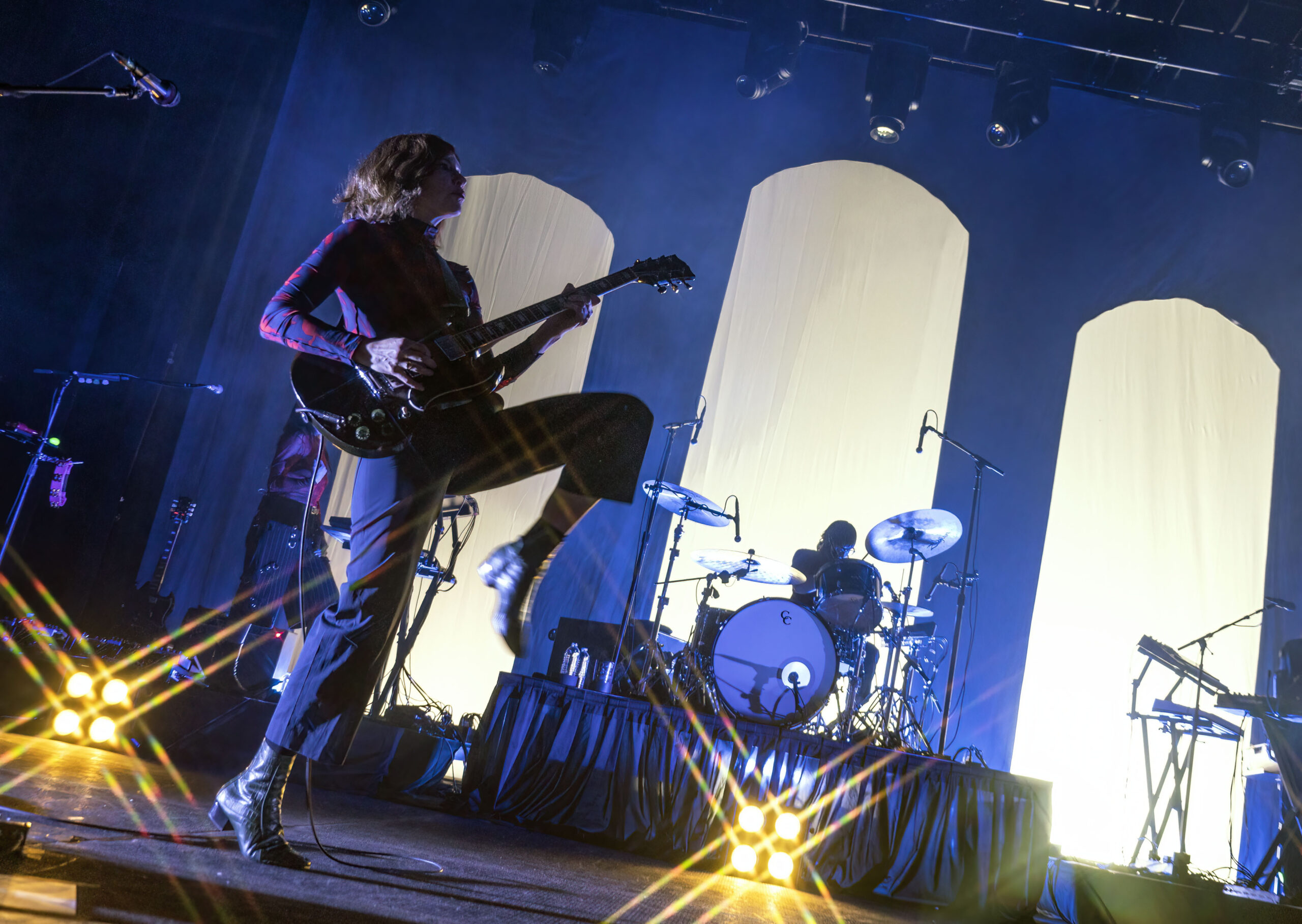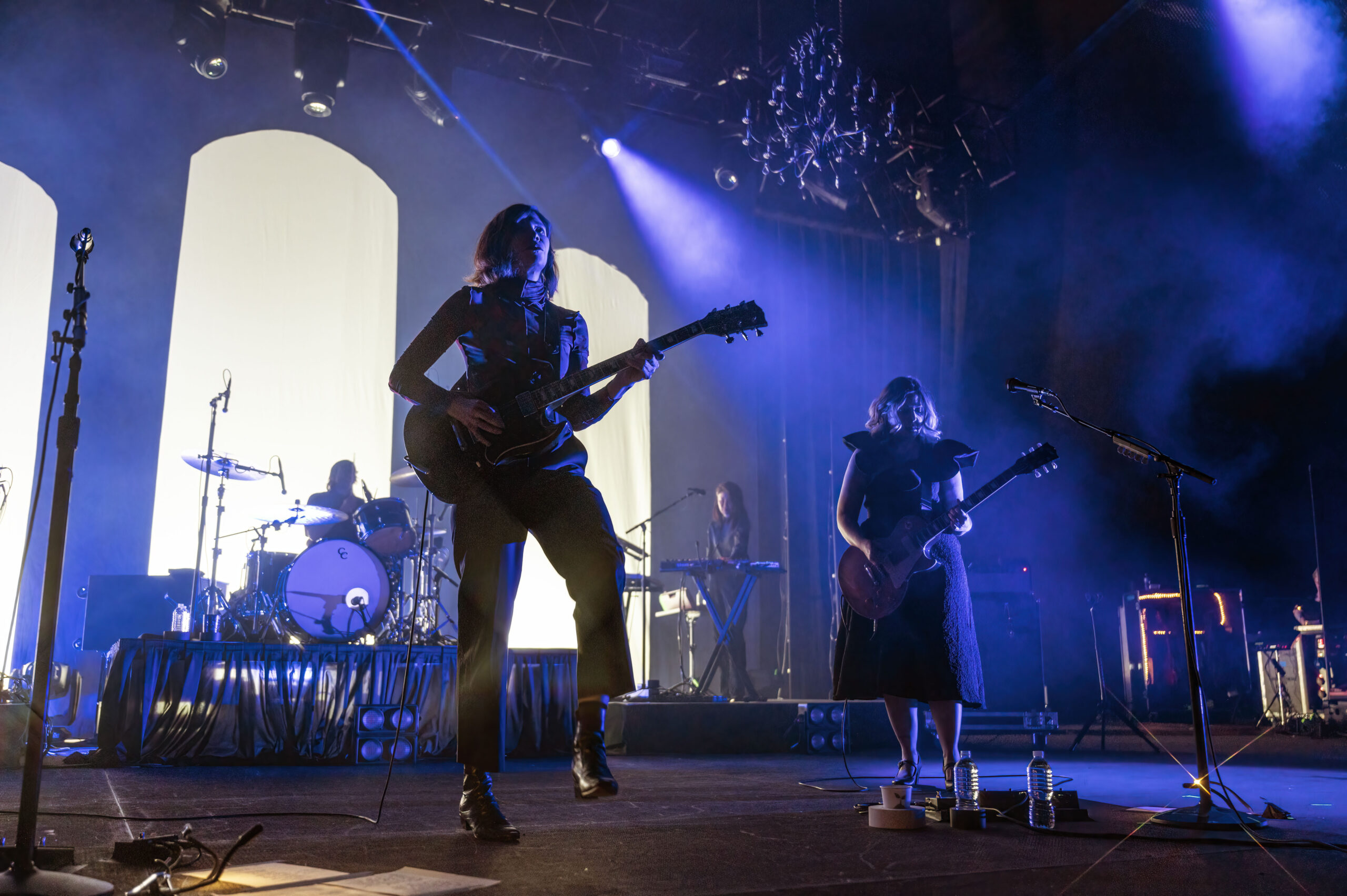 As the lights dimmed, and Sleater-Kinney took the stage silhouetted by a church-like backdrop. Amidst the strobe lights, Brownstein and Tucker took center stage as their twin guitars kicked off new songs, “Hell” and “Needlessly Wild” from Little Rope.