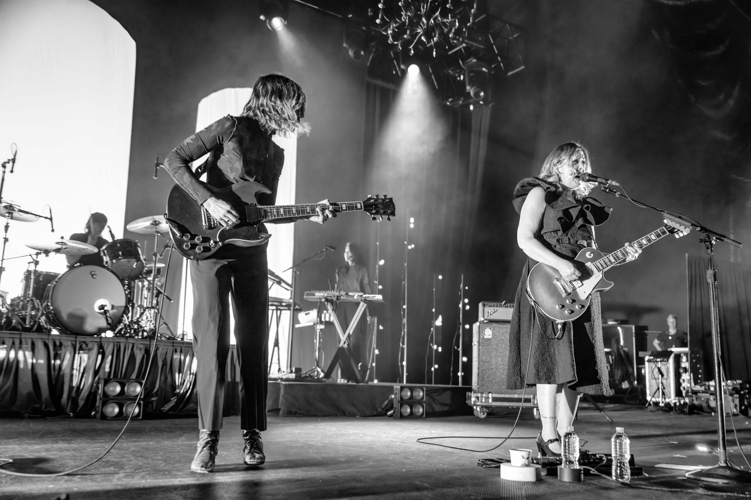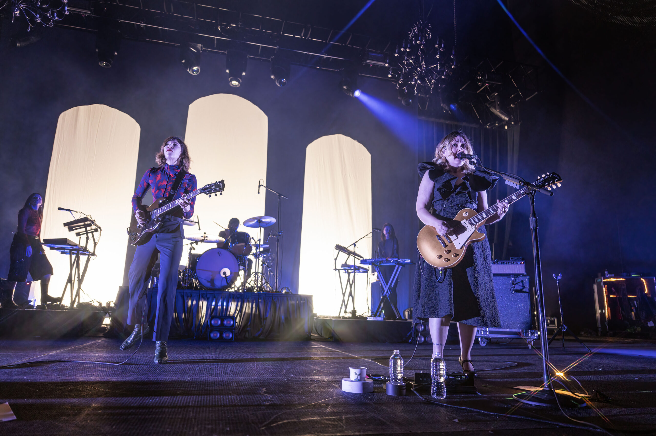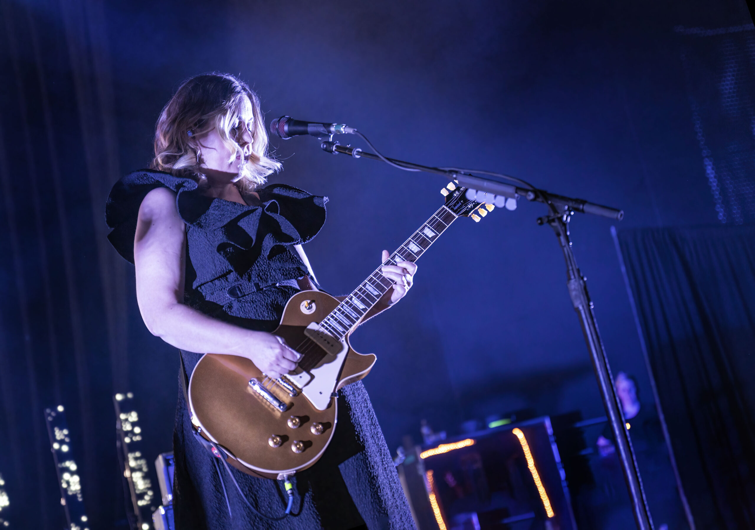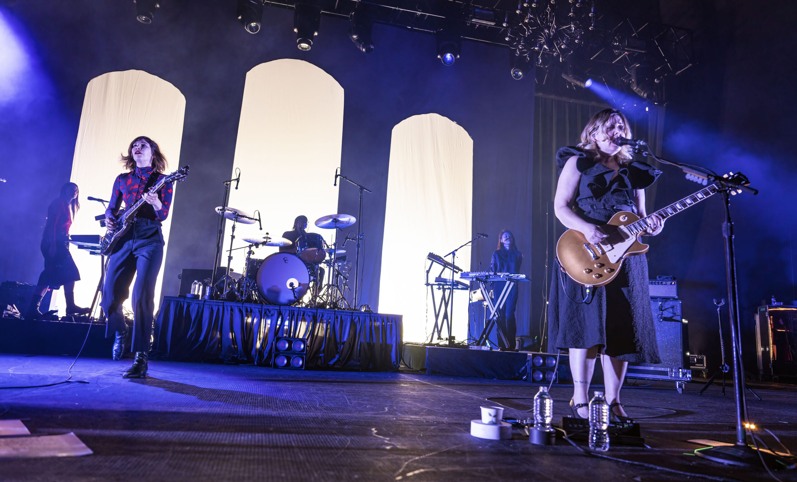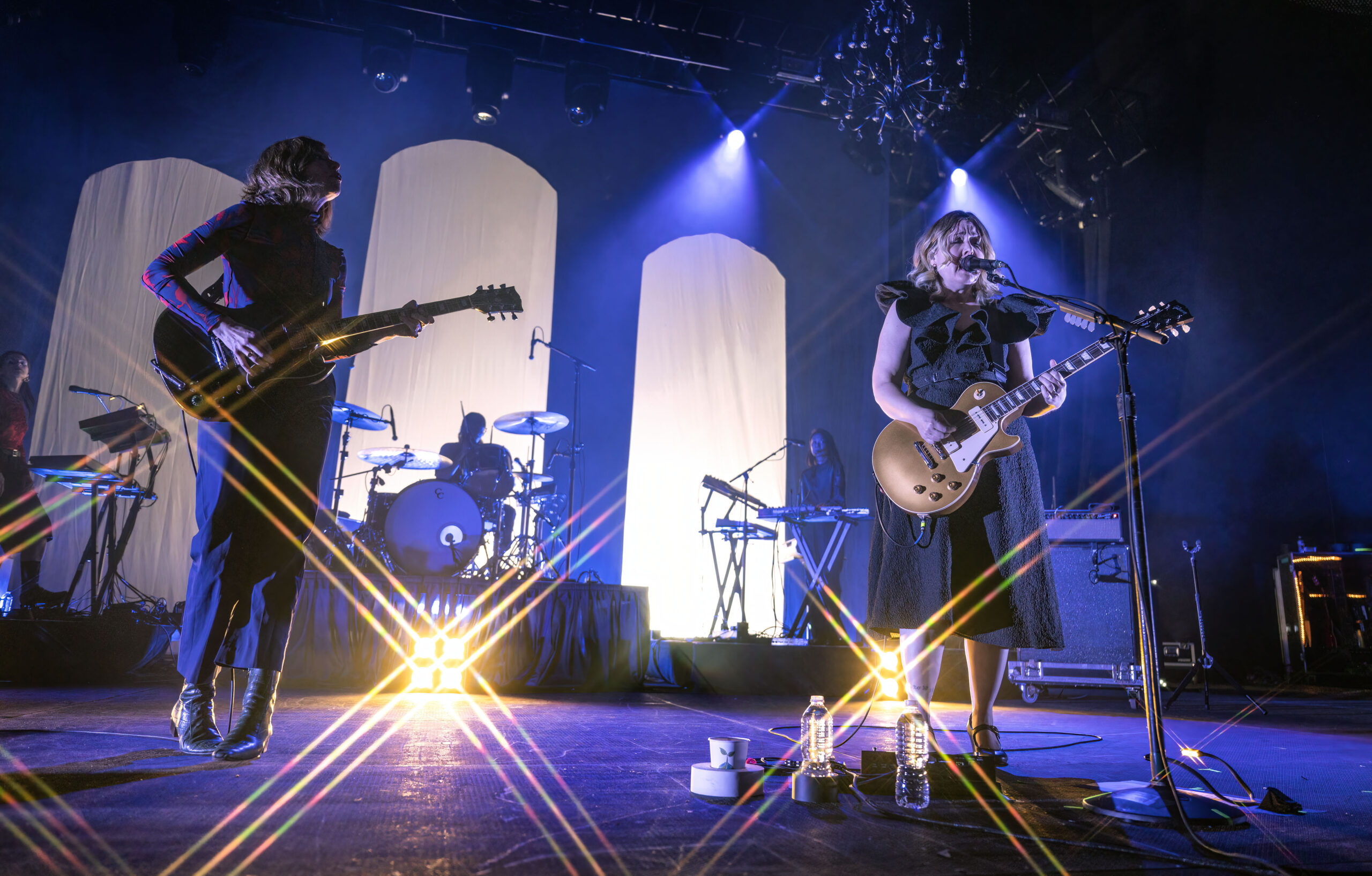 As the lights dimmed, and Sleater-Kinney took the stage silhouetted by a church-like backdrop. Amidst the strobe lights, Brownstein and Tucker took center stage as their twin guitars kicked off new songs, “Hell” and “Needlessly Wild” from Little Rope.
