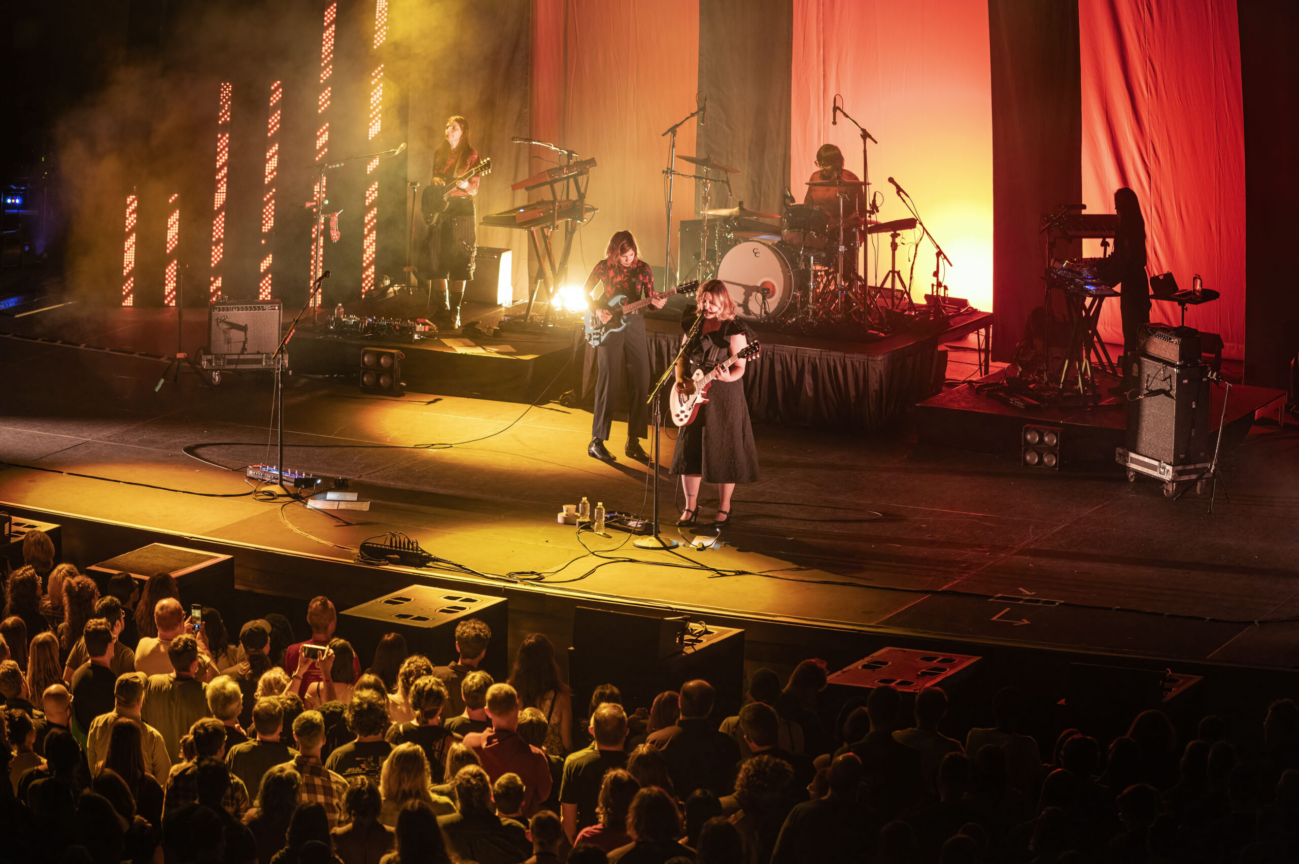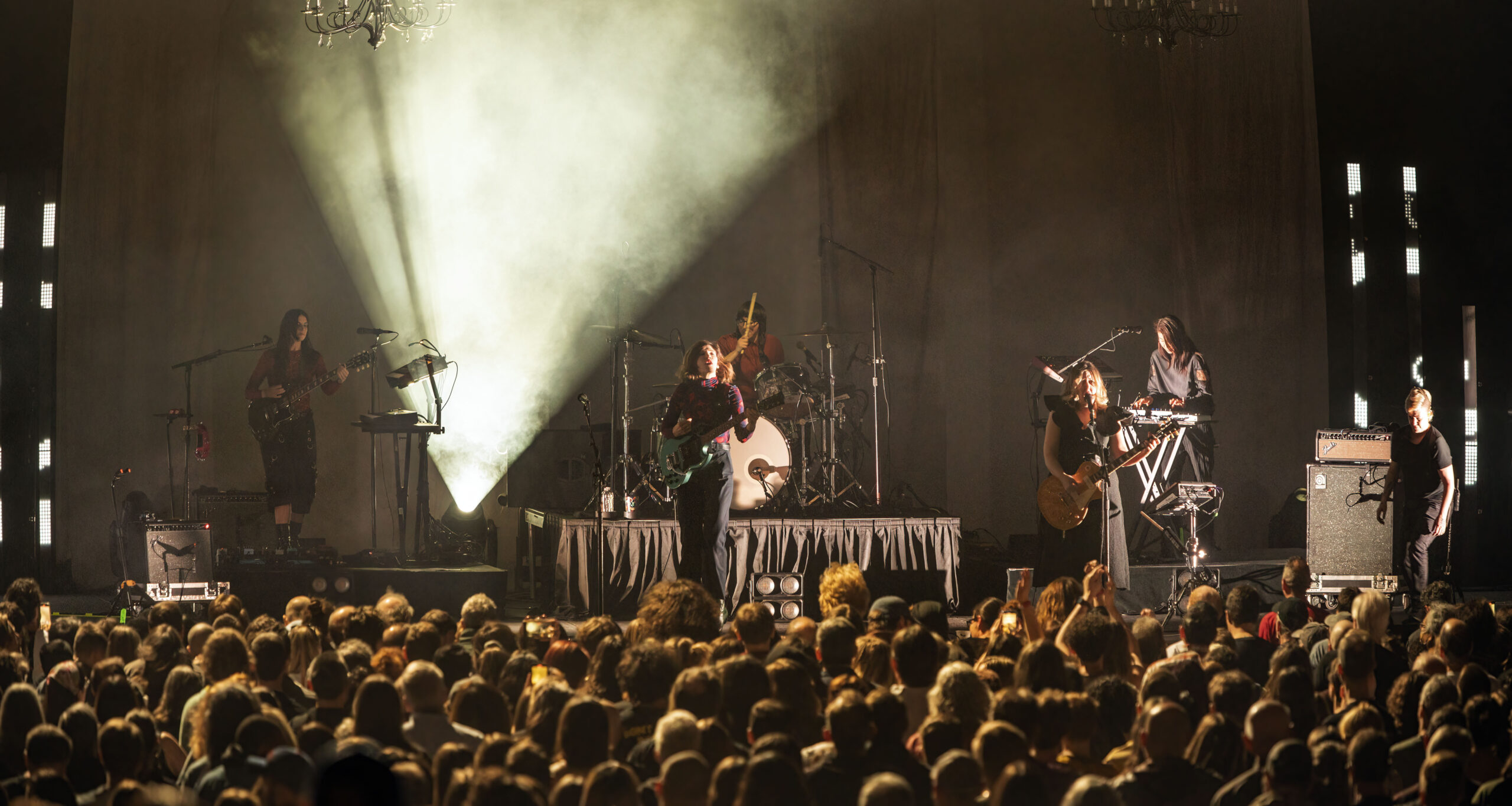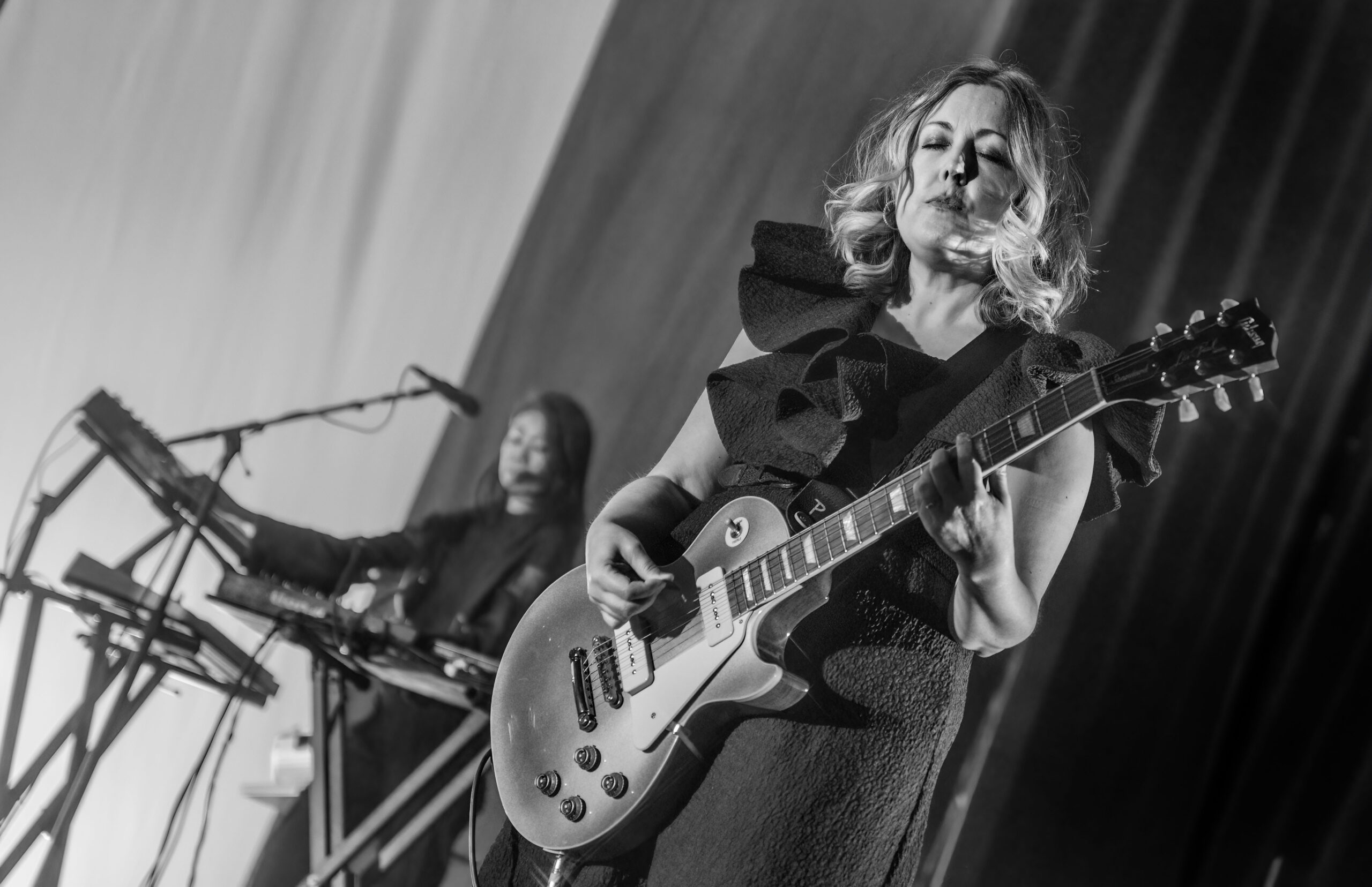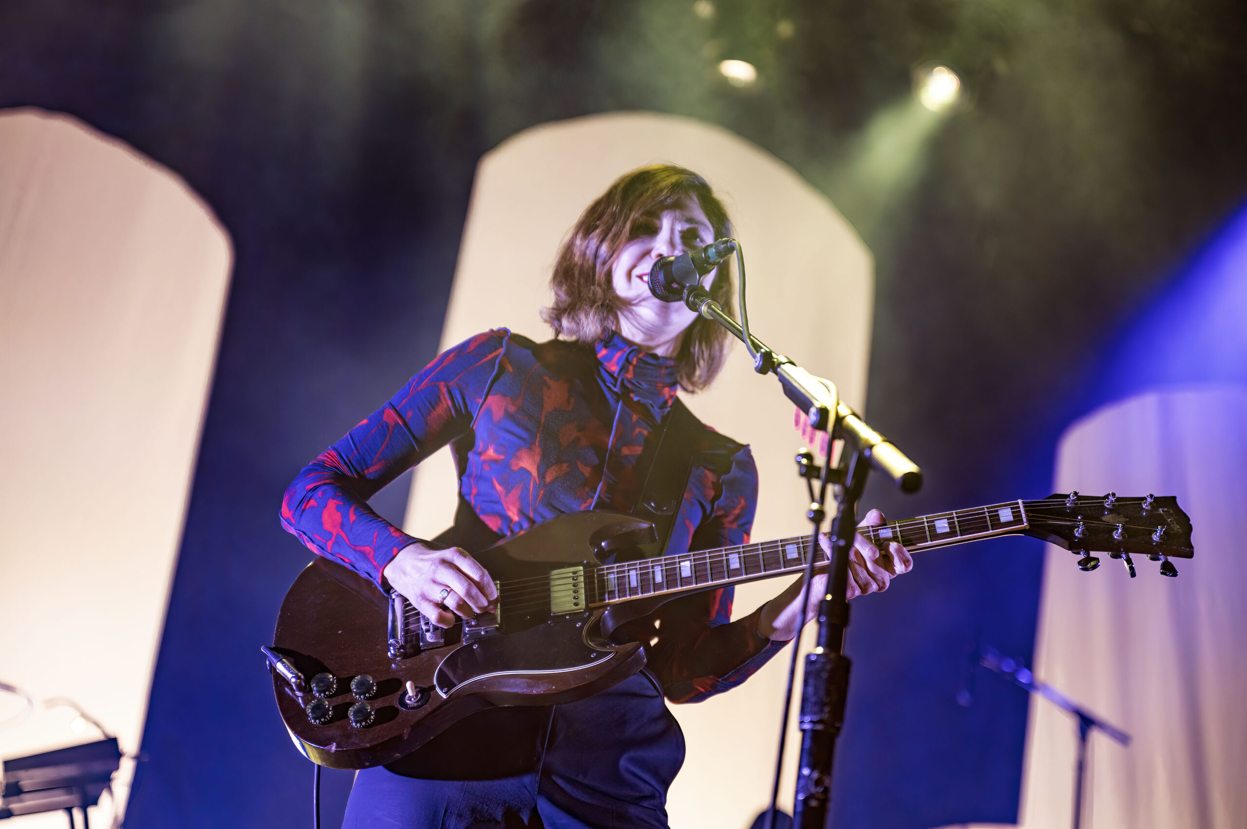As the lights dimmed, and Sleater-Kinney took the stage silhouetted by a church-like backdrop. Amidst the strobe lights, Brownstein and Tucker took center stage as their twin guitars kicked off new songs, “Hell” and “Needlessly Wild” from Little Rope.