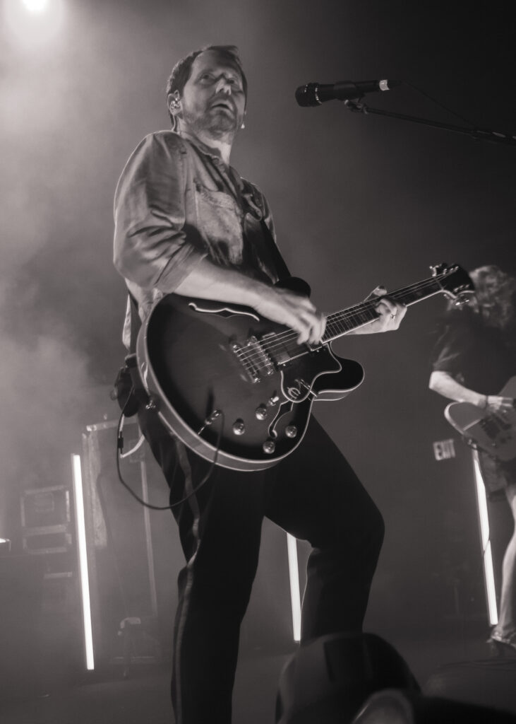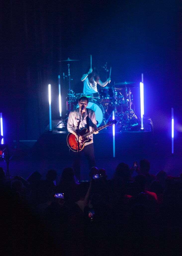 When it came time for Silversun Pickups to emerge, there was such a buzz in the crowd! They opened up with the song “Growing Old Is Getting Old” from their sophomore release, Swoon. The song starts off with bass and drums and builds as it goes. Not only did it build but the band extended the jam for a good bit, really using the song to get warmed up. They played under a pretty harsh red light that didn’t change much until the second song, “Sticks and Stones” from 2022’s Physical Thrills album.