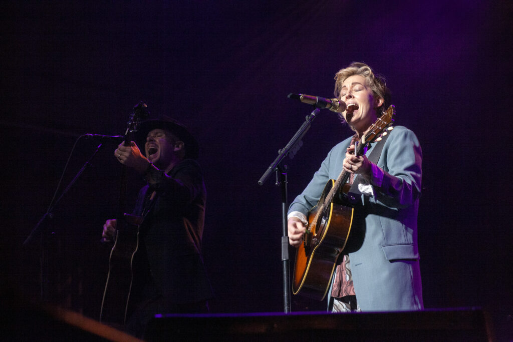 There was also no opening act listed, but we were surprised when Brandi’s bandmates, Tim and Phil Hanseroth came out to open the show with their first single (which was available when the clock struck twelve that night) and several other songs they had written for an potential upcoming Hanseroth Twins album. They also talked about the show honoring Elton John and Bernie Taupin. One of their favorite memories of the event was when Metallica walked by so close they could smell them. That drew a lot of laughter as they started their last song. The duo played for about 25 minutes before departing the stage temporarily.