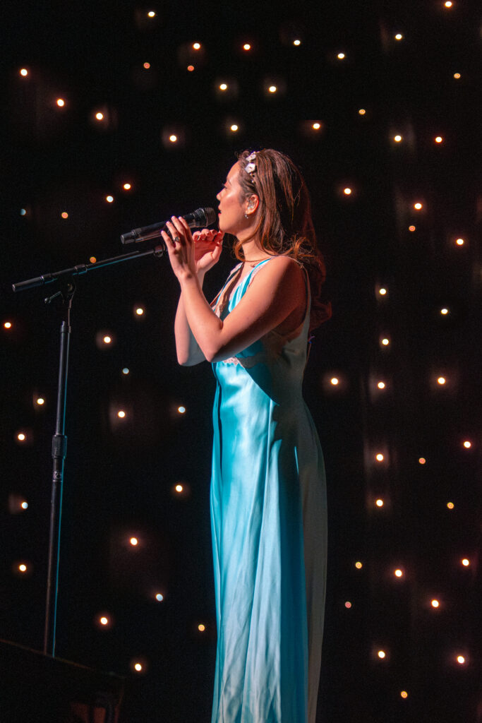 On April 25, the fully seated show hosted a sold-out crowd of approximately 3,000 people, all of whom were eagerly anticipating Laufey’s arrival on stage. The energy in the room was collectively beyond enthusiastic. A photo-op was set up in the back near the merch stand where concert-goers could take photos on an aesthetically built stage with a silky backdrop, decorated with hanging letters reading “Laufey Land, The Goddess Tour.” The peaceful yet thrilled crowd created such a unique concert experience, but one that absolutely matched Laufey and her music.