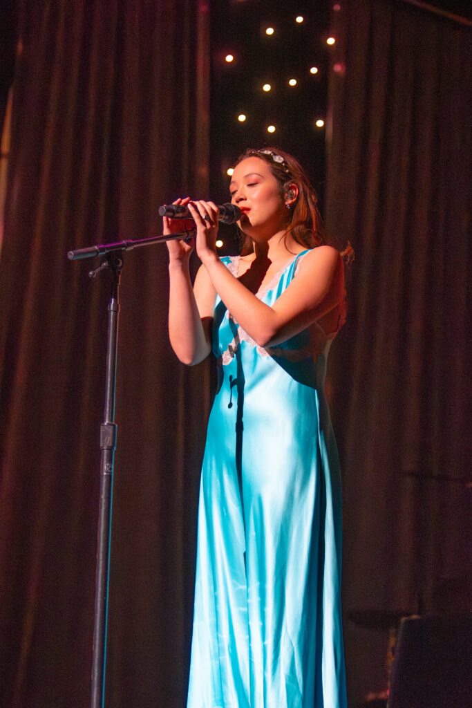 On April 25, the fully seated show hosted a sold-out crowd of approximately 3,000 people, all of whom were eagerly anticipating Laufey’s arrival on stage. The energy in the room was collectively beyond enthusiastic. A photo-op was set up in the back near the merch stand where concert-goers could take photos on an aesthetically built stage with a silky backdrop, decorated with hanging letters reading “Laufey Land, The Goddess Tour.” The peaceful yet thrilled crowd created such a unique concert experience, but one that absolutely matched Laufey and her music.
