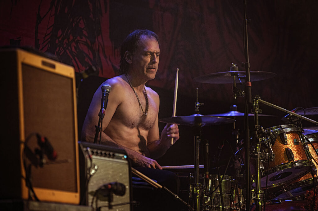 Witnessing this band, it has to be remarked what a powerhouse is drummer Sebastian Thomson. Thomson — whose CV includes the Bethesda band, Trans Am — started “Beneath the Rose,” another heavy song from Stone, with am impressive drum solo.