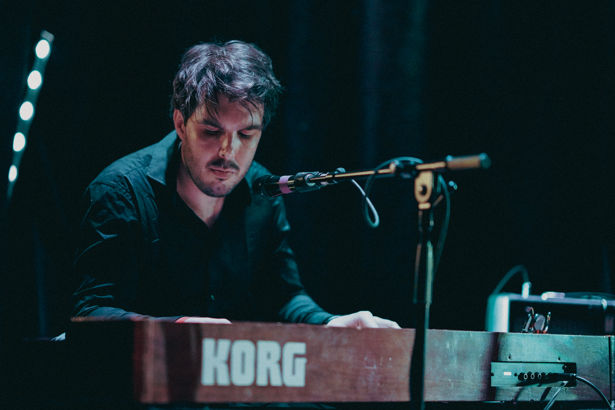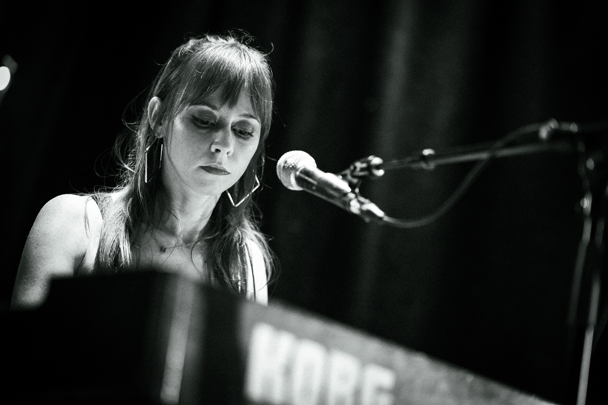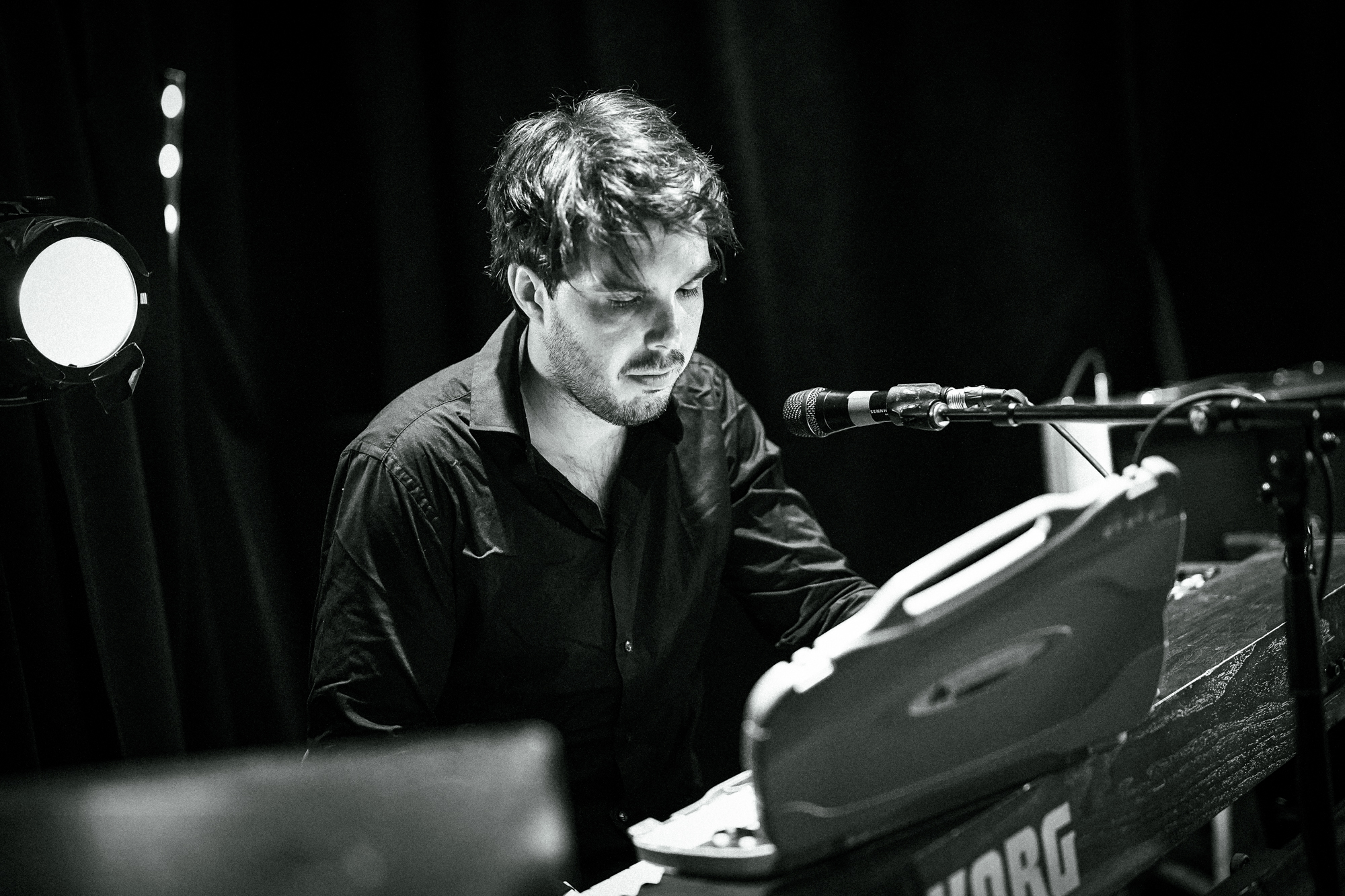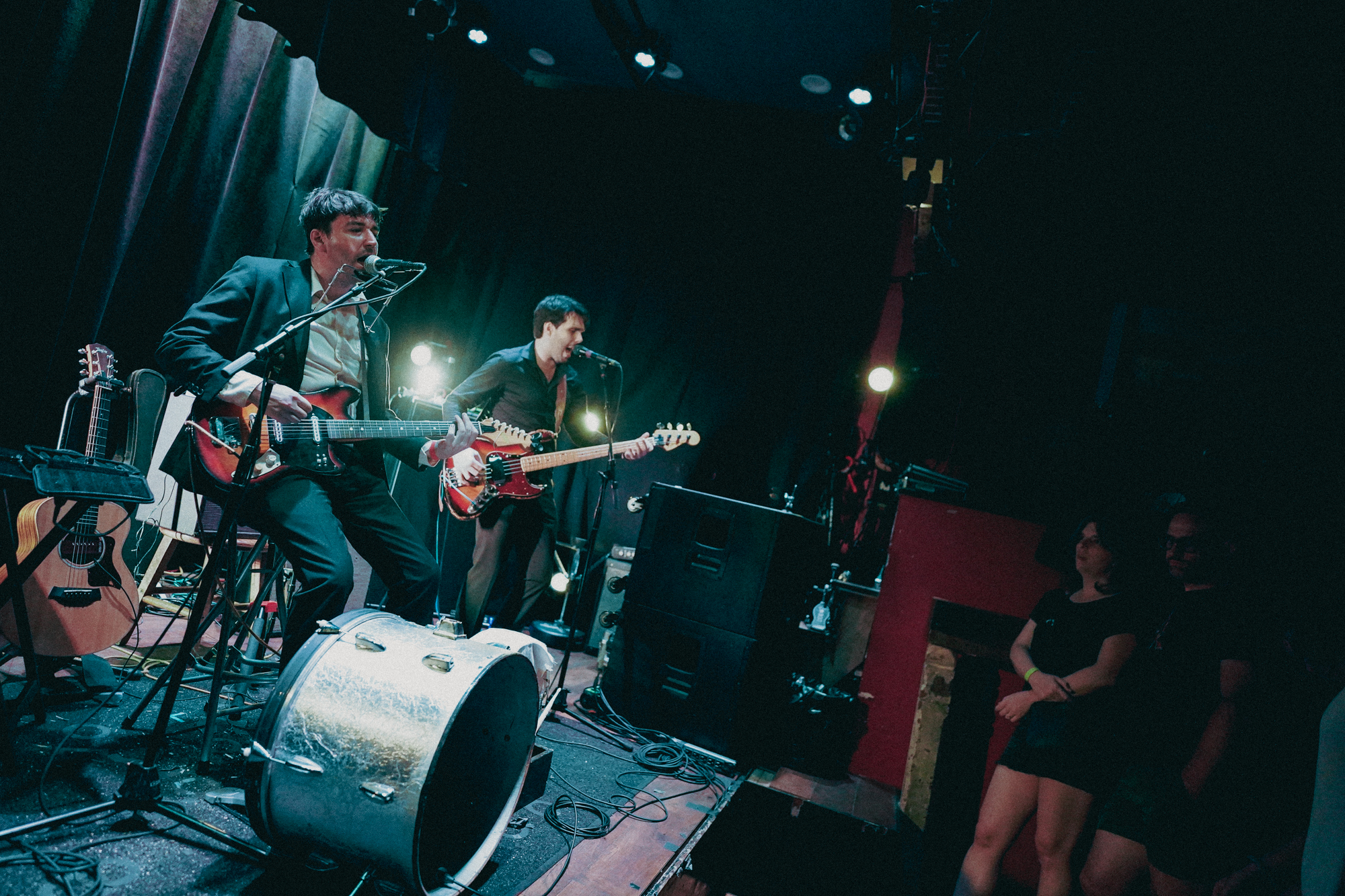 On the latest record, Thompson plays both rhythm and lead guitar, and last Wednesday at Pie Shop, he switched from electric to acoustic and back again. He used touch and subtlety, and his arrangements featured sparkling chords and tense, divergent riffs that bottomed out to enrich the moodiness of each track. And he oversaw percussion duties as well, pounding a pair of kick drums positioned at his feet and even adding a third instrument to his mix.