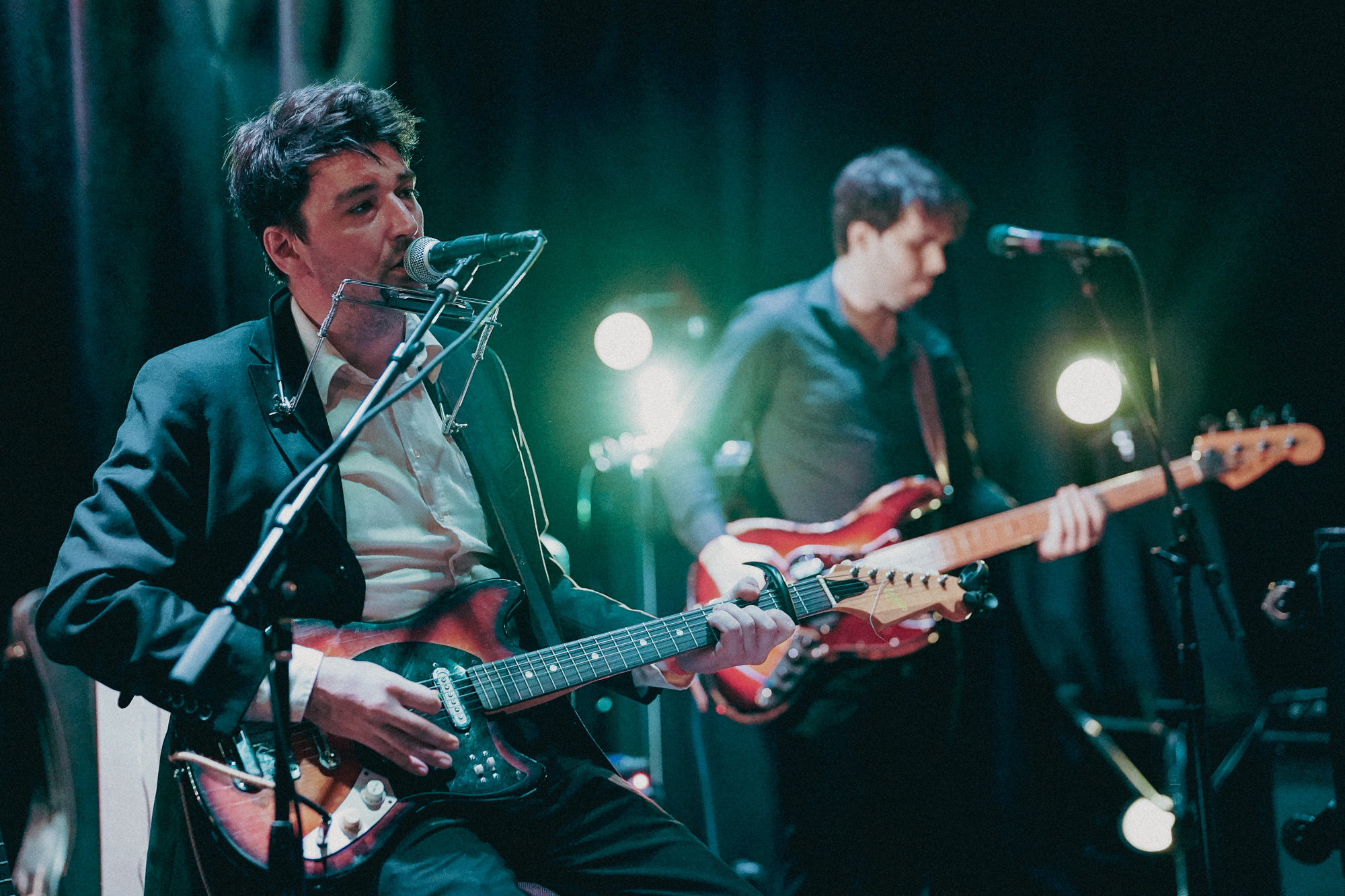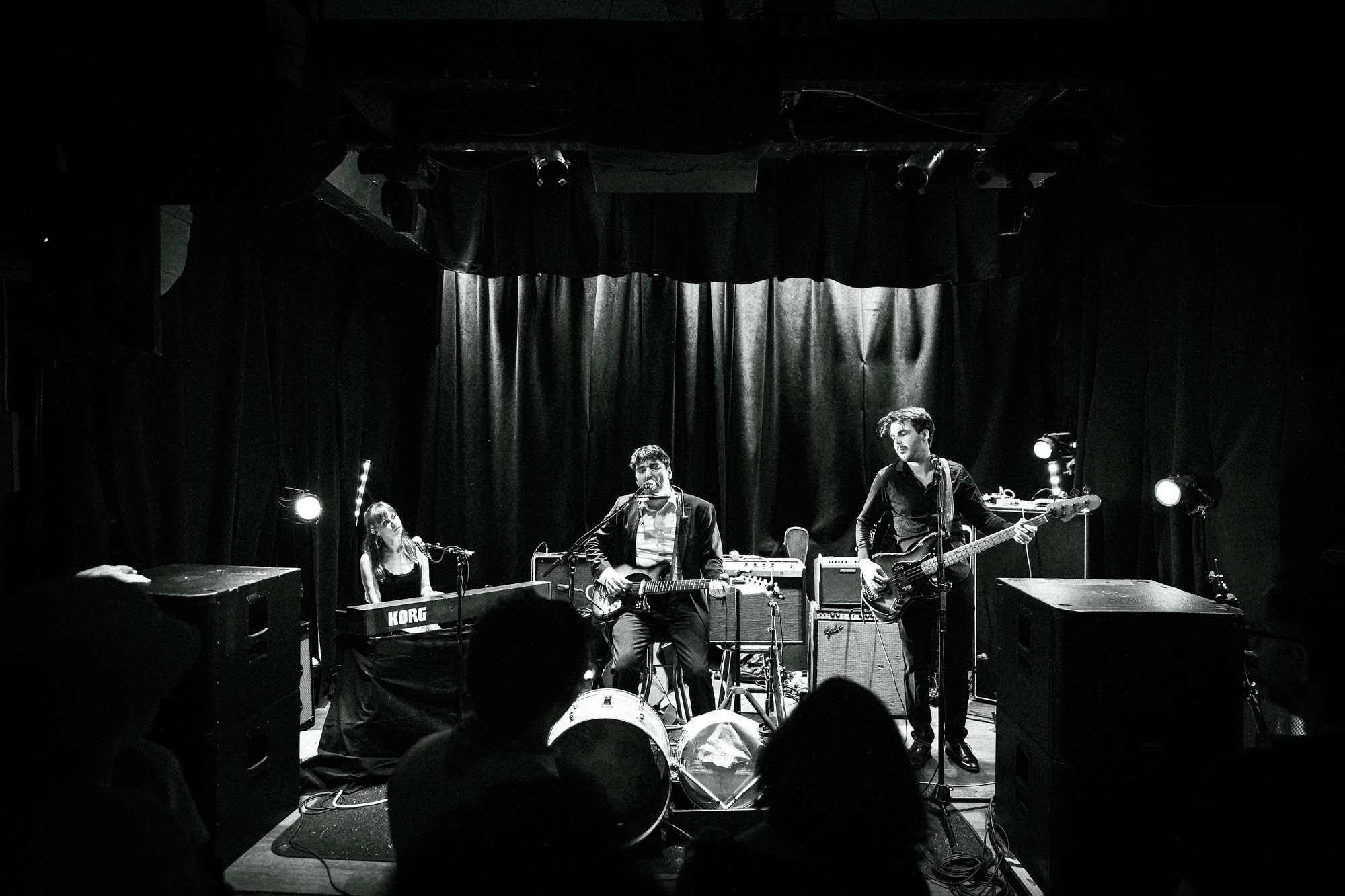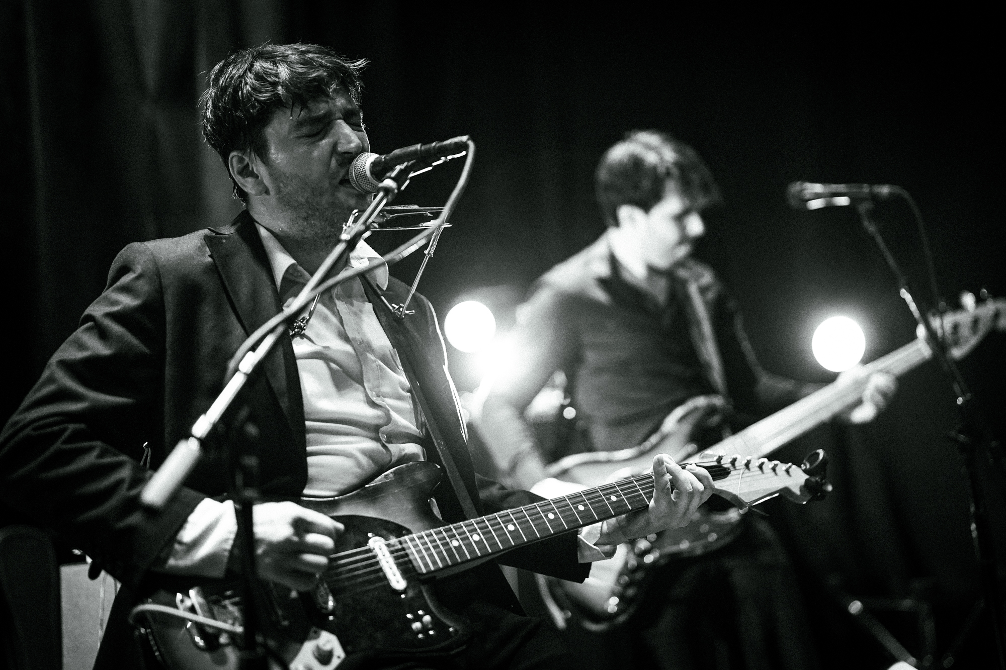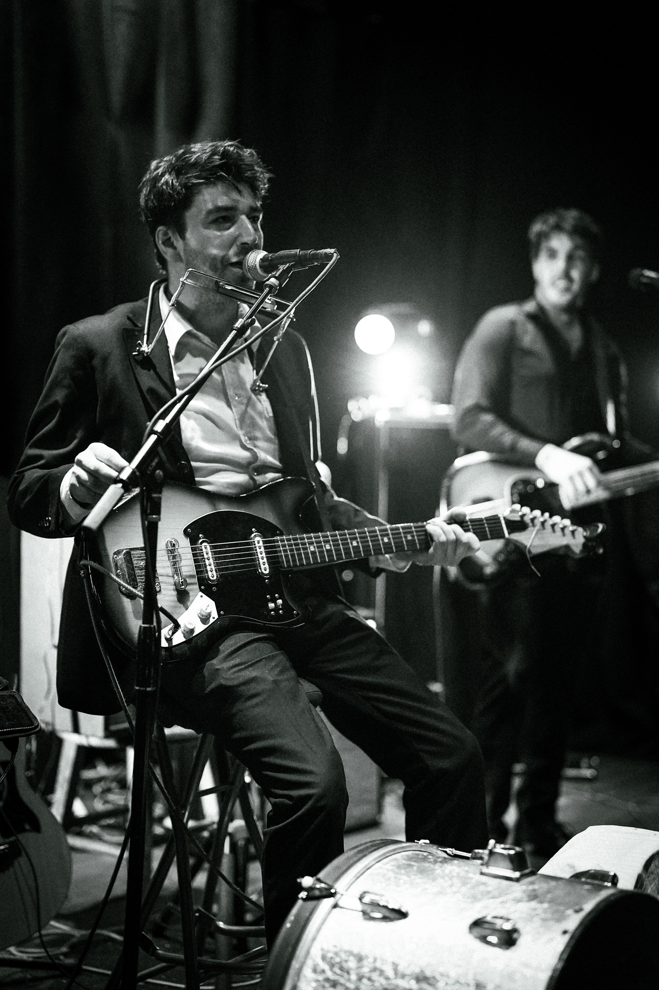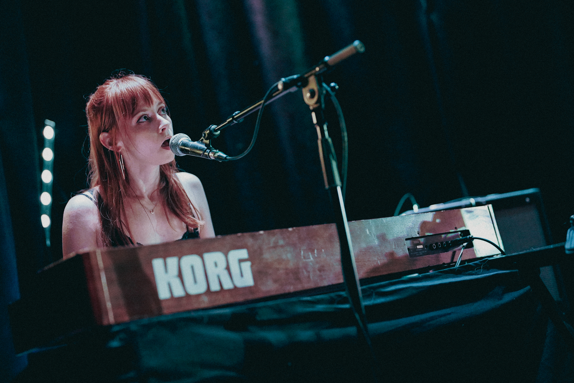 On the latest record, Thompson plays both rhythm and lead guitar, and last Wednesday at Pie Shop, he switched from electric to acoustic and back again. He used touch and subtlety, and his arrangements featured sparkling chords and tense, divergent riffs that bottomed out to enrich the moodiness of each track. And he oversaw percussion duties as well, pounding a pair of kick drums positioned at his feet and even adding a third instrument to his mix.