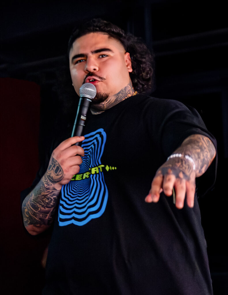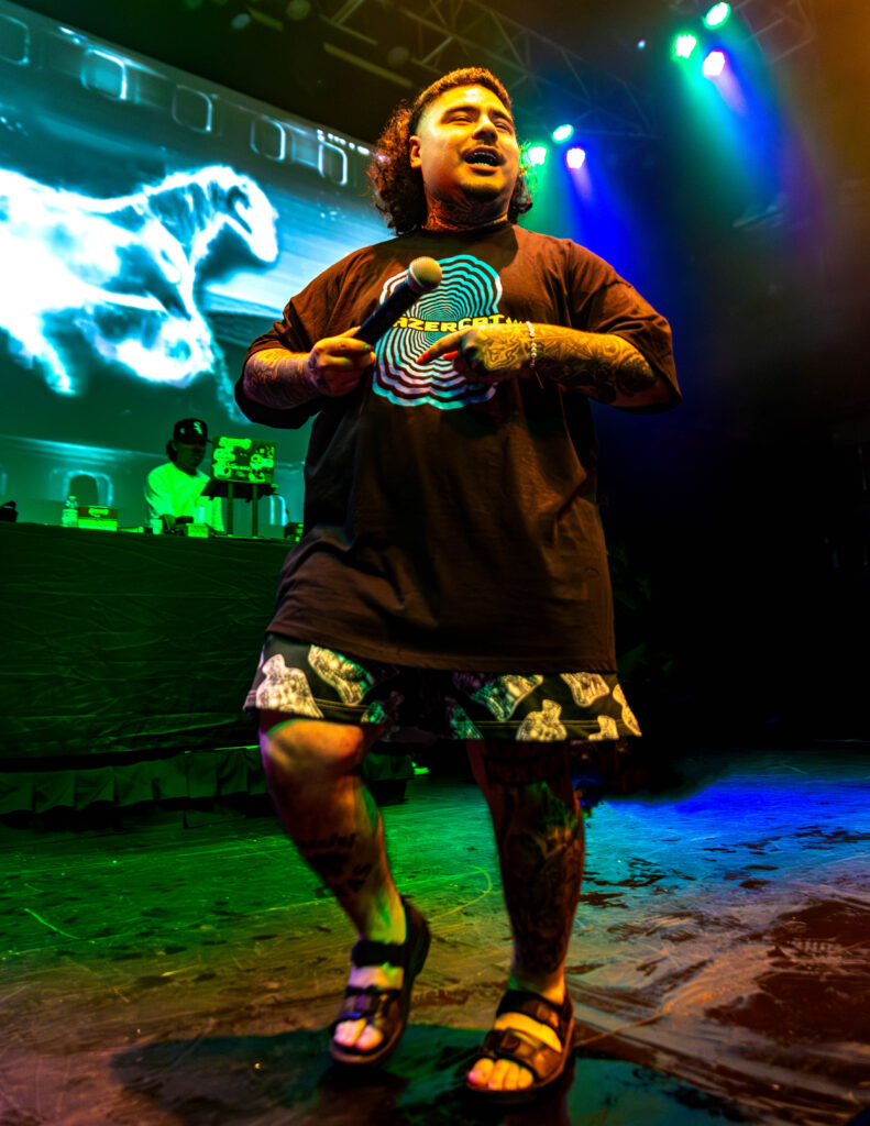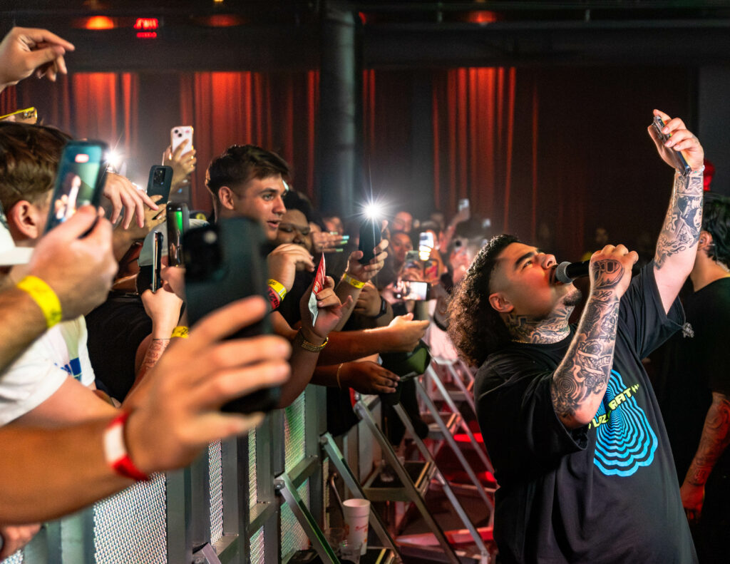 The Lonestar Luchador ran back and forth from one side of the stage to the other like a wrestler going to each turnbuckle hyping up the crowd. He soon decided to hop off stage onto the barricade to touch the people around him and feel the love. He moved all the way across the front of the room, performing in different sections of the barricade, smoking joints, recording videos on people’s phones, and signing autographs before making his way back to the stage all without missing a beat.